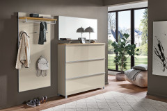 Garderobe von Voss Möbel - Modell Vortina in Sahara Glas & Balkeneiche Vortina | moderner Hochglanz kombiniert mit Natürlichkeit