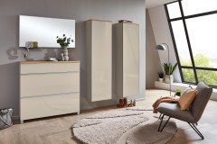 Garderobe von Voss Möbel - Modell Vortina in Sahara Glas & Balkeneiche Vortina | moderner Hochglanz kombiniert mit Natürlichkeit