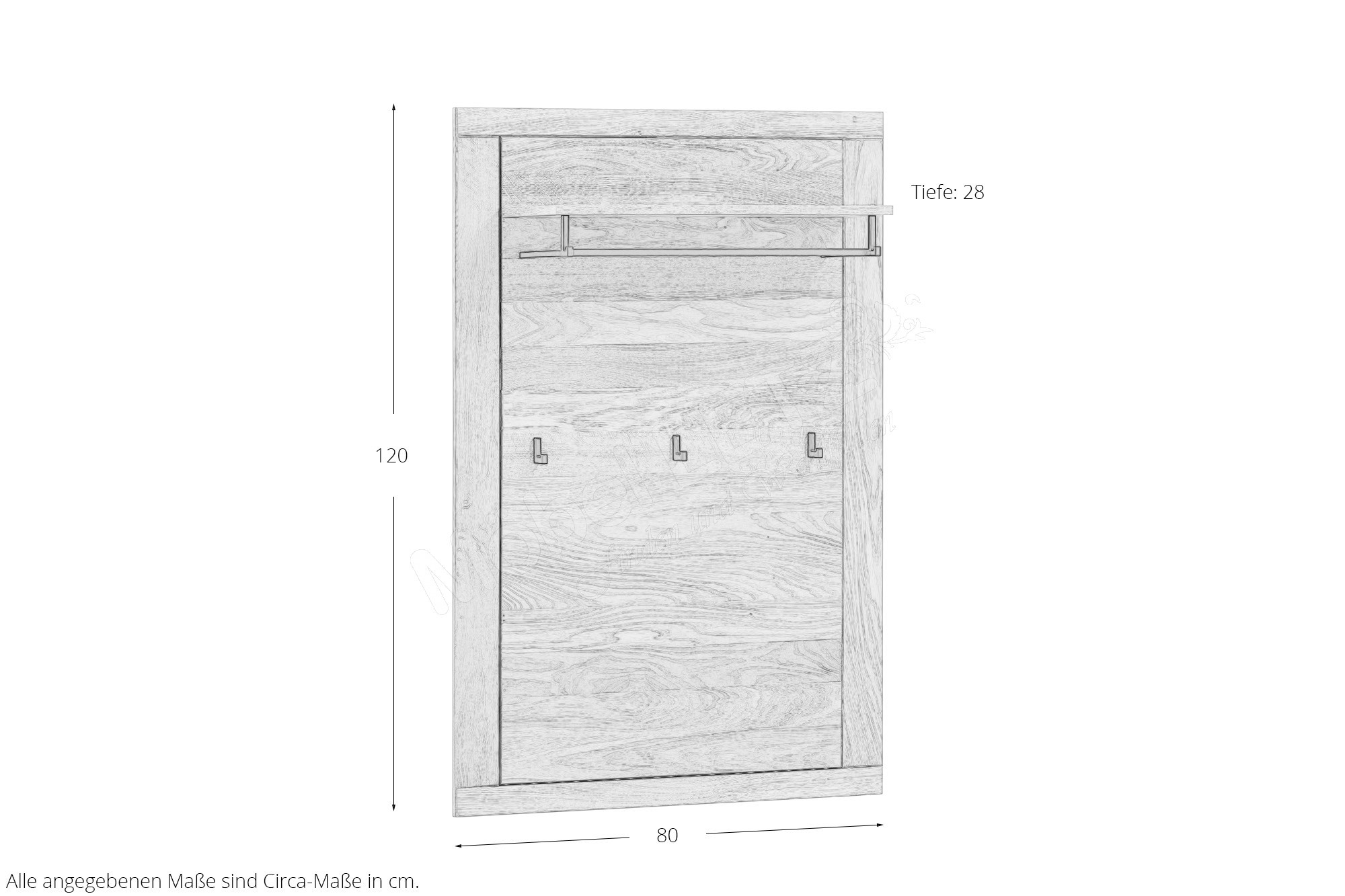 - Garderobenpaneel mit 1 Ablageboden, 1 Kleiderstange und 3 Haken