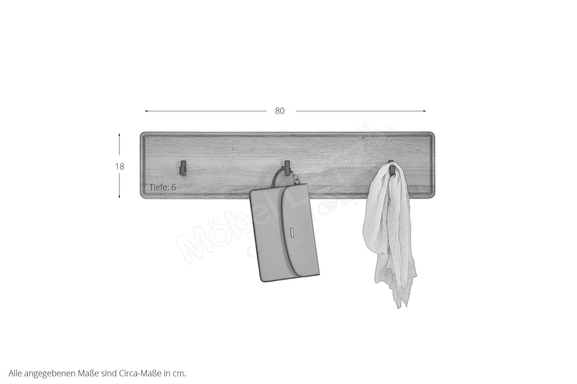 - 1 x 1016408 - Hakenleiste, BHT ca.: 80/18/6 cm