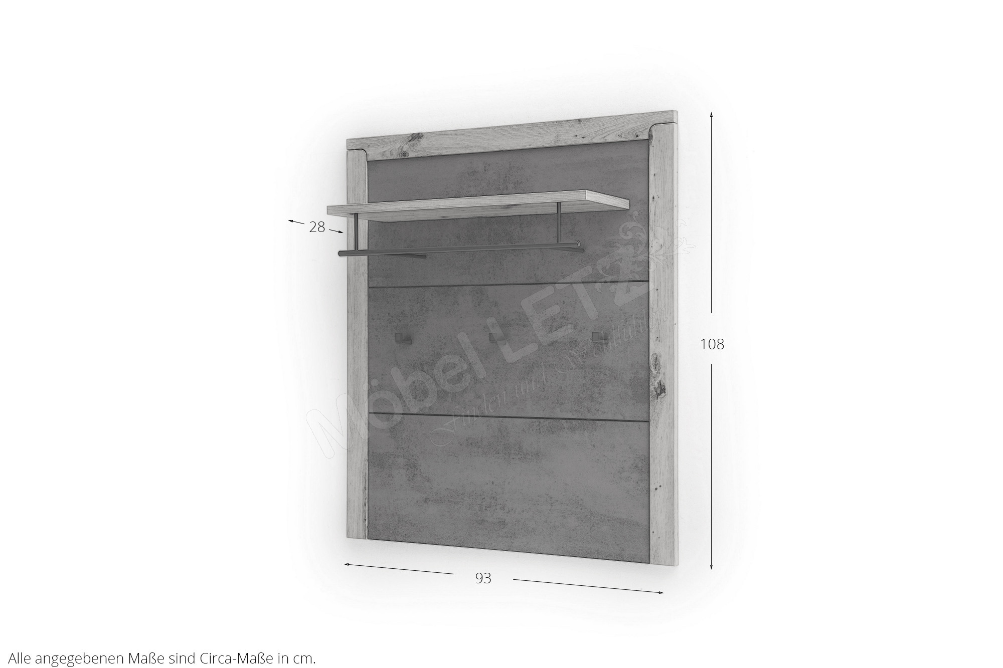 - Garderobenpaneel mit 1 Ablageboden, 1 Kleiderstange und 3 Haken