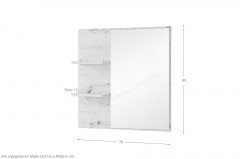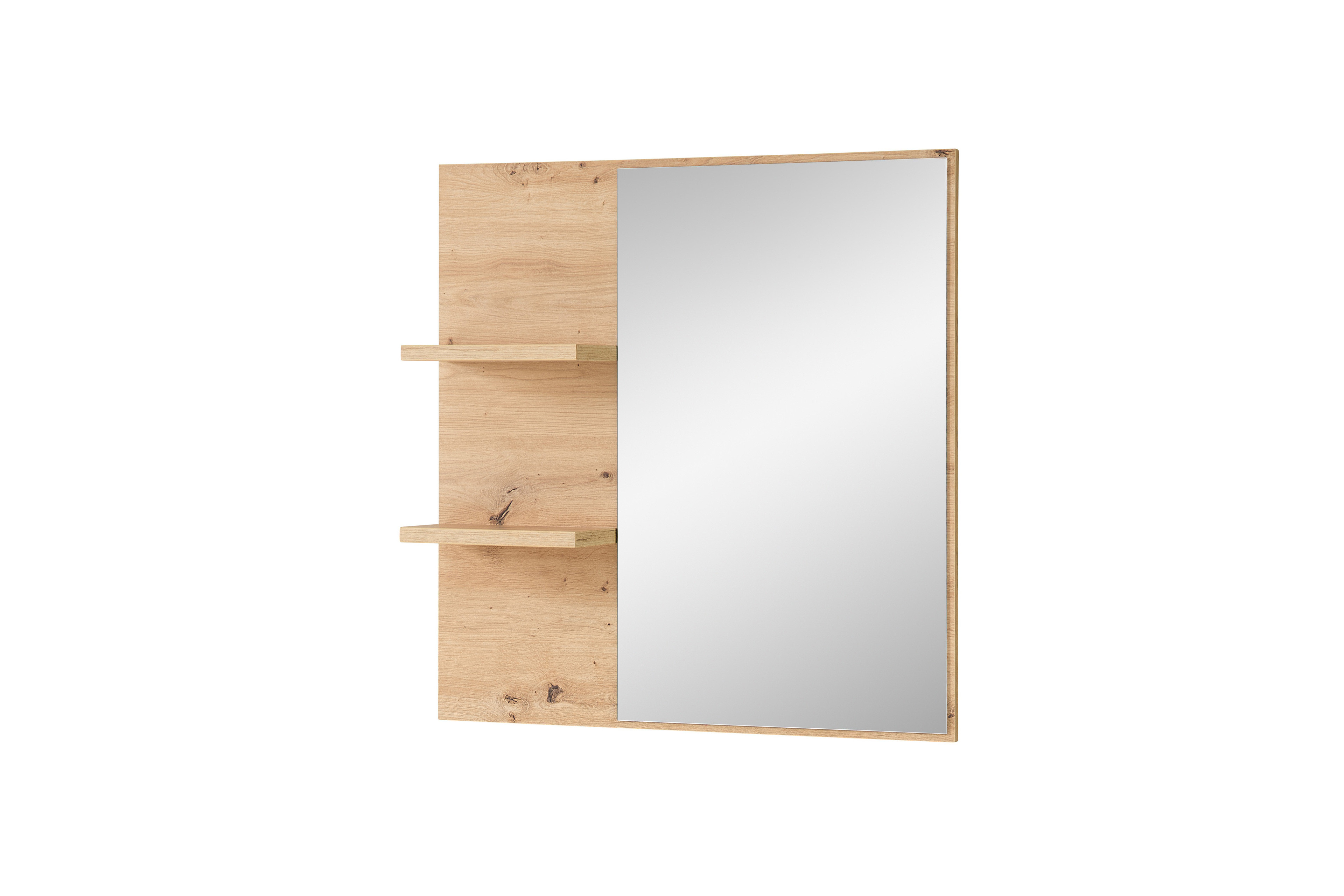 Der Spiegel aus der Modellreihe Bari von Innostyle präsentiert sich in einer modernen, natürlichen Optik und ist die ideale Ergänzung nicht nur für Ihren Flur, sondern auch für das Schlaf- oder Wohnzimmer. Die Ausführung in Artisan Eiche verleiht dem Möbelstück eine warme, wohnliche Ausstrahlung und bringt die charakteristische Maserung des Holzes besonders schön zur Geltung. Rechts befindet sich die großzügige Spiegelfläche, die den Raum optisch vergrößert und für eine klare, brillante Darstellung sorgt. Auf der linken Seite bietet der Spiegel zwei praktische Ablageböden, die sich ideal zur Aufbewahrung kleinere Deko-Elemente, für die Hausschlüssel oder andere alltägliche Utensilien eignen. Durch das harmonische Zusammenspiel von natürlichem Holzdekor und funktionalen Details fügt sich dieses Modell Bari mühelos in verschiedenste Einrichtungsstile ein. Der Spiegel verbindet ansprechendes Design mit hoher Alltagstauglichkeit und wertet jeden Wohnbereich stilvoll auf.
