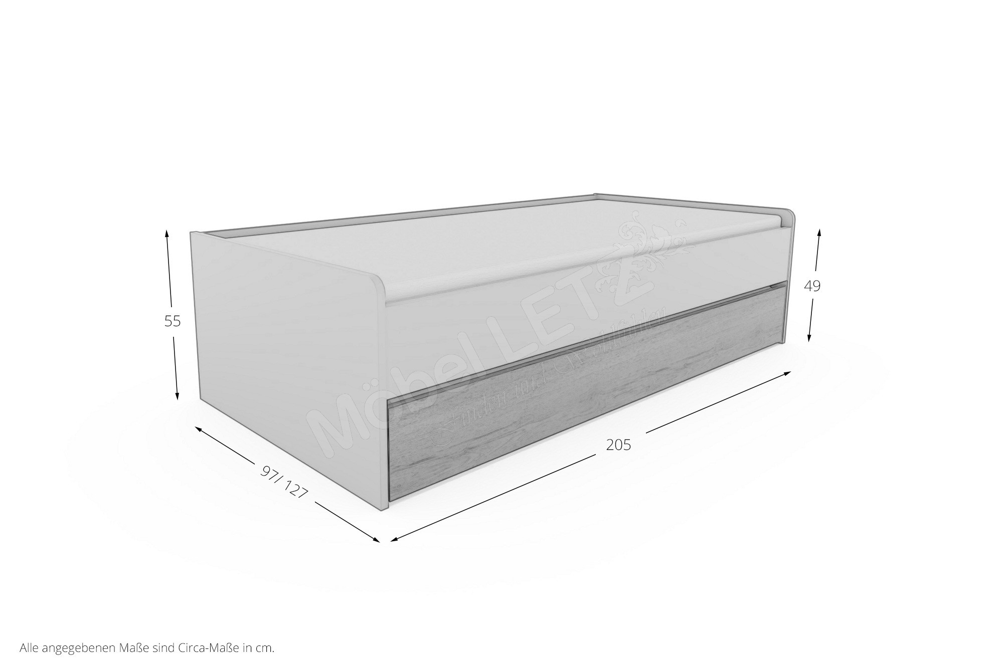 - Rollbettkasten: Schubkastenblende ca. 22,8 cm hoch