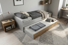 Doppelliege von Priess - Modell Achat / Arena / Paul mit Rollbettkasten für eine zweite Liegefläche Wohn- und Schlafträume zum Verlieben.