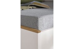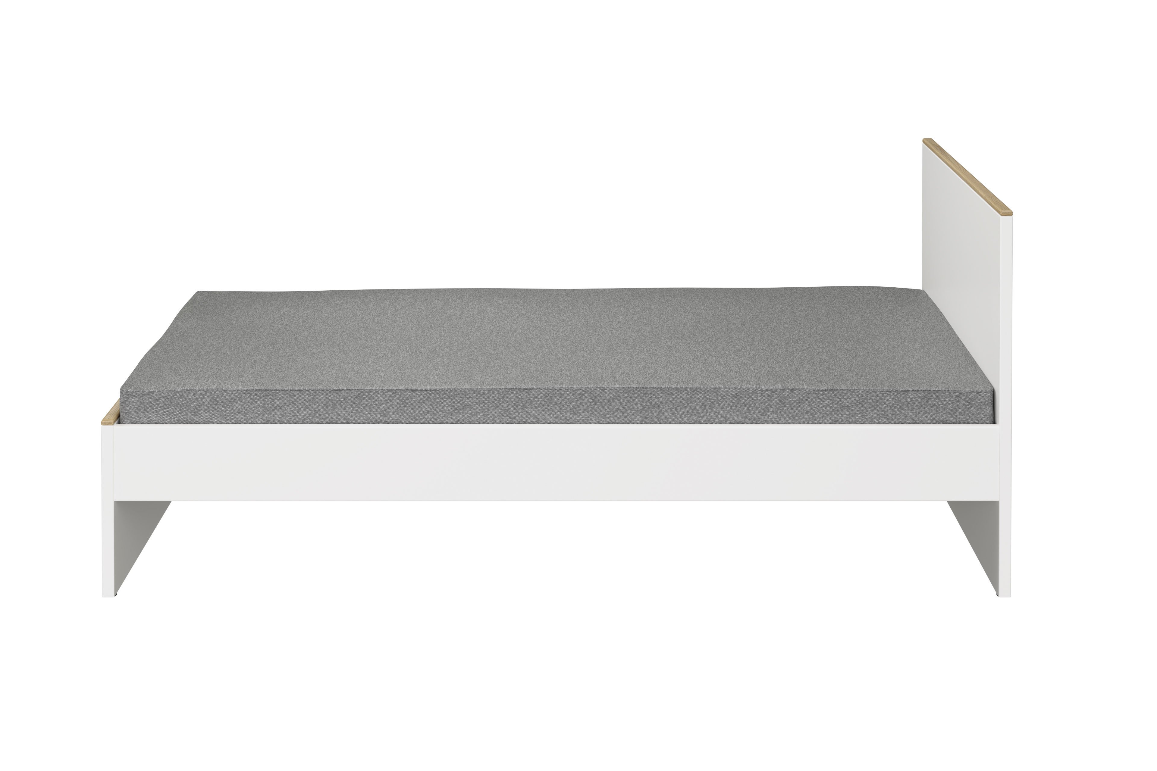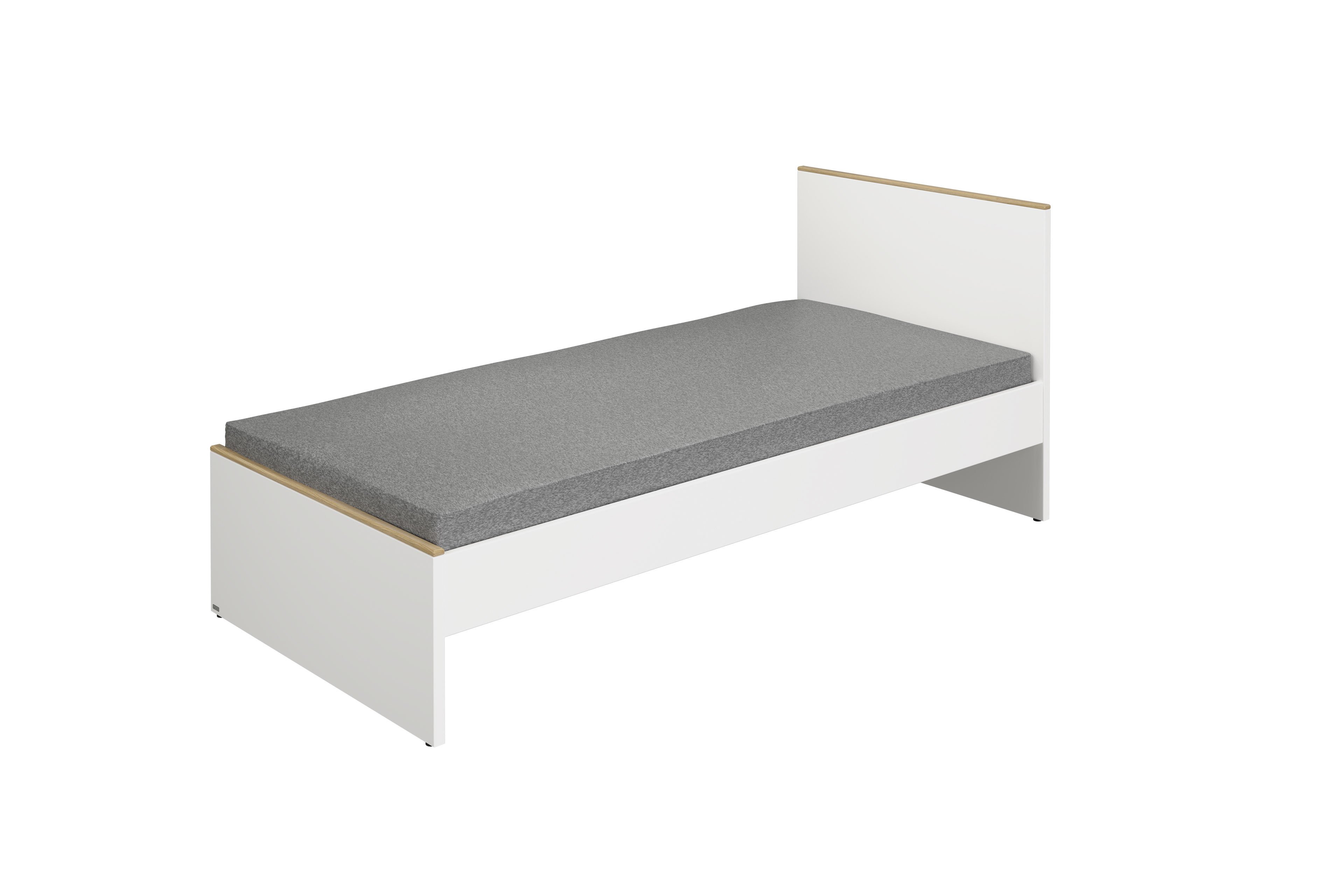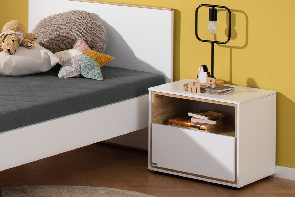 Im modelltypischen Look, der eine Kombination aus kreideweißen Oberflächen und dezenten Absetzungen in Eiche-Montana-Nachbildung ist, stellt sich hier das Jugendbett des Programms Lieven von Paidi vor. In unserem Grundangebot hat die Schlafgelegenheit eine Standard-Einzelbettgröße mit 90x200 cm Liegefläche. Über unsere Zusatzoptionen können Sie das Jugendbett auch in weiteren Größen wählen und gleich mit einem passenden Lattenrost ausstatten. Unter dem Bett haben Sie eine lichte Höhe von etwa 22 cm, sodass bei Bedarf auch ein Saugroboter hier problemlos seinen Dienst tun kann. Kuschelige Accessoires wie Kissen in unterschiedlichen Formen, Größen und Farben können Sie ebenso wie den programm-zugehörigen Nachtschrank, der das Jugendbett perfekt ergänzt, direkt online über unsere Ergänzungsangebote kaufen. Kleiderschränke, Kommoden und viele weitere Möbelstücke aus der Serie Lieven von Paidi können Sie in unserem Konfigurator entdecken ...