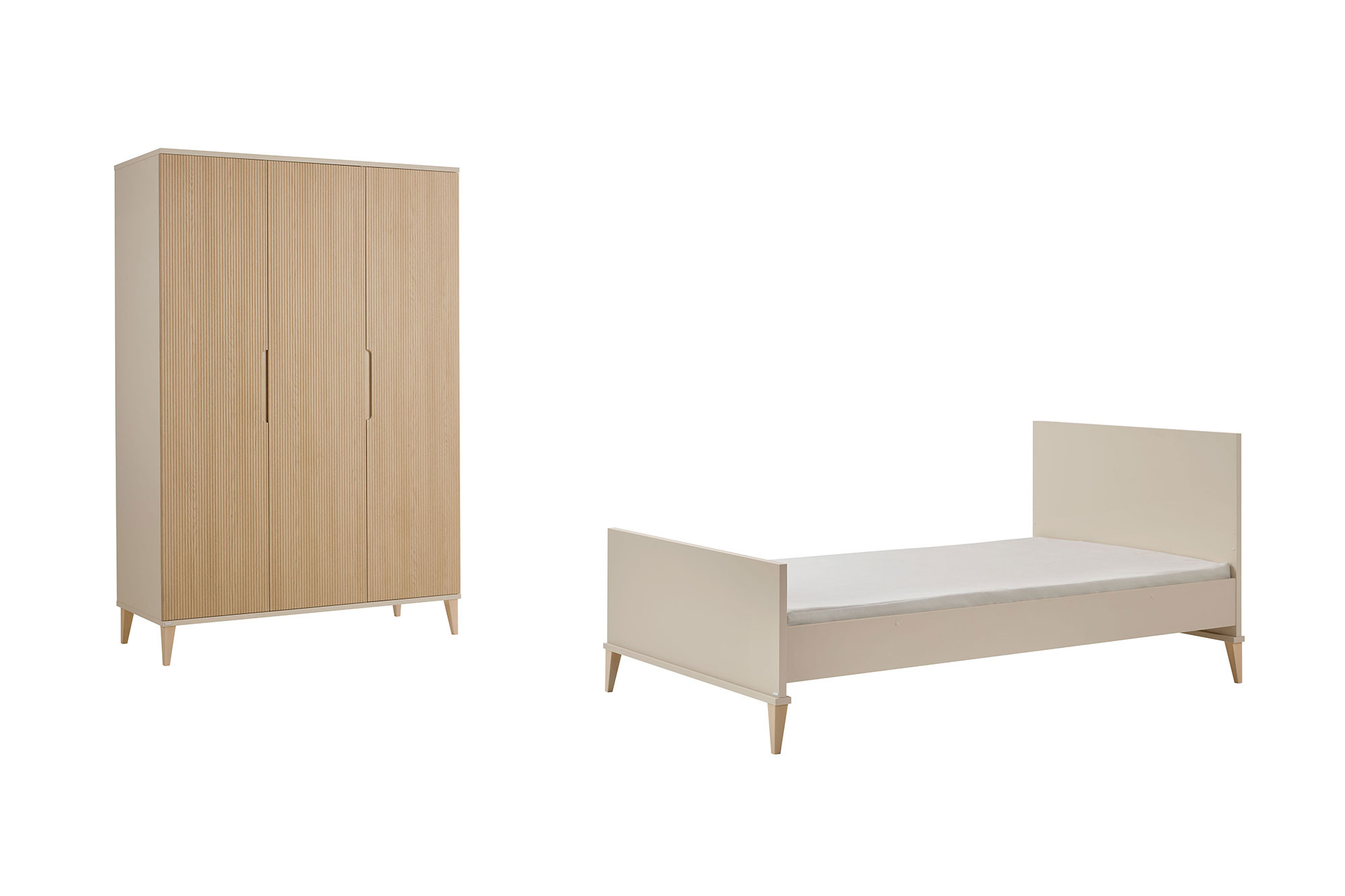 2-teiliges Jugendzimmer von Paidi - Modell Jonte - 3-türiger Kleiderschrank und Bett 120x200 cm Jonte interpretiert den Japandi-Style neu
