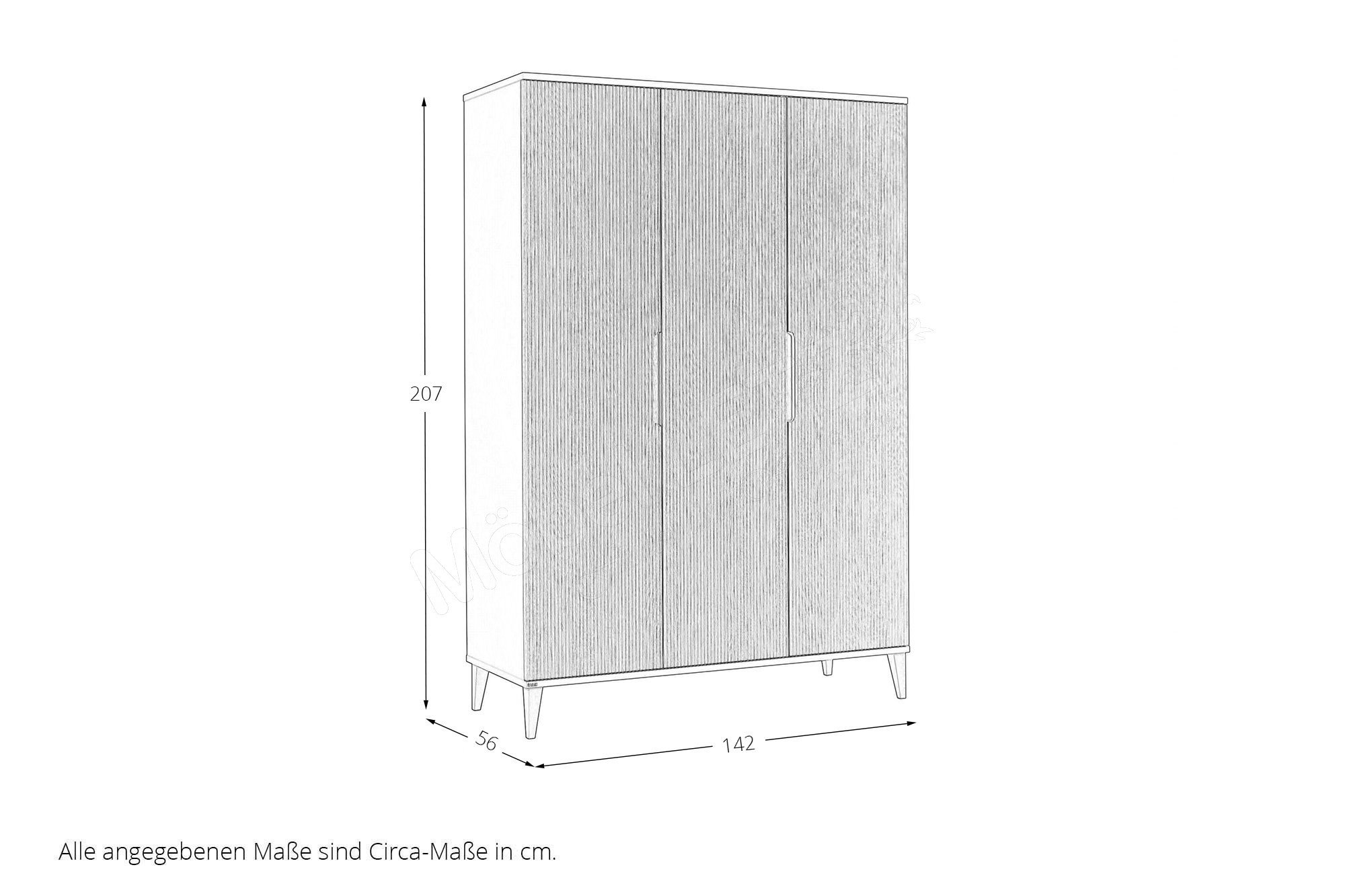 - Kleiderschrank: 3 Drehtüren