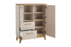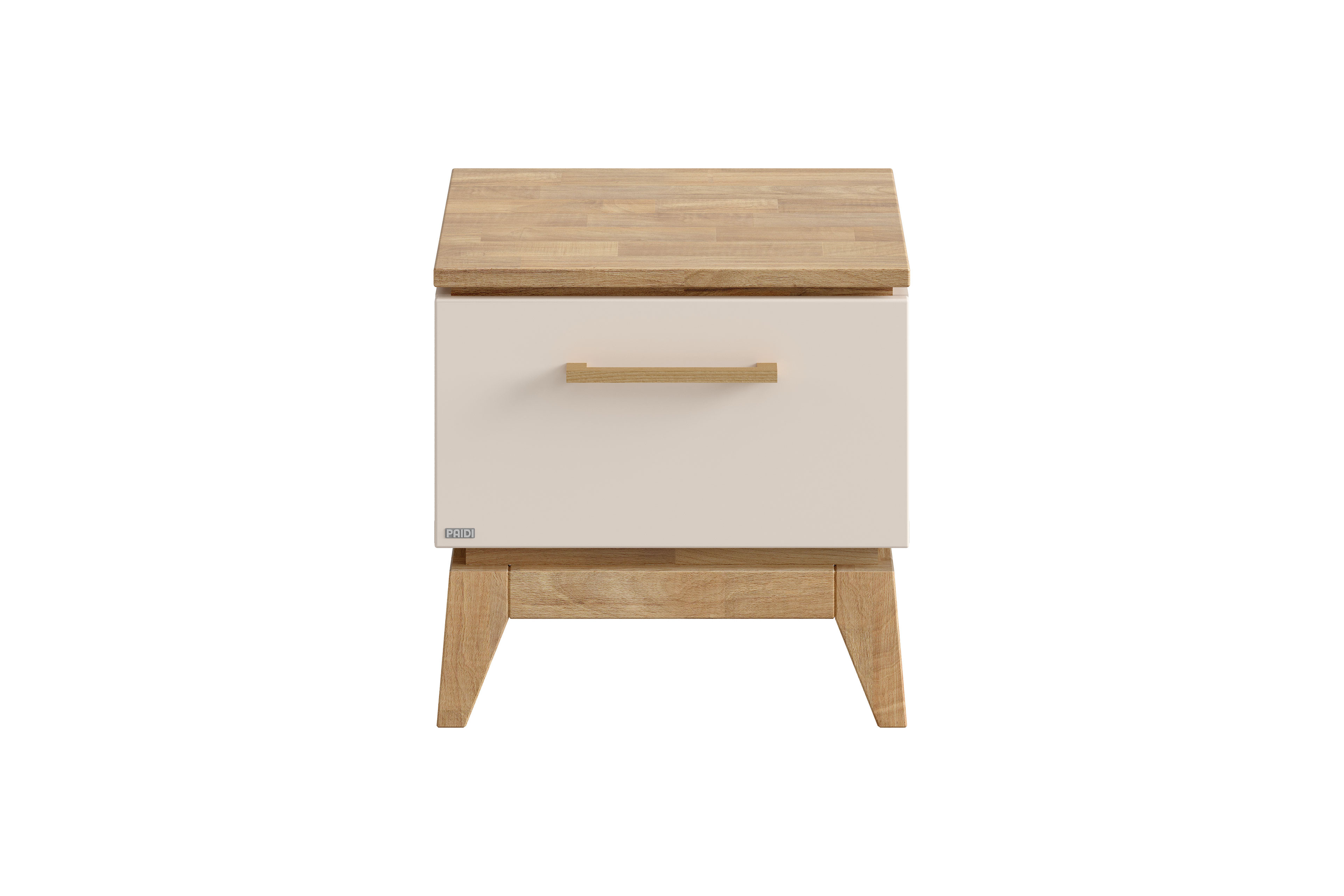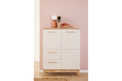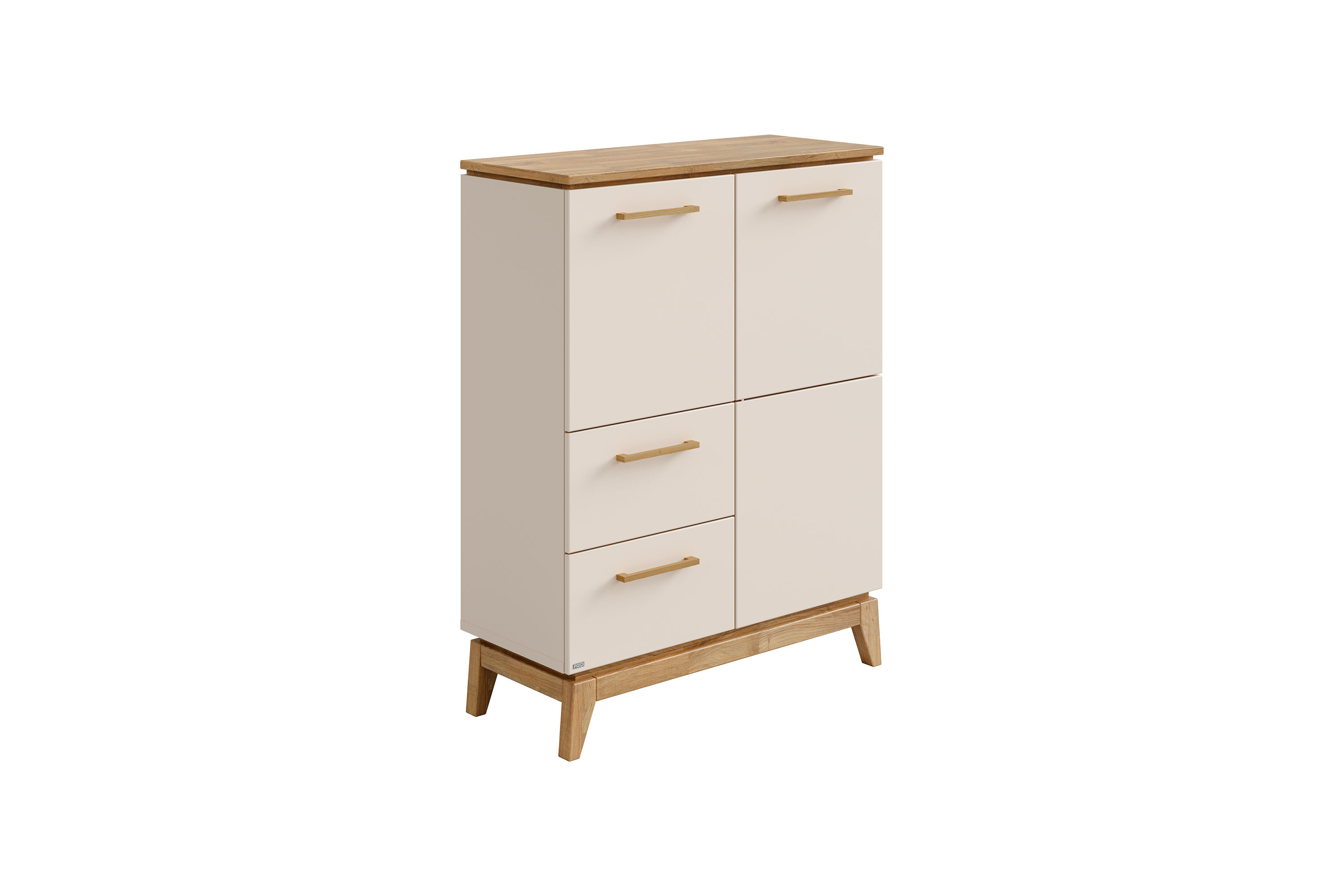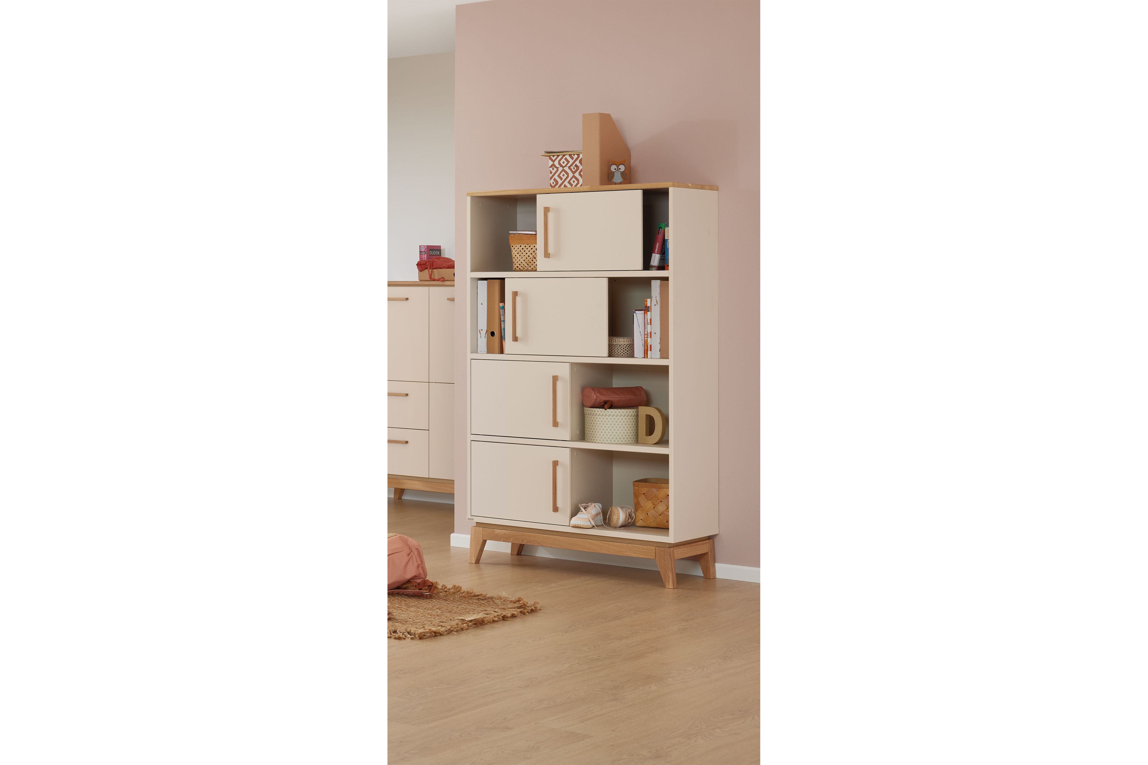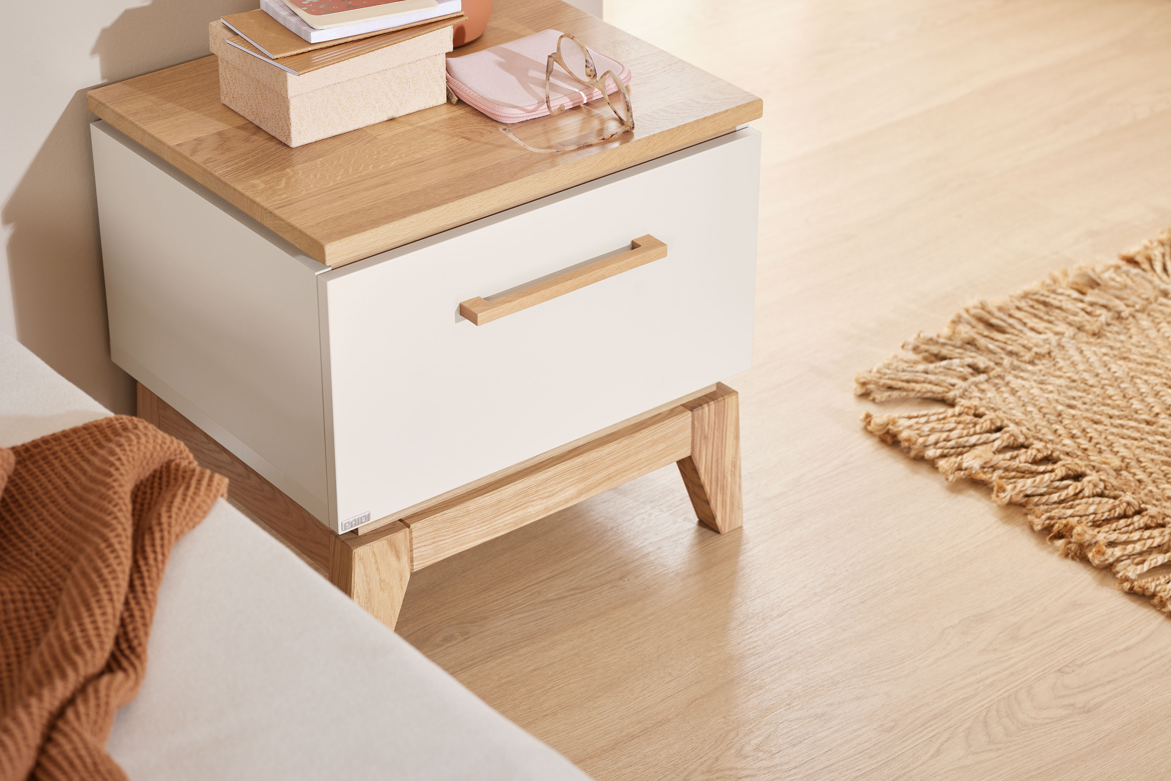 Das Paidi Jugendzimmer Stiene präsentiert sich in der eleganten sowie hellen Ausführung Cashmere-Beige mit Absetzungen aus massivem Eichenholz und verbindet zeitloses Design mit angenehmer Komfortausstattung. Der Kleiderschrank 3T1S kommt mit drei verkürzten Türen, einer praktischen Schublade mit geteilter Innenaufteilung und einer strukturierten Innenausstattung daher, die das Verräumen von sämtlichen Textilien erleichtert. Links befindet sich ein 60er Wäschefach mit drei Einlegeböden, mittig ein 46er Wäschefach mit ebenfalls drei Böden und rechts ein 60er Kleiderfach mit einem Einlegeboden sowie einer Kleiderstange. Die Traumliege besticht durch ihr geteiltes Kopfteil und bietet eine komfortable Schlaffläche von 90 x 200 cm. Optional erhalten Sie über unsere Zusatzattribute auch einen passenden Lattenrost, um den Liegekomfort abzurunden und ergänzende Möbelstücke wie die Nachtkonsole, die Wandboxen, das Highboard und das Standregal. Alle Elemente des Jugendzimmers Stiene von Paidi sind mit unserem Online-Möbelplaner frei miteinander kombinierbar, sodass Sie sich Ihre wunschgerechte und bedarfsgemäße Einrichtung auch gern ganz individuell konfigurieren können. So lässt sich die Zusammenstellung an Raumgröße, Nutzungsbedarf und Stilwunsch anpassen. Stiene von Paidi ... Design trifft Gemütlichkeit im Jugendzimmer.