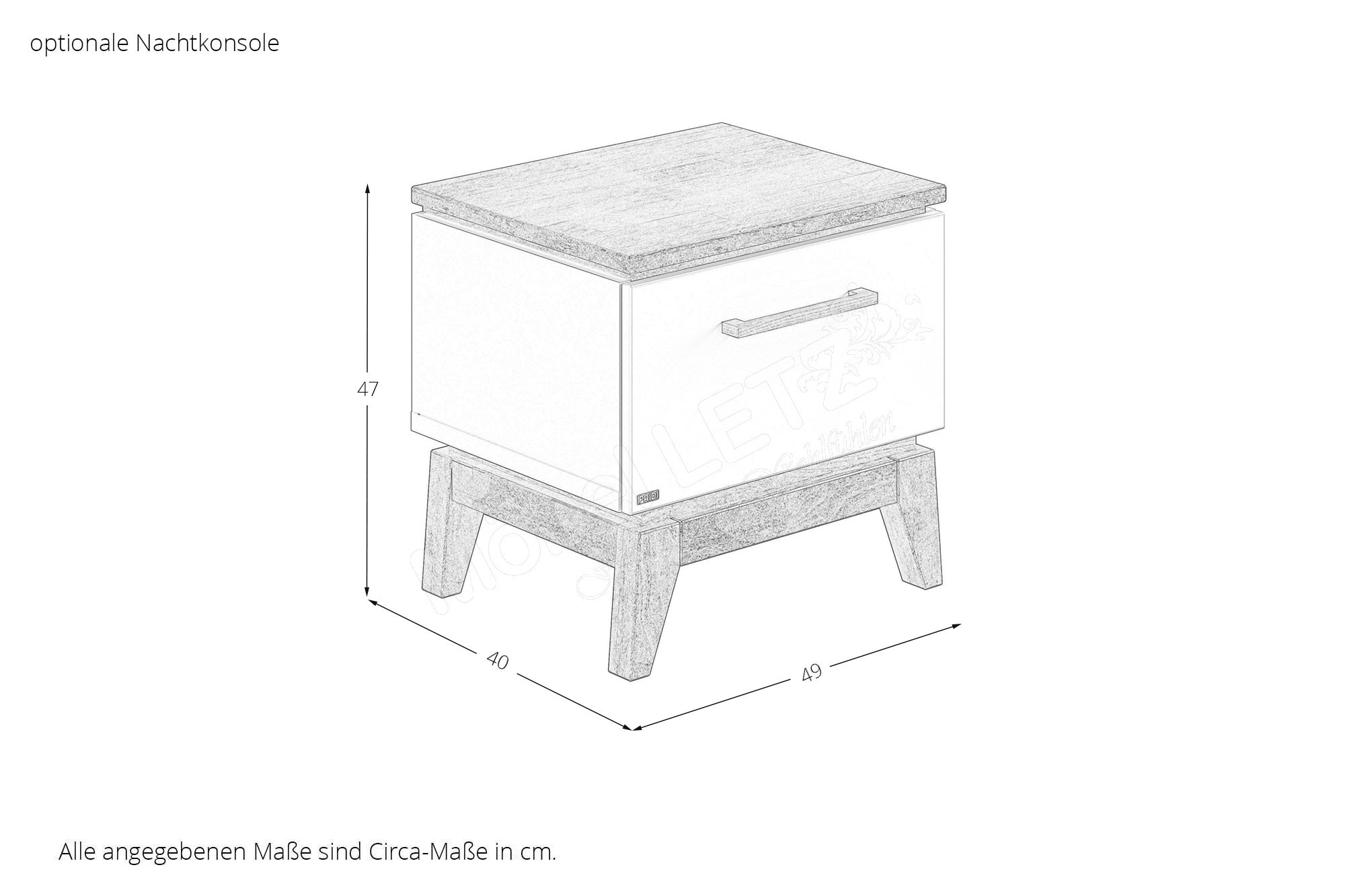 Deckplatten, Griffe, Sockel, Bettpfosten, Bettseiten: Die Lebensgeschichte eines Baumes prägt seine typischen Wuchsmerkmale, wie Zeichnung, Struktur und Farbe, denn kein Baum gleicht dem anderen. Deshalb kann es bei der Verwendung von Echtholz zu Farb- und Strukturdifferenzen bei den einzelnen Möbelstücken kommen. Bei Echtholz sprechen diese naturbedingten Eigenschaften für die Einzigartigkeit des Holzes. Dies ist kein Grund für eine Reklamation oder Beanstandung.