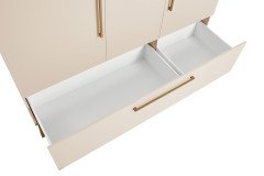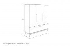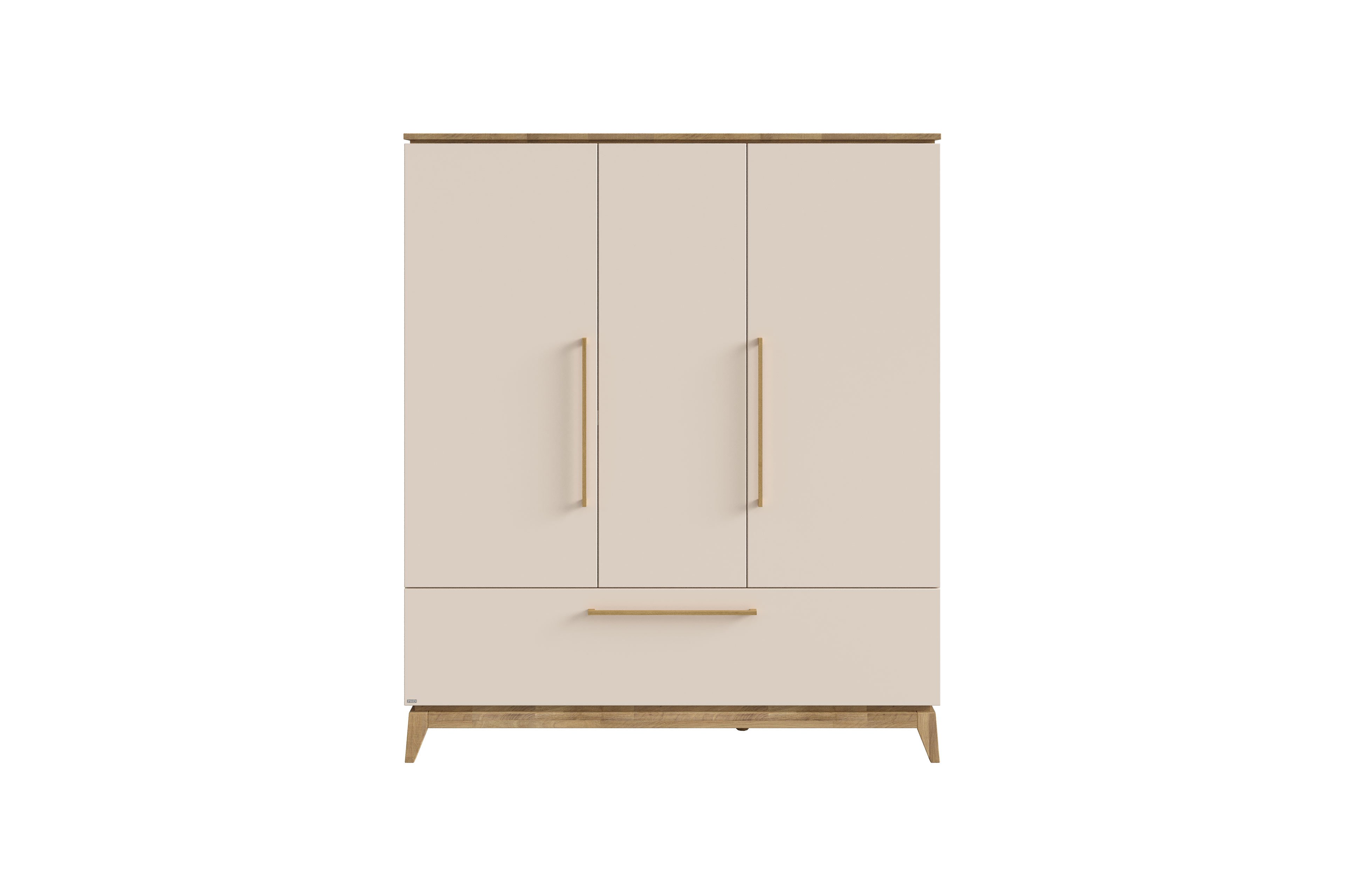 - Kleiderschrank 3T1S: 3 verkürzte Türen, 1 Schublade (innen geteilt)