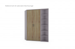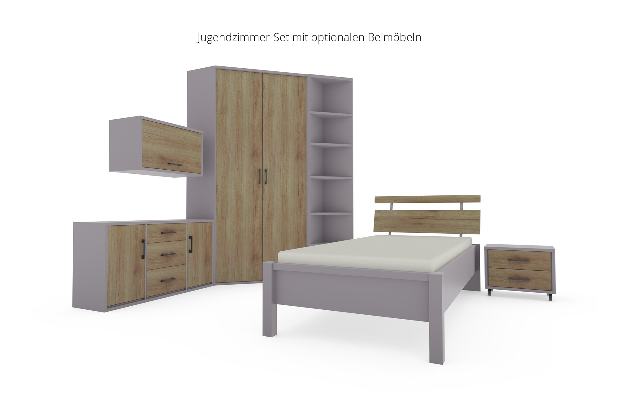 Ein Jugendzimmer zum Wohlfühlen! Und dank des Eckschranks eignet sich dieses Set besonders für kleinere Zimmer. Mit der umfangreichen Kollektion Achat von Priess lassen sich vielfältige Wünsche und Ideen umsetzen. Vom Jugendzimmer über das Schlafzimmer bis hin zur kompletten Apartment-Ausstattung können Sie hier fast alles verwirklichen. Unsere Vorschlagskombination bietet Ihnen und Ihrem Kind hier einen geräumigen Eck-Kleiderschrank, ein modernes Bett und eine rollbare Nachtkonsole. Mithilfe der Zusatzoptionen können Sie mit nur wenigen Klicks aus drei Liegeflächen-Größen wählen, den Eckschrank mit einem passenden Abschlussregal erweitern und die abgebildete Kommode sowie den Hängeschrank mitbestellen. Teenager möchten gerne mal ihr Zimmer umgestalten. Da zeigt sich das Eckregal, das sowohl links- als auch rechtsseitig am Kleiderschrank angestellt werden kann, besonders praktisch. Das Regal schenkt Ihnen nicht nur Flexibilität bei der Einrichtung, sondern auch zusätzlichen Stauraum und kreative Gestaltungsmöglichkeiten. Oft wechseln Bilder, Bücher und kleine Dekoartikel ihr Gesicht, je nachdem, was gerade angesagt ist. Mit der buchbaren Kommode und dem bestellbaren Hängeschrank gewinnen Sie noch mehr Platz und Stauraum. Hängende Elemente sind besonders vorteilhaft, da sie keine weitere Stellfläche auf dem Boden brauchen. So lässt sich der Hängeschrank zum Beispiel gut über einem Schreibtisch anbringen und mit den Arbeits- und Schulmaterialien füllen. Das hält die Schreibtischfläche frei und wichtige Dinge sind griffbereit. Passende Schreibtische von Priess finden Sie unter anderem im Möbelplaner. Mit unserem Konfigurator können Sie Achat von Priess beliebig planen, erweitern und zusammenstellen. Probieren Sie es aus, es lohnt sich!