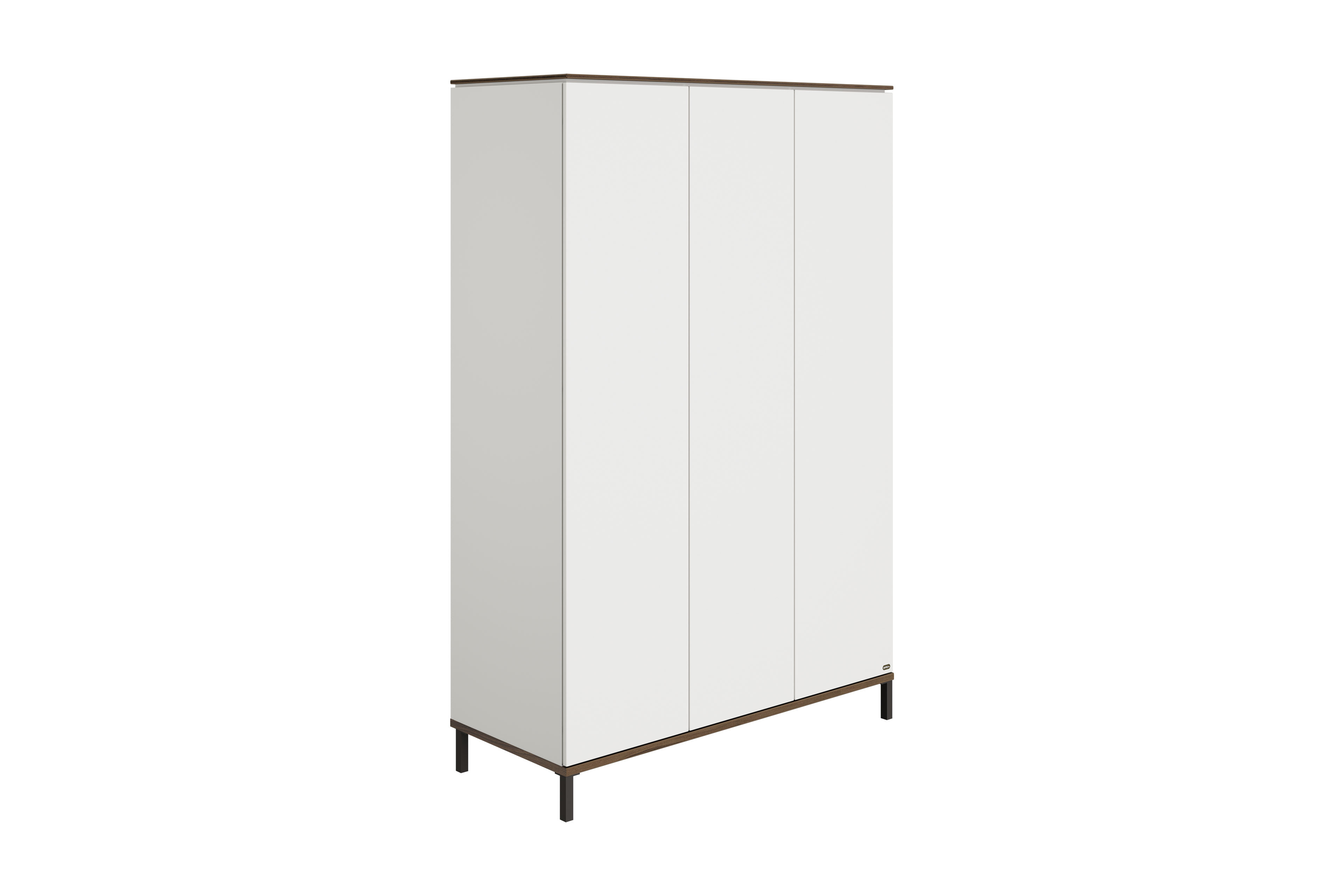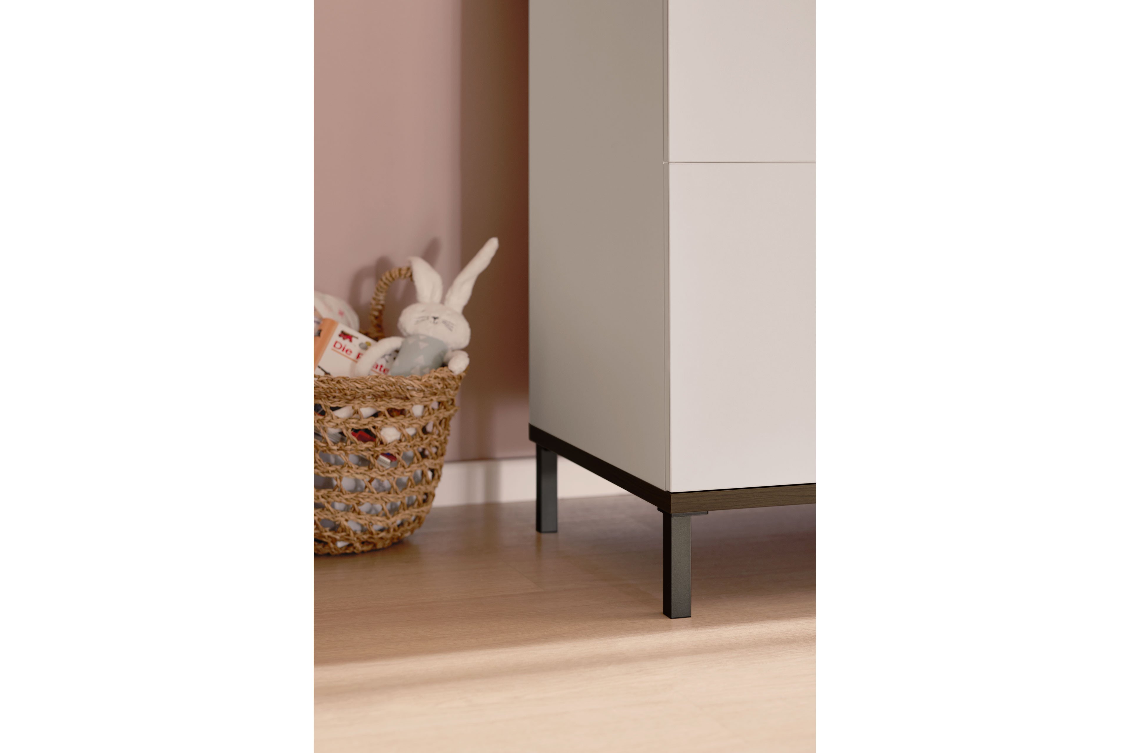 Unser Grundangebot, das eine Kombination aus dem 3-türigen Kleiderschrank und dem praktischen Kojenbett ist, hat seinen Ursprung im Programm Lovely Aliv der Kollektion YUNY by Paid und begeistert mit seiner kontrastreichen Optik, die sowohl modern als auch zeitlos ist. Lackoberflächen im cremefarbenen Ton Off-White, Absetzungen aus dunkler Walnuss-Nachbildung und moccafarbene Füße machen den unverwechselbaren Look dieses Einrichtungsprogramms aus. Mit einer Breite von etwa 131 cm und drei grifflosen Türen ausgestattet stellt sich hier der strukturierte Kleiderschrank vor, der hinter der Front vier Böden und zwei Kleiderstangen verbirgt. Die Kojenliege hat eine 90 x 200 cm große Schlaffläche und einen direkt darunter befindlichen Bettkasten, der als Stauraum oder als Gästebett genutzt werden kann. Falls Sie die Möglichkeit der zusätzlichen Schlafgelegenheit gern nutzen möchten, statten Sie diese Schublade einfach mit einer passenden Matratze aus, die das Maximalmaß von 90/11/190 cm nicht überschreiten darf. Ergänzen Sie das Set mit den abgebildeten Möbelstücken wie dem Schreibtisch, dem Rollcontainer, dem Sideboard und dem Bett-Tablar der Serie Lovely Aliv aus der Kollektion YUNY by Paidi und freuen Sie sich über eine moderne Einrichtung für das Kinder- oder Jugendzimmer.