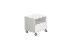 1 offenes Fach, 1 Schublade, 4 Rollen grau/ weiß (2 feststellbar)