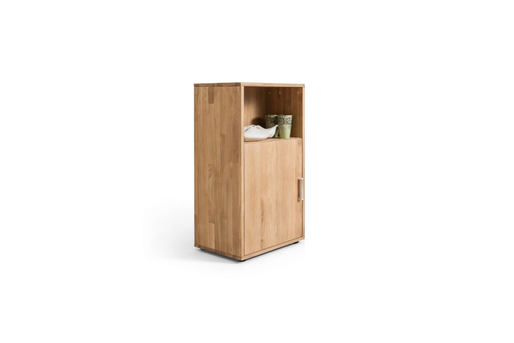 Die Kommode aus dem Programm Mido von SKALIK überzeugt durch zeitlose Eleganz und hervorragende Funktionalität. Gefertigt aus massivem Eichenholz präsentiert sie sich mit einer hell geölten Oberfläche im Farbton Bianco - diese Nuance vermittelt Wärme und Natürlichkeit zugleich. Die Kommode verfügt über ein offenes Fach sowie eine Tür, hinter der sich ein Boden befindet. Mit einer Breite von ca. 46 cm lässt sie sich flexibel in verschiedenste Wohnräume integrieren – sei es im Jugend-, Gäste-, Schlaf- und Wohnzimmer oder im Flur. Die Gesamtausführung bleibt bewusst modular: Sie wählen Höhe, Tiefe, Griffausführung und den gewünschten Eichenholz-Farbton, um dem Möbelstück Ihren persönlichen Stil zu verleihen. Die hochwertige Verarbeitung und die sorgfältige Oberflächenbehandlung sorgen dafür, dass die Kommode auch über lange Jahre hinweg ihren Charakter behält und dabei zugleich pflegeleicht bleibt. Die Mido-Kollektion von SKALIK steht für Möbel, die sich in allen Wohnbereichen einsetzen lassen und durch Klarheit überzeugen. Jedes Stück verbindet ästhetische Formgebung mit praktischer Funktionalität - eine Kombination, die Räume bereichert und Ordnung schafft. In unserem Online-Shop finden Sie weitere Mido-Möbel von SKALIK, die sich harmonisch zu dieser Kommode gesellen und Ihrem Zuhause eine durchdachte Gesamtkonzeption verleihen. Entdecken Sie die Vielfalt und wählen Sie Ihre Favoriten, um eine wohnliche und stilvolle Atmosphäre zu schaffen, die Maßstäbe setzt.