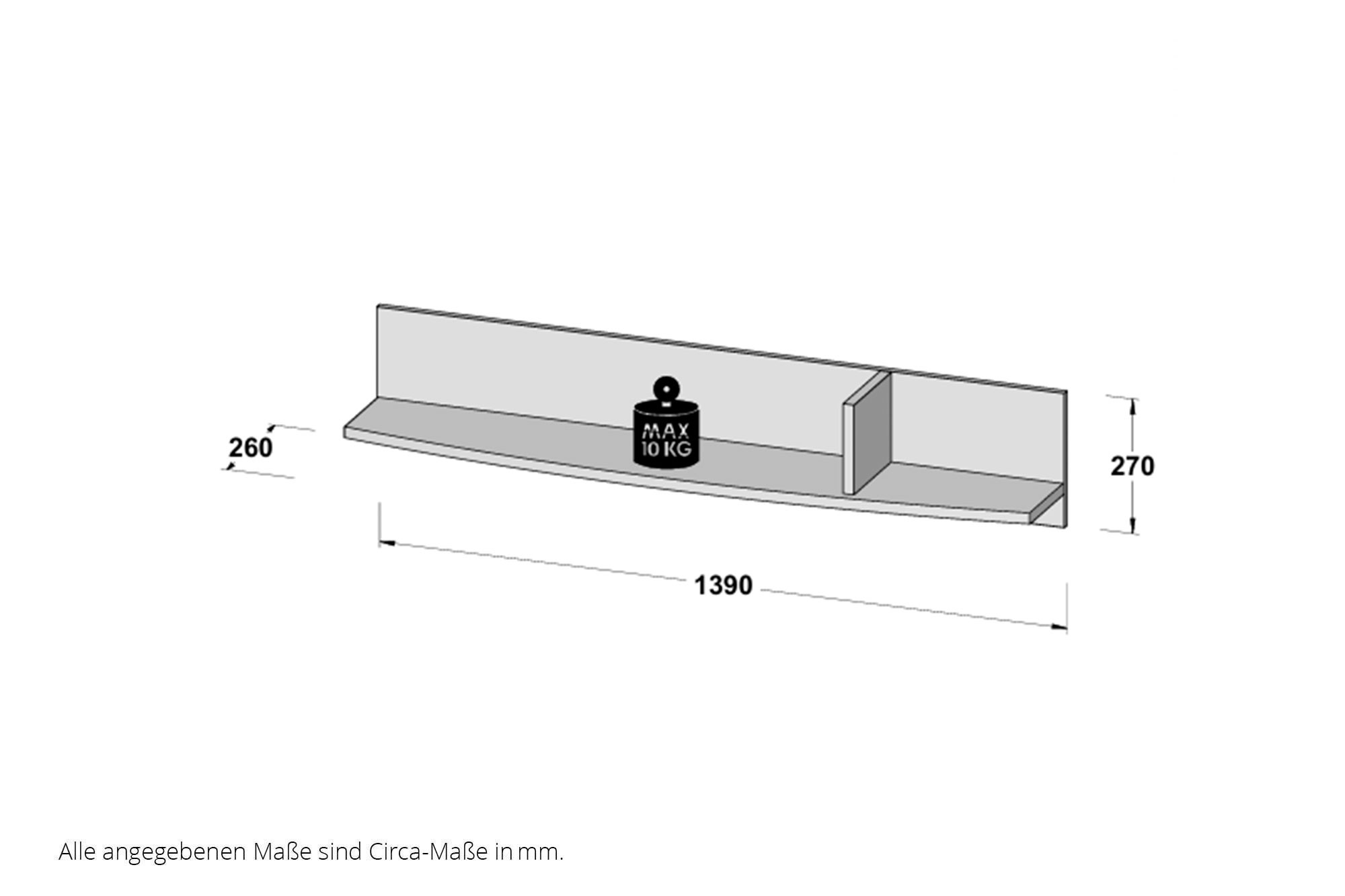 Im Schlaf- oder Jugendzimmer gibt es eine Wand, für die noch ein dekorativer, wenn möglich sogar praktischer Einrichtungsgegenstand beziehungsweise Schmuck fehlt? Bei dem Kauf eines hübschen Wandregals, das mit seinem Design zu den bereits vorhandenen Möbelstücken passt oder einen gelungenen Akzent dazu setzt, haben Sie einen zweckmäßigen und ansprechenden Wandschmuck gefunden, der die Einrichtung hervorragend ergänzt. In diesem Angebot stellen wir Ihnen das Wandregal des Möbelherstellers Forte aus dem Schlaf- und Jugendzimmer-Programm Rondino vor. Das Rondino Wandregal von Forte hat eine Breite von etwa 139 cm und besteht aus einem Rückwandpaneel mit einem Ablageboden und einer vertikalen Stütze - passend zu sämtlichen Möbeln des Rondino-Programms. Nutzen Sie unseren praktischen Online-Konfigurator, wenn Sie sich andere Einzelmöbel oder eine komplette Einrichtung dieses Programms ganz einfach online bestellen möchten.