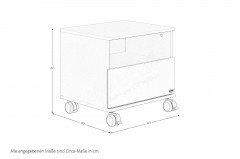 - Rollcontainer/ Nachtkommode: 1 offenes Fach, 1 Schublade, 4 Rollen grau/ weiß (2 feststellbar)
