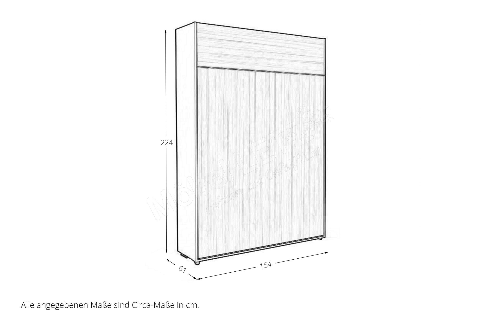 - 1 x LH6-14 - Schrankklappbett Liegefläche 140 x 200 cm, BHT ca. 154/224/61 cm (geschlossen), BHT ca. 154/224/241 cm (geöffnet)