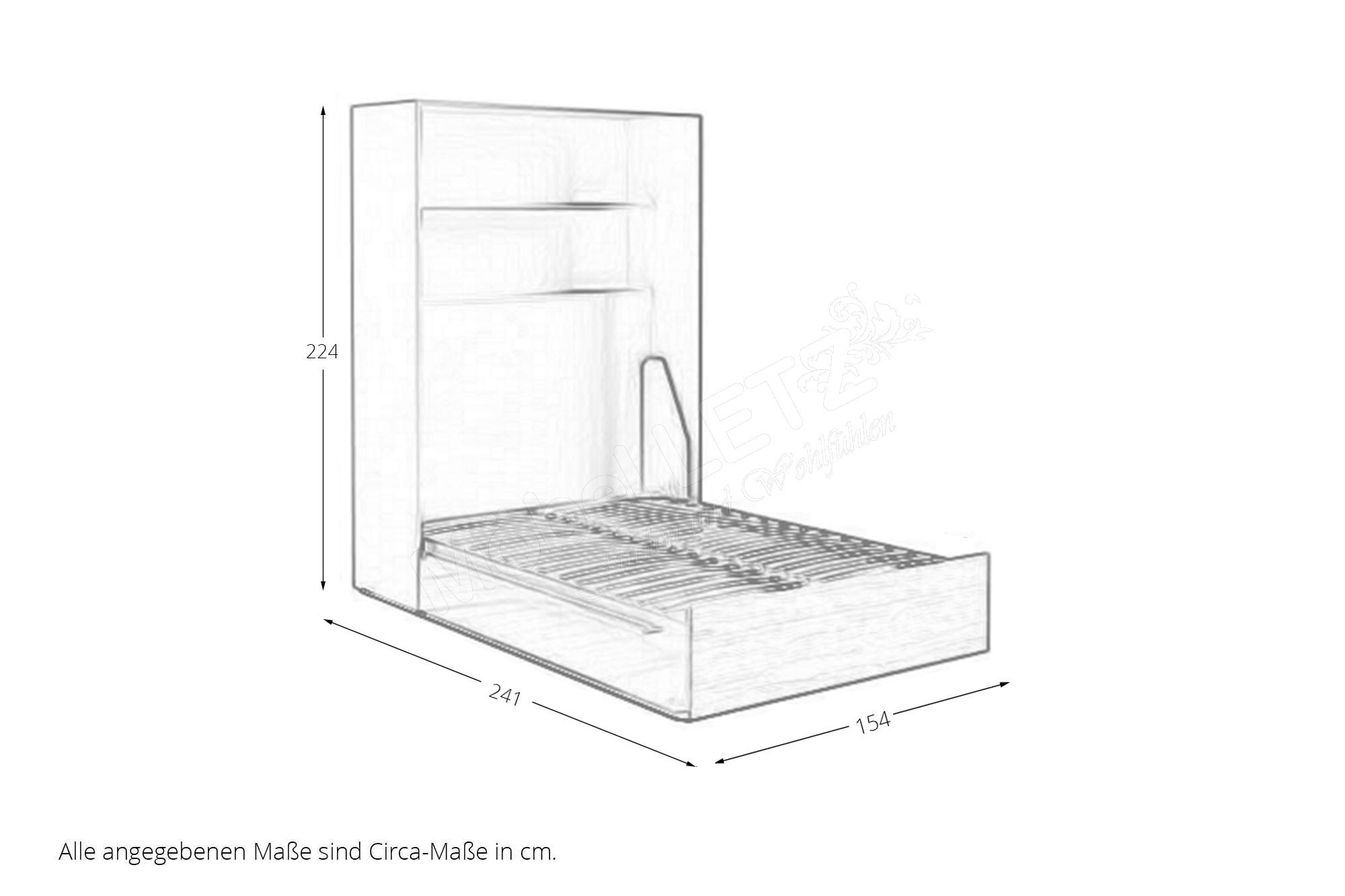 - Um eine optimale Funktion des Schrankklappbettes zu gewährleisten, ist das Einhalten der Matratzenwerte notwendig!