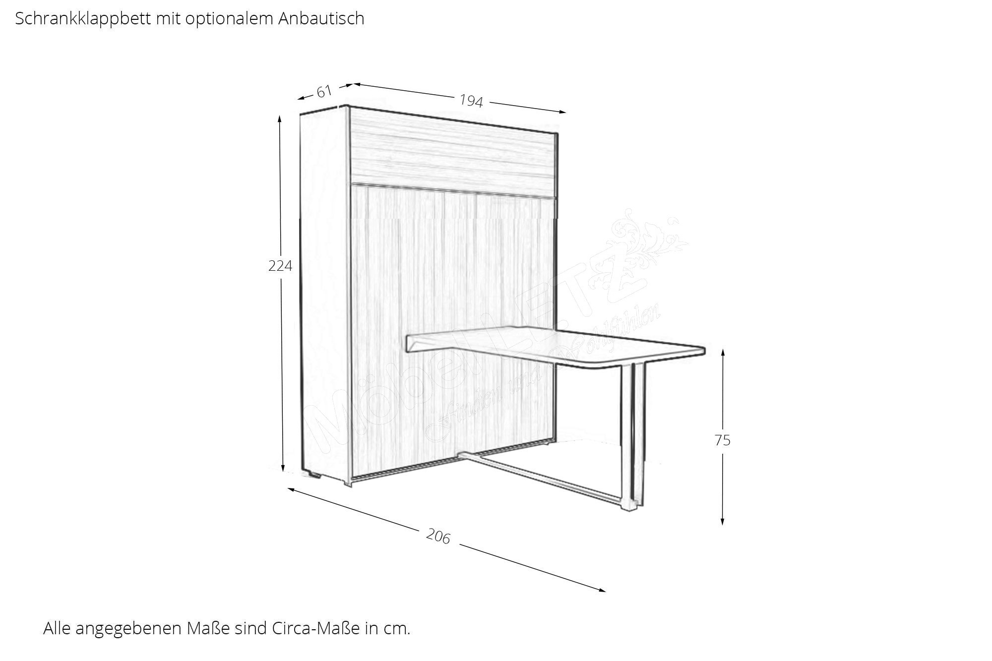 - Um eine optimale Funktion des Schrankklappbettes zu gewährleisten, ist das Einhalten der Matratzenwerte notwendig!
