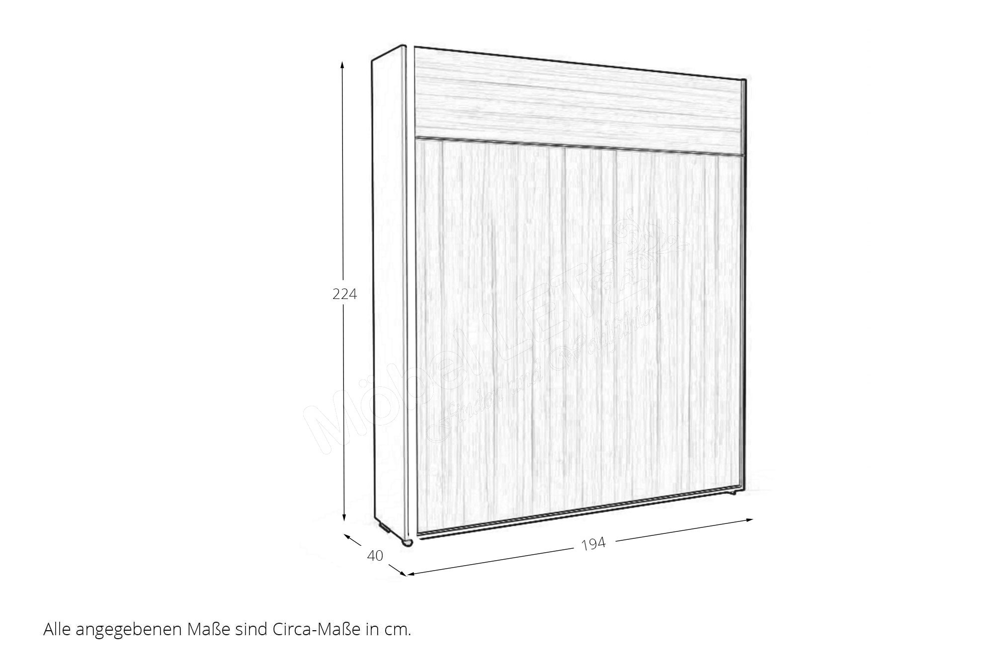 - 1 x LH4-18 - Schrankklappbett Liegefläche 180 x 200 cm, BHT ca. 194/224/40 cm (geschlossen), BHT ca. 194/224/220 cm (geöffnet)