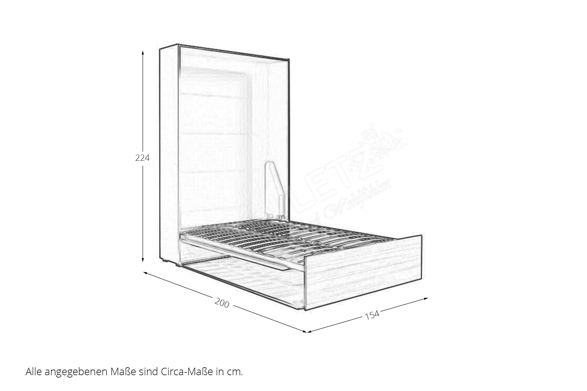 - 1 x LH4-14 - Schrankklappbett Liegefläche 140 x 200 cm, BHT ca. 154/224/40 cm (geschlossen), BHT ca. 154/224/220 cm (geöffnet)