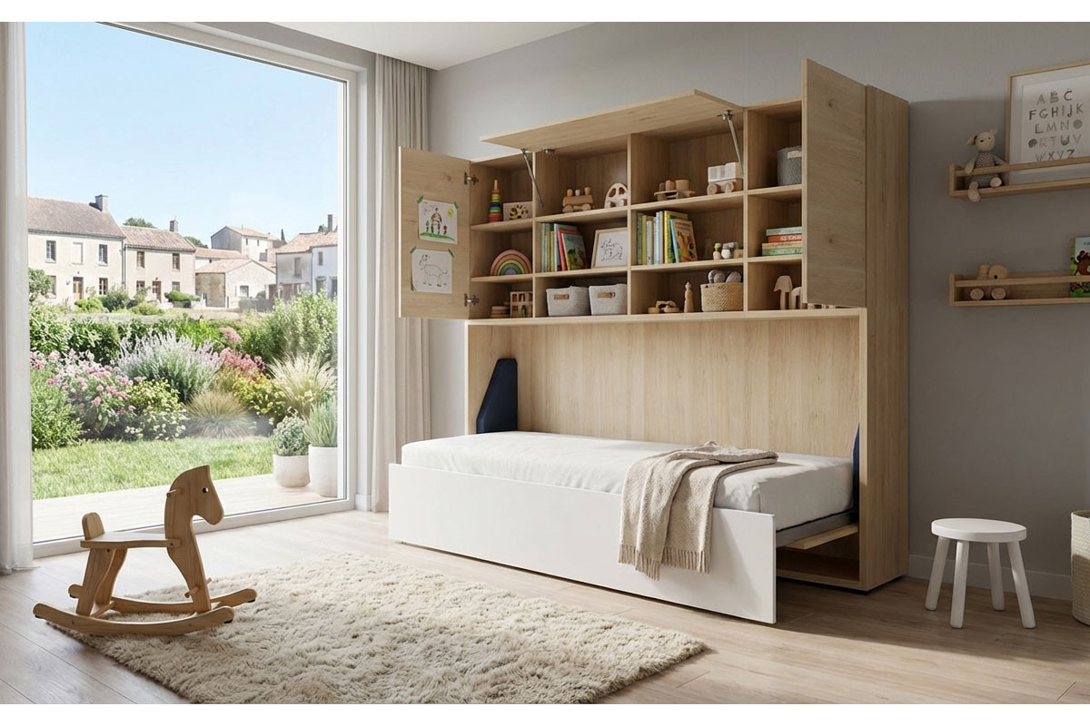 Querklappbett von Rudolf - Modell loop - mit Lattenrost & Schrank-Aufsatz in Kurztiefe Flexibel sein und bleiben!