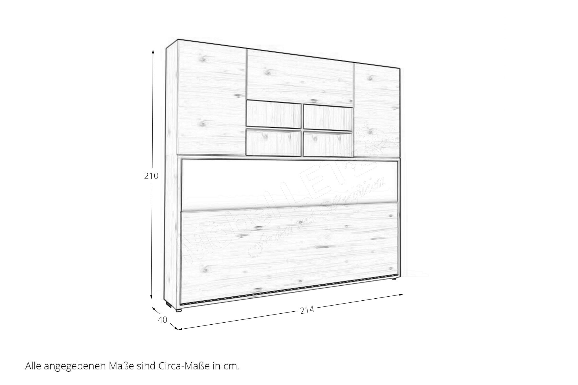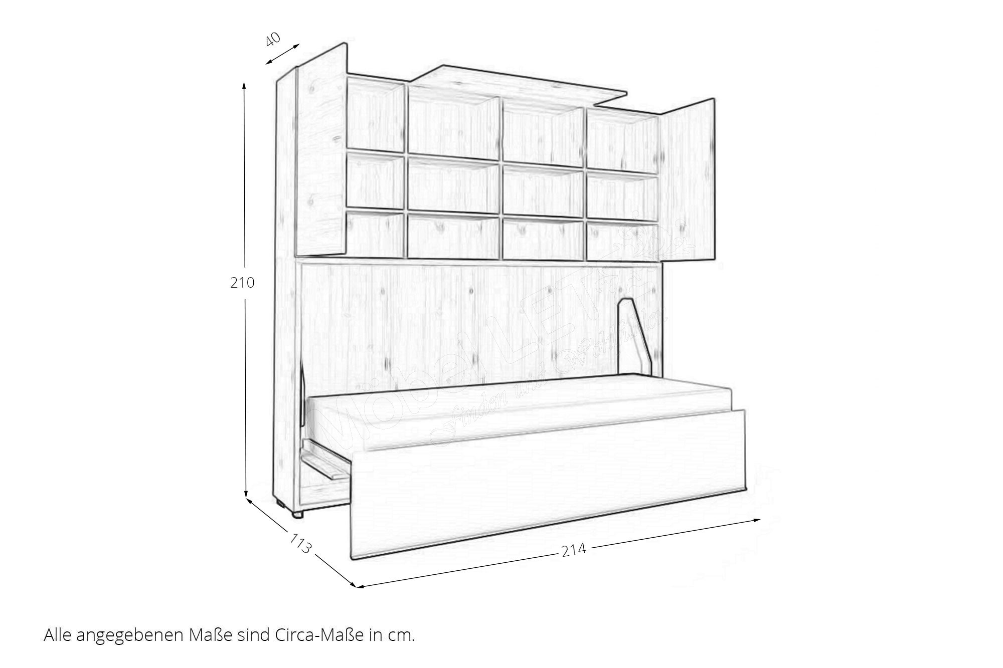 - Schrankklappbett: quer, mit Aufsatz, ca. 40 cm tief