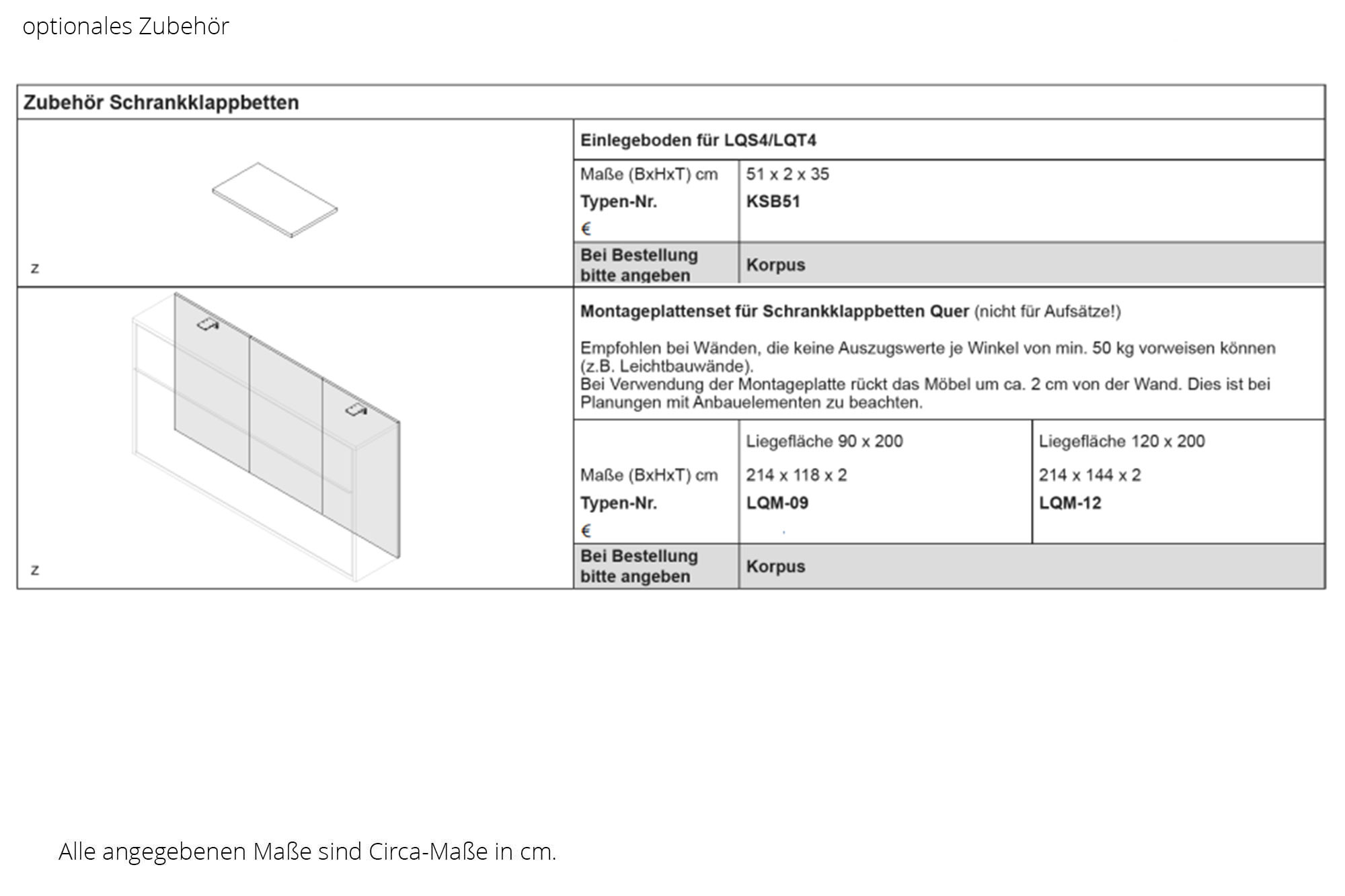 - Um eine optimale Funktion des Schrankklappbettes zu gewährleisten, ist das Einhalten der Matratzenwerte notwendig!