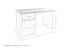 - Schreibtisch: 1 Schubkasten, 2 offene Fächer (Schubkastenelement links oder rechts montierbar)