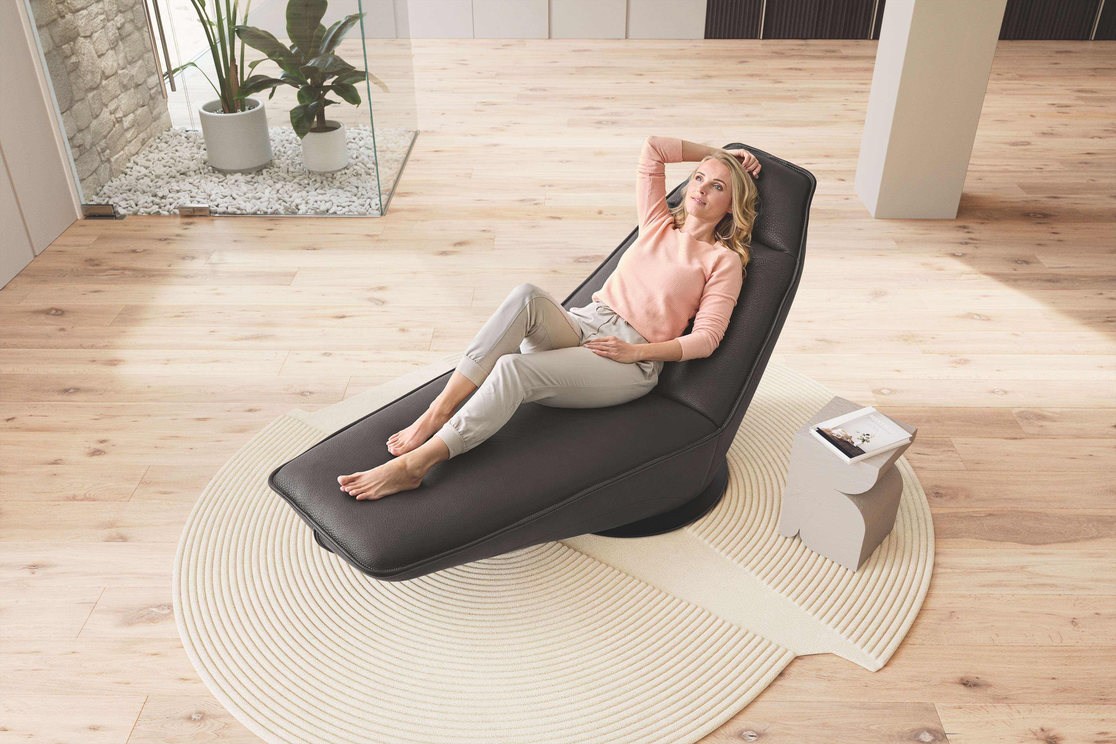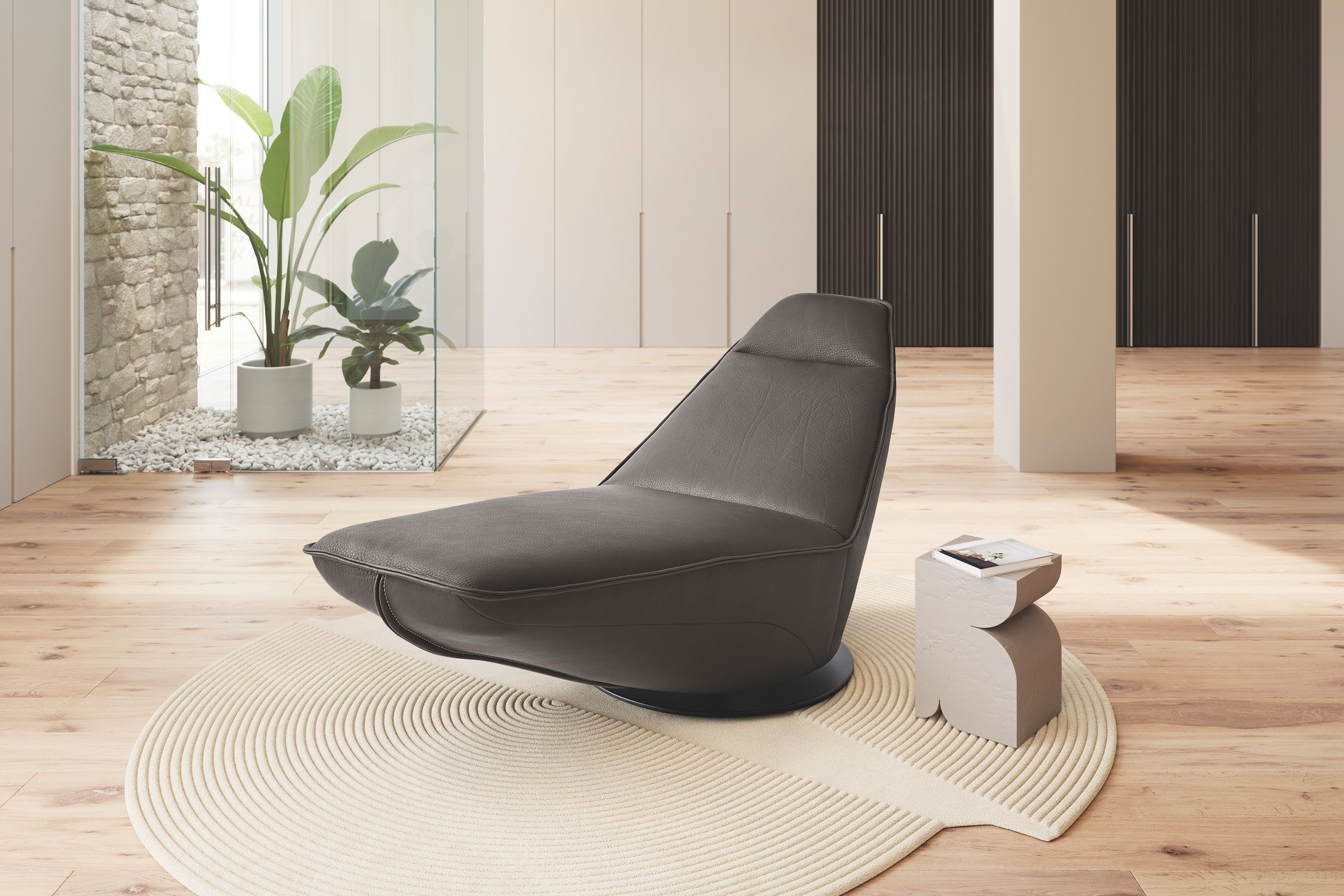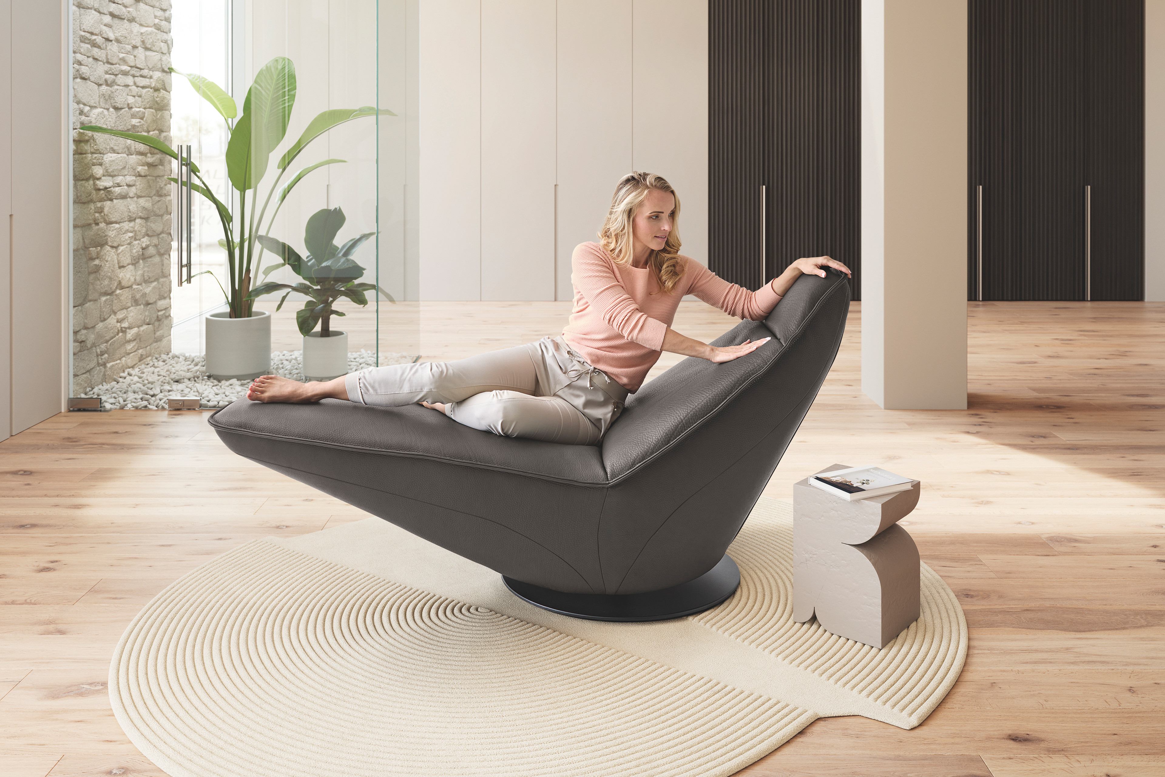 Der deutsche Traditionshersteller KOINOR hat mit seinem neusten Modell Joca eine Liege geschaffen, die skulpturale Eleganz mit erstklassigem Sitz- sowie Liegekomfort vereint. Ihre fließende, organische Form macht Joca zu einem stilvollen Solitär in modernen Wohnräumen. Ob als Ruhepol im Wohnzimmer oder im Loungebereich vor den bodentiefen Fenstern - die Liege zieht die Blicke auf sich und lädt zum Verweilen ein. Ein schwarzer Drehteller vervollständigt das attraktive Äußere und ermöglicht zudem eine flexible Ausrichtung im Raum. Ausgestattet mit einer hochwertigen Polsterung aus einem Polyschaum, der auf formstabilen Polstergurten ruht, unterstützt Sie die ergonomisch geformte Liegefläche beim ausgiebigen Relaxen. Für das absolute Maximum an Komfort lässt sich das Modell mit einer Schaukelfunktion erweitern. Durch die sanfte, kontrollierte Schaukelbewegung entsteht ein Gefühl von Leichtigkeit sowie Ruhe - ideal, um den hektischen Alltag hinter sich zu lassen, den Körper zu entspannen und bewusst abzuschalten. Mittels eines angebrachten Hebels lässt sich zudem die gefundene Relaxposition arretieren. Für mehr Individualität stehen Ihnen zahlreiche Bezugsstoffe mit den unterschiedlichsten Eigenschaften sowie verschiedene Lederqualitäten zur Verfügung - hier finden Sie garantiert das passende Bezugskleid für Ihre neue Wohlfühloase. Joca von KOINOR - für Entspannung, die man nicht nur spürt, sondern erlebt.