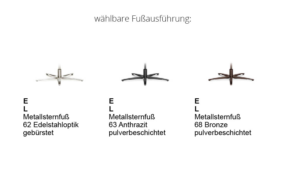 - Fußvariante: 63 - Metallsternfuß anthrazit pulverbeschichtet