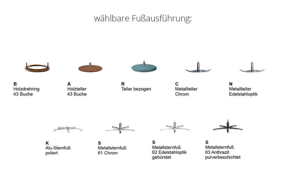 - Fußvariante: S - Metallsternfuß Edelstahloptik gebürstet
