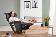 Wie kommen Sie am besten zur Ruhe, um vom schnelllebigen Alltag abschalten zu können? Gönnen Sie sich zukünftig erholsame Augenblicke in einer gemütlichen Liegeposition mit dem Himolla Funktionssessel 7927 aus der EASYSWING-Kollektion. Bereits auf den ersten Blick besticht das Modell mit seinem stilvollen Gewand aus Echtleder in einem dunklen Grauton sowie einem Holzteller mit Edelstahlring in der Ausführung Buche schattiert, wodurch es jeden Raum mit einer frischen Brise Modernität sowie Eleganz bereichert und gleichzeitig ideal in jedes Wohnkonzept eingefügt werden kann. Neben den optischen Aspekten punktet 7927 ferner mit inneren Werten sowie fantastischer Funktionalität. Gepolstert mit einem hochwertigen Superlastic-Formschaum, der Ihnen in drei Sitzhärten zur Auswahl steht und einen himmlischen Sitzkomfort garantiert, sowie in der Grundversion ausgestattet mit einer manuellen Relaxfunktion, bei der das Fußteil durch Gewichtsverlagerung und der Rücken mit Gasdruckfeder getrennt voneinander in die gewünschte Wohlfühlposition gebracht werden können, wird der TV-Sessel mit Sicherheit schnell zum Familienliebling, auf dem jeder gern Platz nimmt. Verschiedene Ergonomiegrößen, eine reichliche Auswahl an verschiedenen Fußvarianten, die großartige Bezugskollektion sowie die Buchung einer motorischen Relaxausführung ermöglichen eine individuelle Gestaltung Ihres neuen Rückzugsortes. Stöbern Sie in Ruhe durch die Zusatzoptionen, die Rubrik "Wunschbezug - Farbe ändern" oder kontaktieren Sie unsere freundlichen Einrichtungsexperten, die Ihnen gern mit Rat und Tat zur Seite stehen, damit auch Sie bald einen Himolla Relaxessel in Ihrem Zuhause willkommen heißen können. 7927 von Himolla Polstermöbel - das beschwingte Multitalent zum Zurücklehnen.