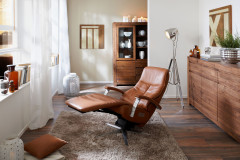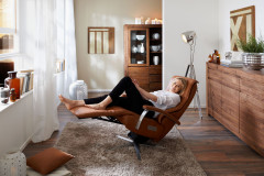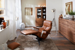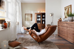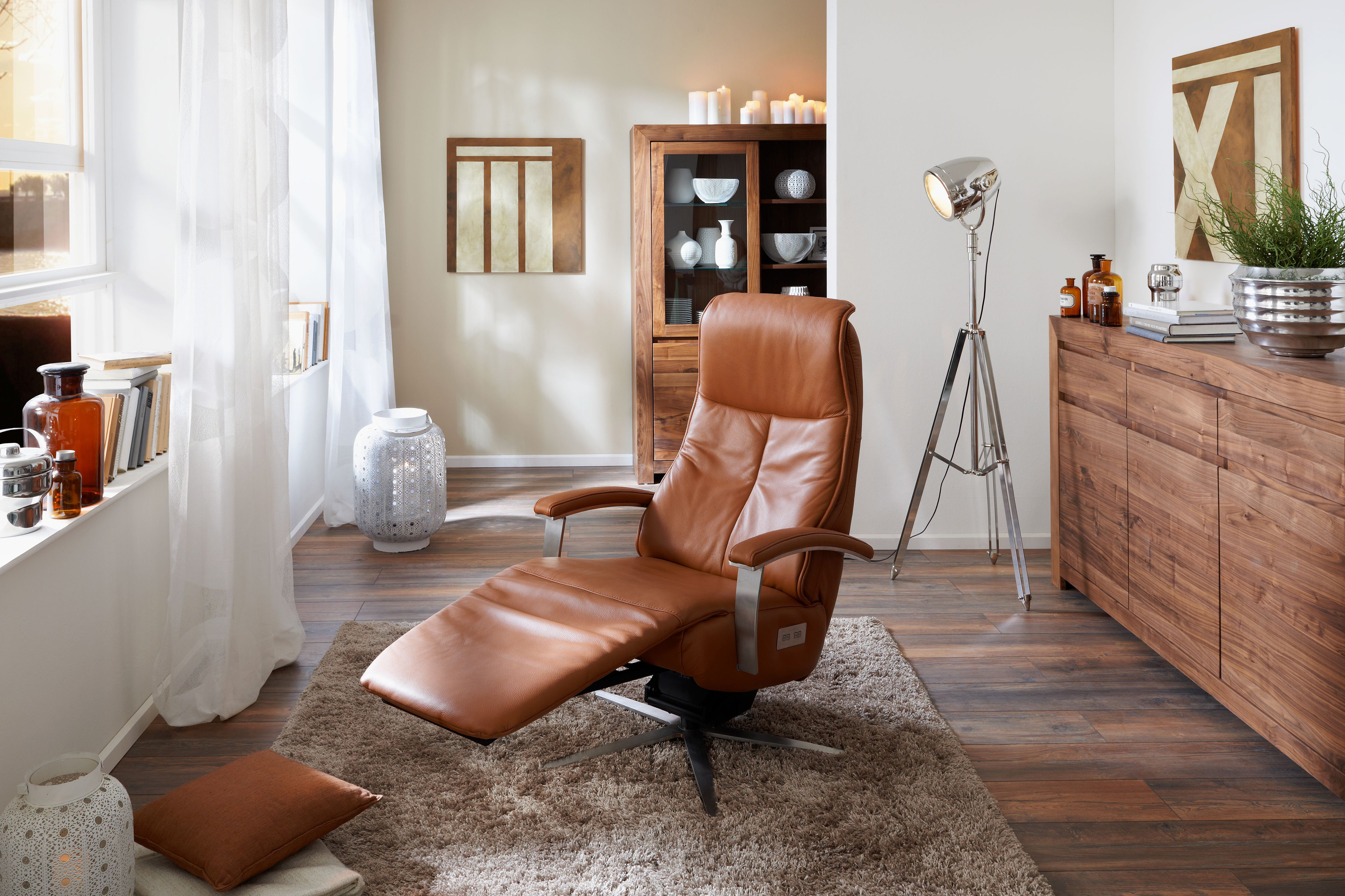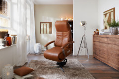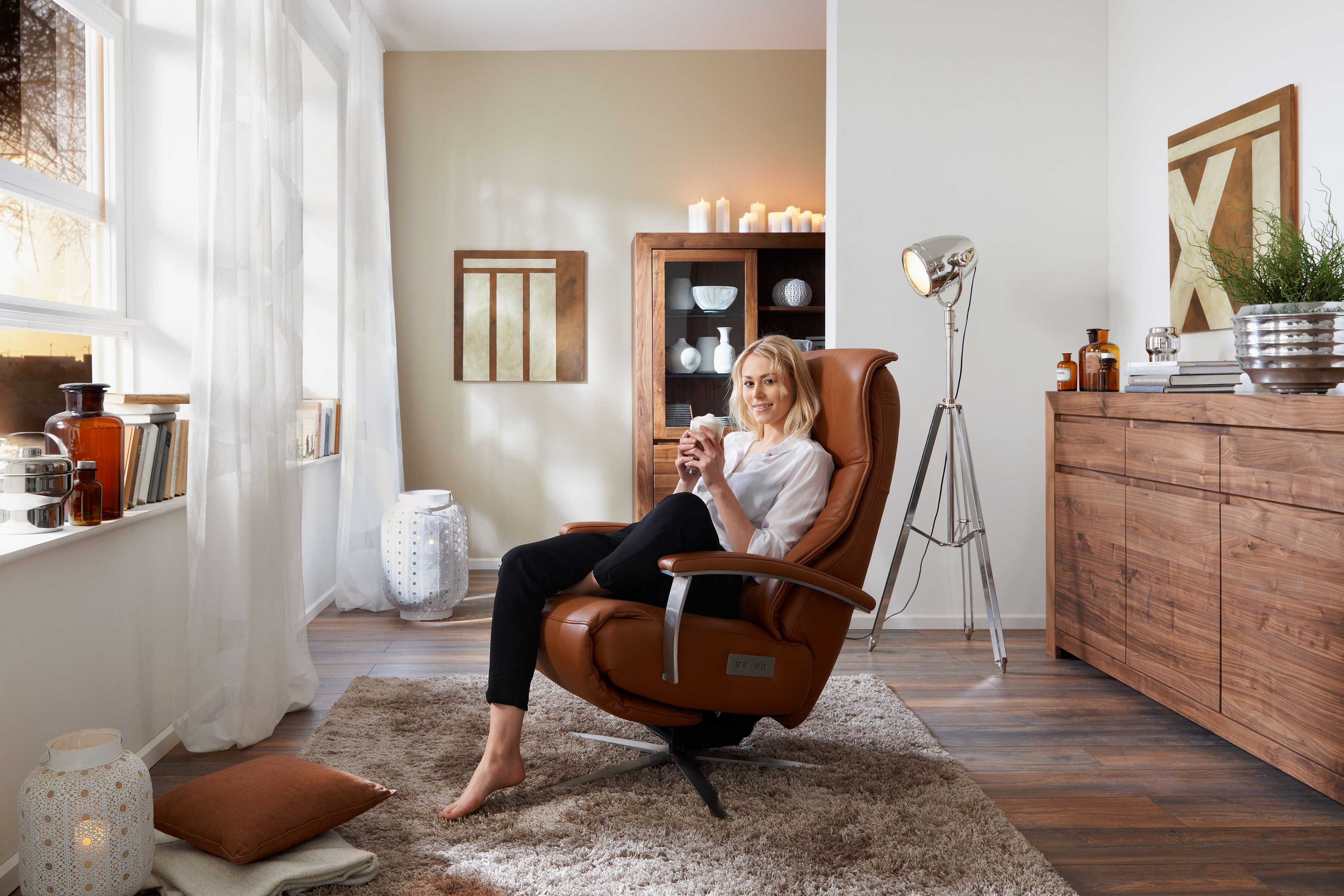 Zauberhaft, geradezu graziös tritt der Relaxsessel HU-CA15056 von Hukla, hier gekleidet in einem rotbraunen Ledergewand, in Erscheinung und raubt bereits auf den ersten Blick jeden Atem. Zu seinem umwerfenden Erscheinungsbild gesellen sich optionale Komfortausstattungen, von welchen Sie ebenfalls mehr als angetan sein werden, denn dieser Funktionssessel hält alles bereit, was das Herz begehrt. Und meist sind dies Entspannung sowie Erholung in den eigenen vier Wänden, ob nach einem langen, anstrengenden Arbeitstag oder einfach zwischendurch. So präsentiert sich das Modell in der Grundausstattung mit einer manuellen Relax- sowie Kopfteilverstellung. Ein außen liegender Starthilfe-Hebel ermöglicht es Ihnen, die Fußstütze auszufahren und anschließender Körperdruck gegen die Rückenlehne bringt diese in eine angenehm geneigte Position. Natürlich können Sie sich über unsere Zusatzoptionen ebenfalls für eine 2- oder 3-motorige Erweiterung, optional mit Akku, entscheiden. Bei dieser befinden sich Touch-Sensoren an der Außenseite des Sessels. Eine leichte Berührung mit dem Finger genügt und schon gleiten Sie in Ihre gewünschte Liege- sowie Ruheposition. Selbst die Kopfpolsterverstellung lässt sich motorisch wählen. Sie leiden unter Rückenproblemen? Eine manuelle Lendenstütze wirkt diesen entgegen und fördert ein gesundes Sitzverhalten. Passen Sie den TV-Sessel darüber hinaus an Ihre Körpergröße an, um sich auf diesem traumhaften Sitzmöbel vollkommen fallen lassen zu können. Auch der Bezug sowie die Farbe sind über den Menüpunkt "Wunschbezug" blitzschnell änderbar. So kreieren Sie sich einen individuellen Rückzugsort, an dem Stress und Anspannung keine Rolle mehr spielen - der Drehsessel HU-CA15056 aus dem Hause Hukla.