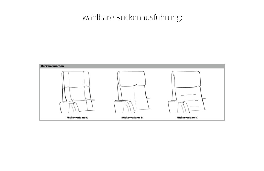 - Funktionen - Kopfpolsterverstellung durch Rastbeschlag mit Rückholfeder, Verstellung der Beinauflage durch Körperdruck, stufenlose Verstellung der Rückenlehne durch innenliegenden Hebel per Gasdruckfeder sowie Körperdruck