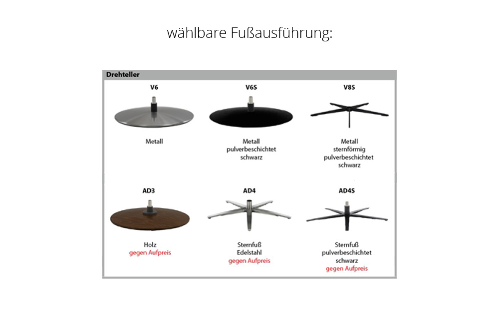 - Fußvariante: V8S - Metall sternförmig schwarz pulverbeschichtet