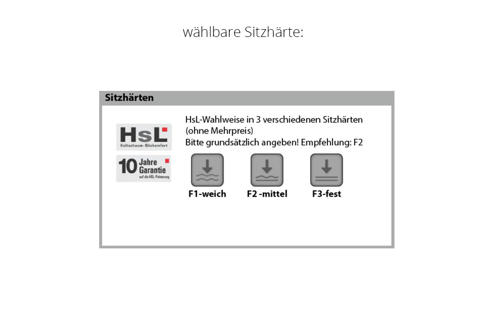 - Sitz: HsL - HUKLA-Superflex hochwertiger Formkaltschaum auf Stahlwellenfedern