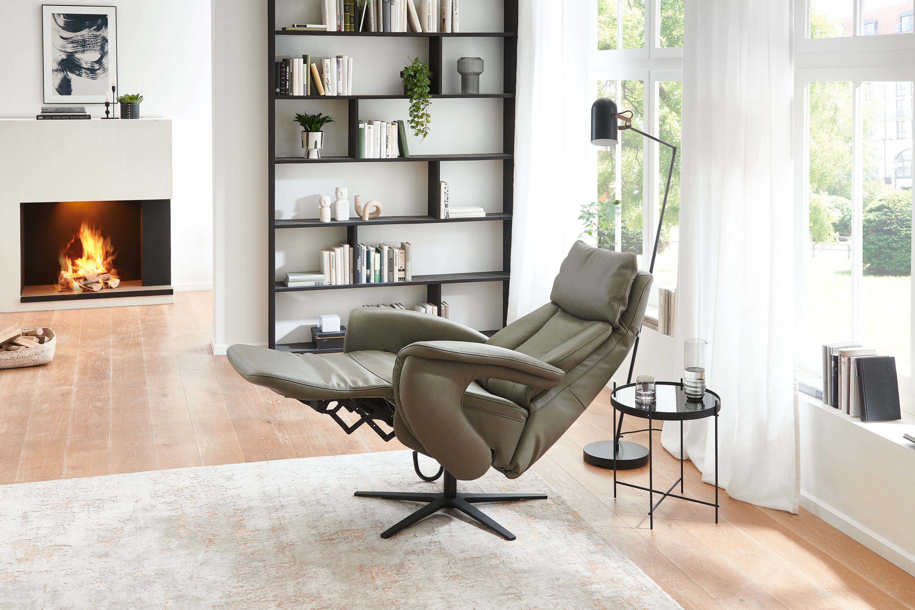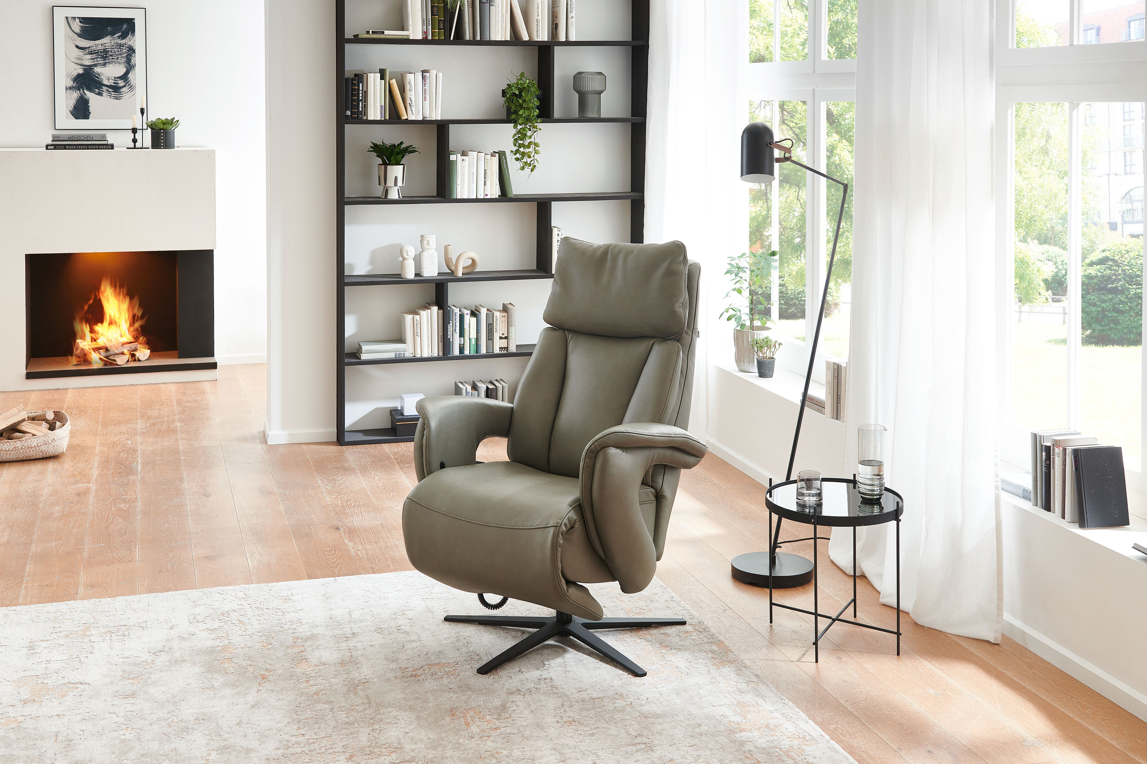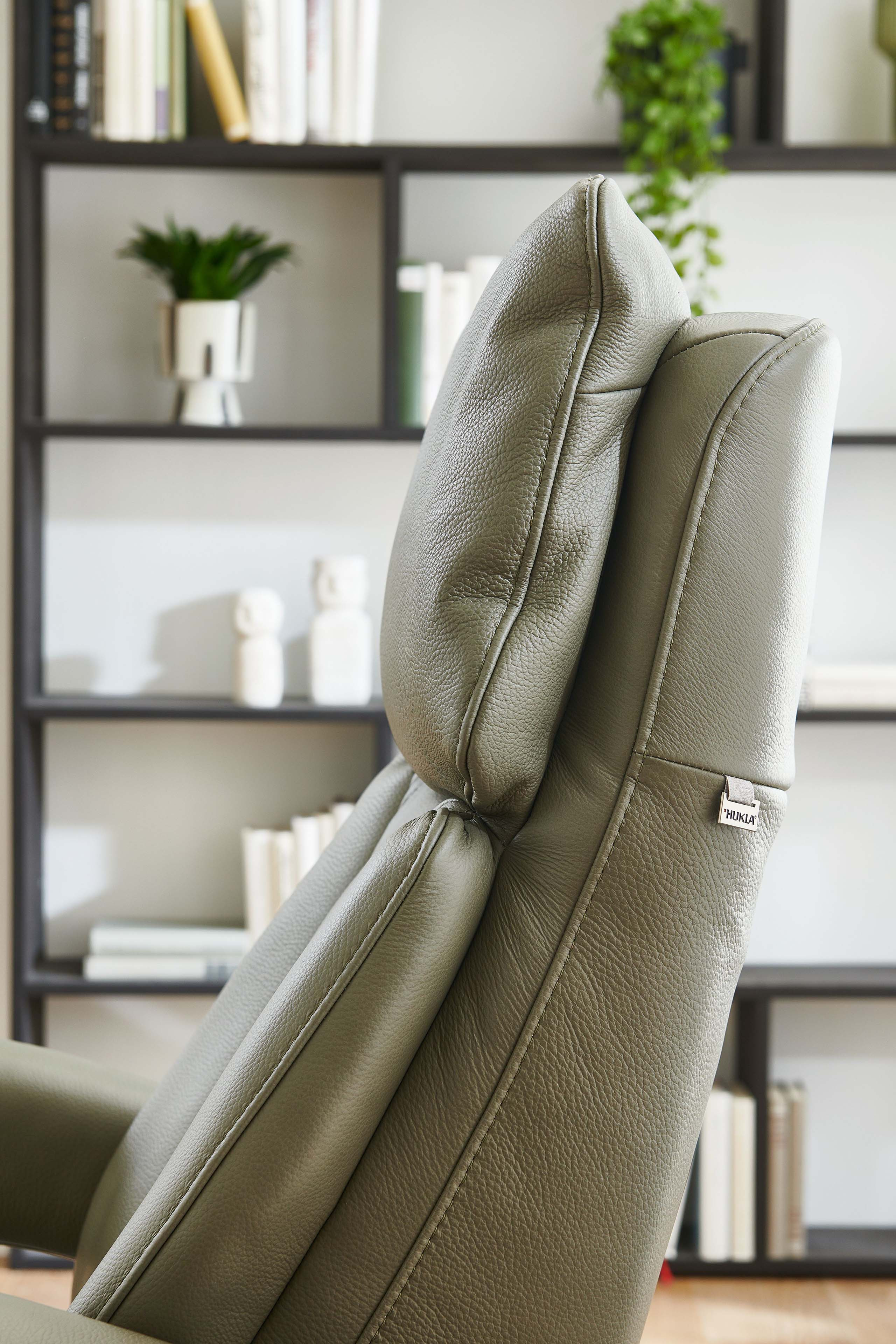 Holen Sie sich mit diesem Hukla Ruhesessel ein Möbelstück in Ihr Zuhause, welches schon beim ersten Anblick Geborgenheit vermittelt, zum Wohlfühlen einlädt und mit einem attraktiven Design jeden Raum zum Leuchten bringt - Modell HU-EC22138. In diesem Angebot präsentiert sich der Relaxsessel in einem Lederoutfit in der Farbe „olive“ sowie stehend auf einem schwarzen Metallsternfuß, wodurch ein besonders elegantes Erscheinungsbild entsteht, welches alle Blicke auf sich zieht. Schon beim ersten Platznehmen spüren Sie ein außergewöhnliches Sitzgefühl, ausgelöst von einer hochwertigen Polsterung aus einem Formkaltschaum auf stützenden Stahlwellenfedern. Dank dieses bezaubernden Komforts wird der Solist garantiert zu Ihrem neuen Lieblingsplatz, an dem Sie sich entspannt zurücklehnen, dem ganzen Alltagsstress entfliehen und in einem spannenden Roman eintauchen können. In der Grundversion ist das Polstermöbel mit einer manuellen Verstellung der Fußstütze, Rückenlehne sowie des Kopfteils ausgestattet, sodass Sie die Möglichkeit bekommen, jeden Moment im Liegen zu genießen. Auf Wunsch lässt sich HU-EC22138 mit einer 1-, 2- oder 3-motorigen Funktion ausrüsten, wodurch Sie Ihre Lieblingsposition mittels eines Handschalters finden. Diese können Sie über unsere Zusatzoptionen hinzubuchen, wo Sie ebenfalls zwischen weiteren Fußausführungen, Armlehnen, Sitzhärten und Ergonomiegrößen entscheiden können. Zudem erhalten Sie mit einem Klick auf den Button "Farbe ändern" eine umfangreiche Stoff- sowie Lederkollektion mit tollen, verschiedenen Farbnuancen. So können Sie das Bezugskleid ganz nach Ihren Vorstellungen und Ihrem Einrichtungsstil anpassen. Verleihen Sie Ihrem Wohnraum mit dem Sessel HU-EC22138 von Hukla ein stilvolles Upgrade und erleben Sie zukünftig ruhige sowie erholsame Augenblicke.