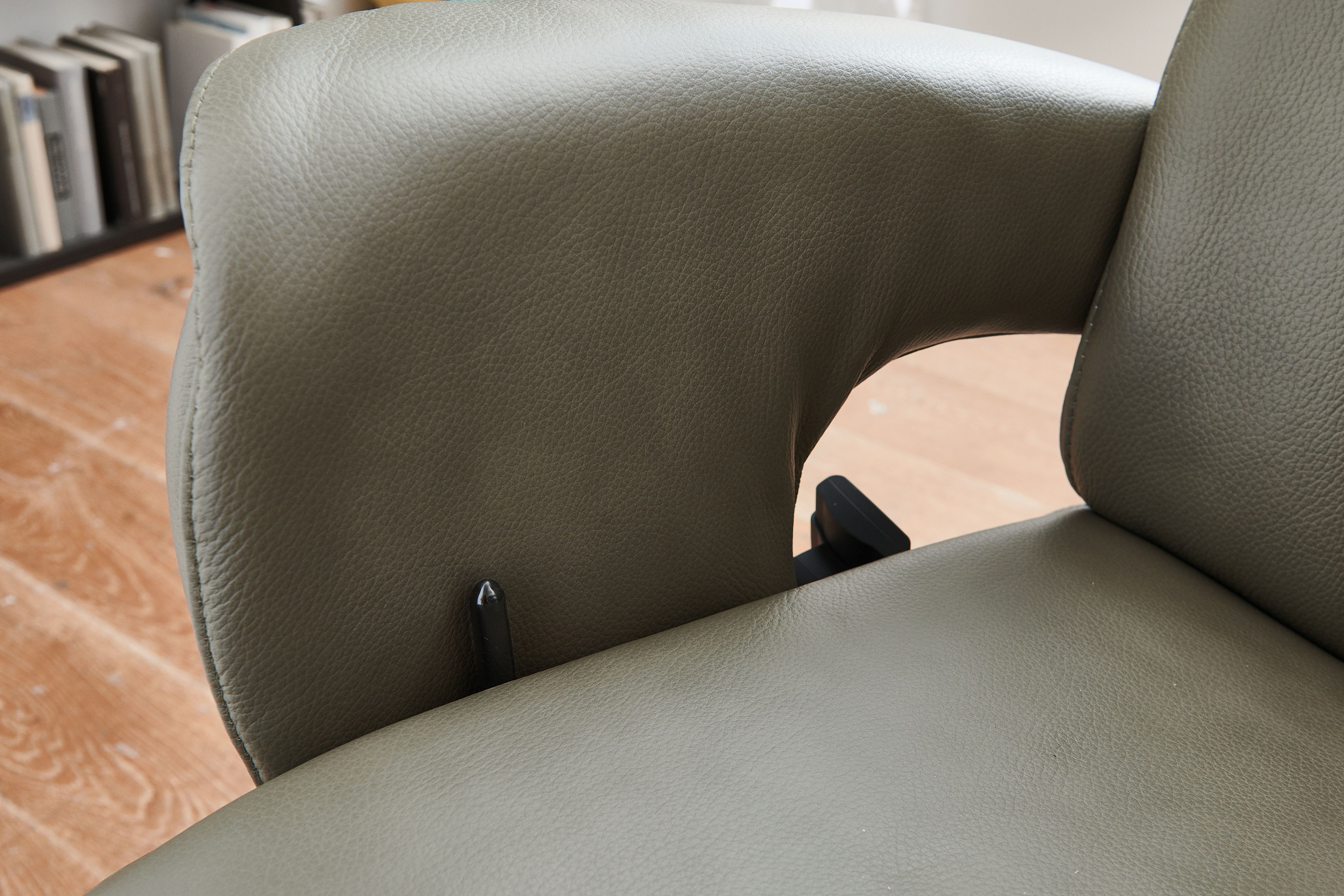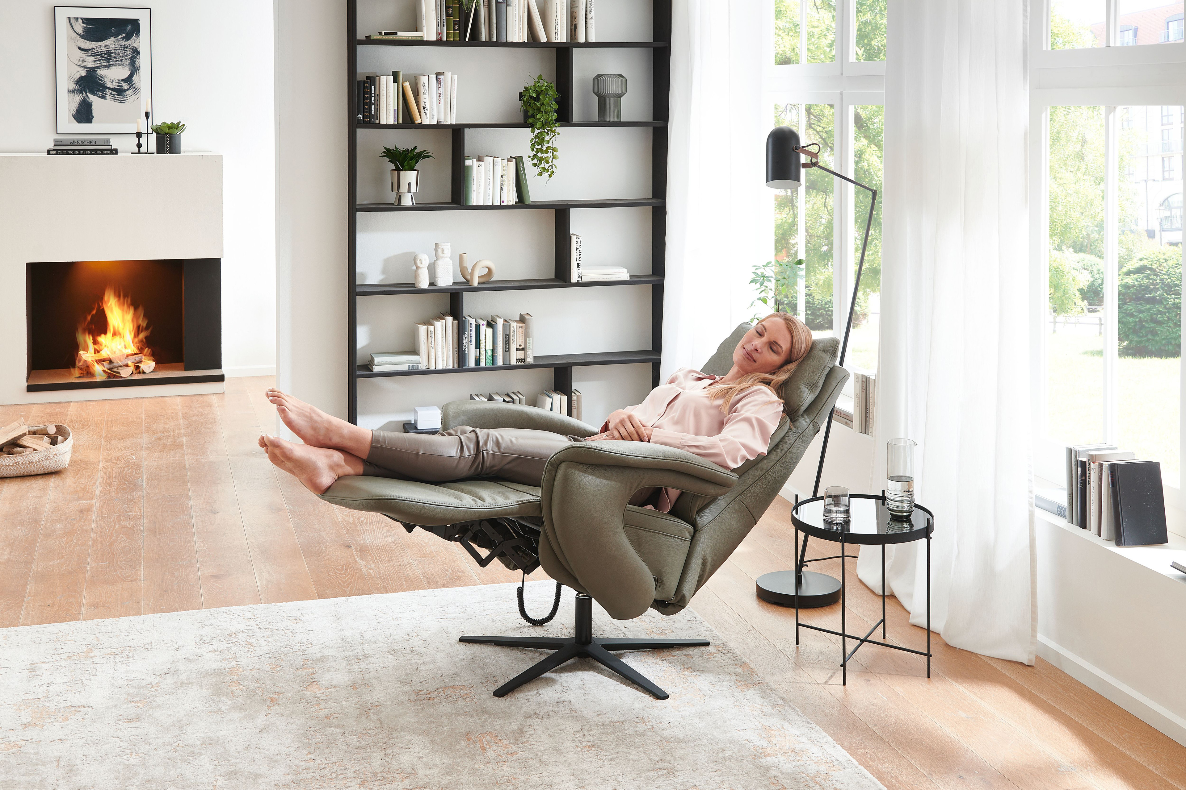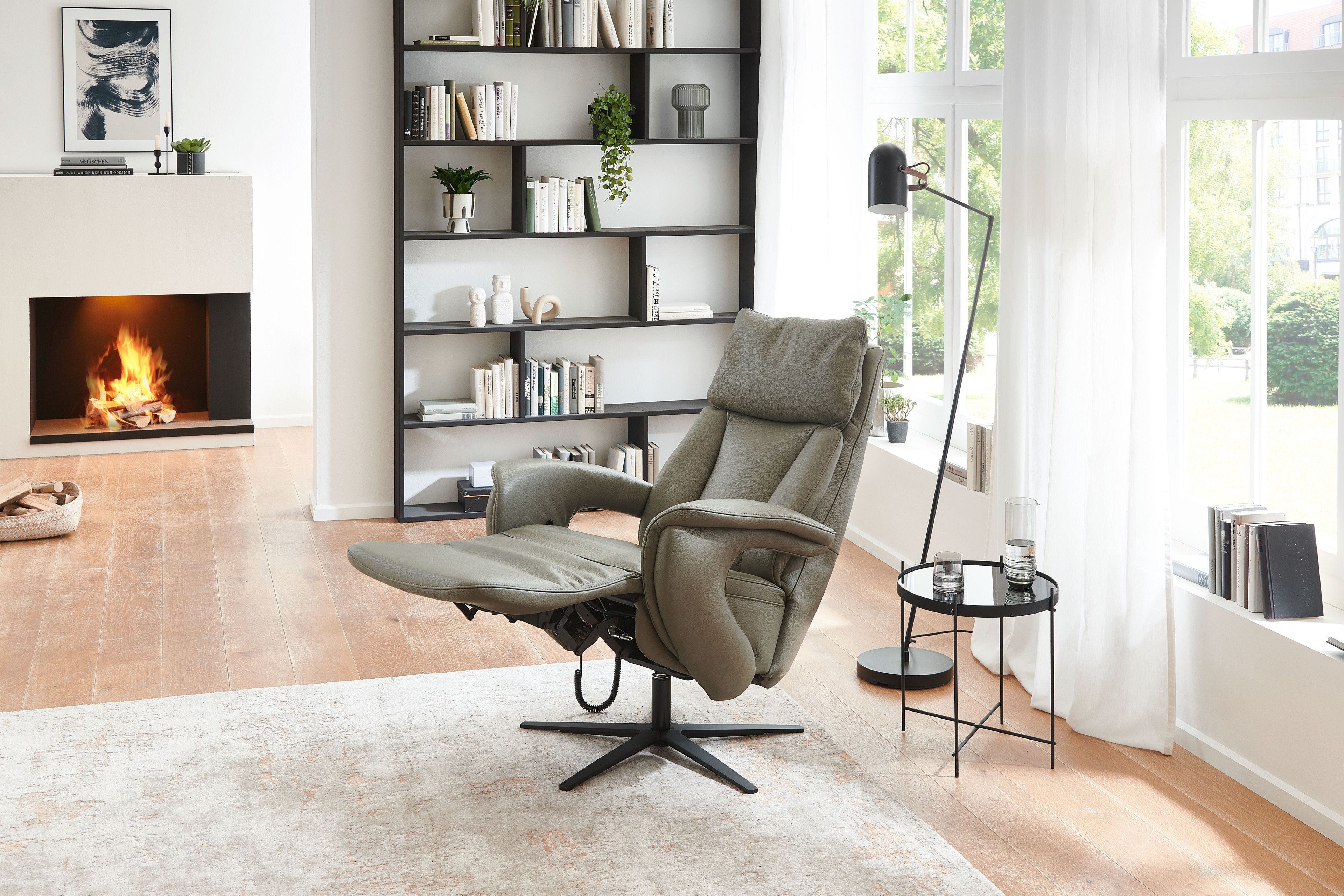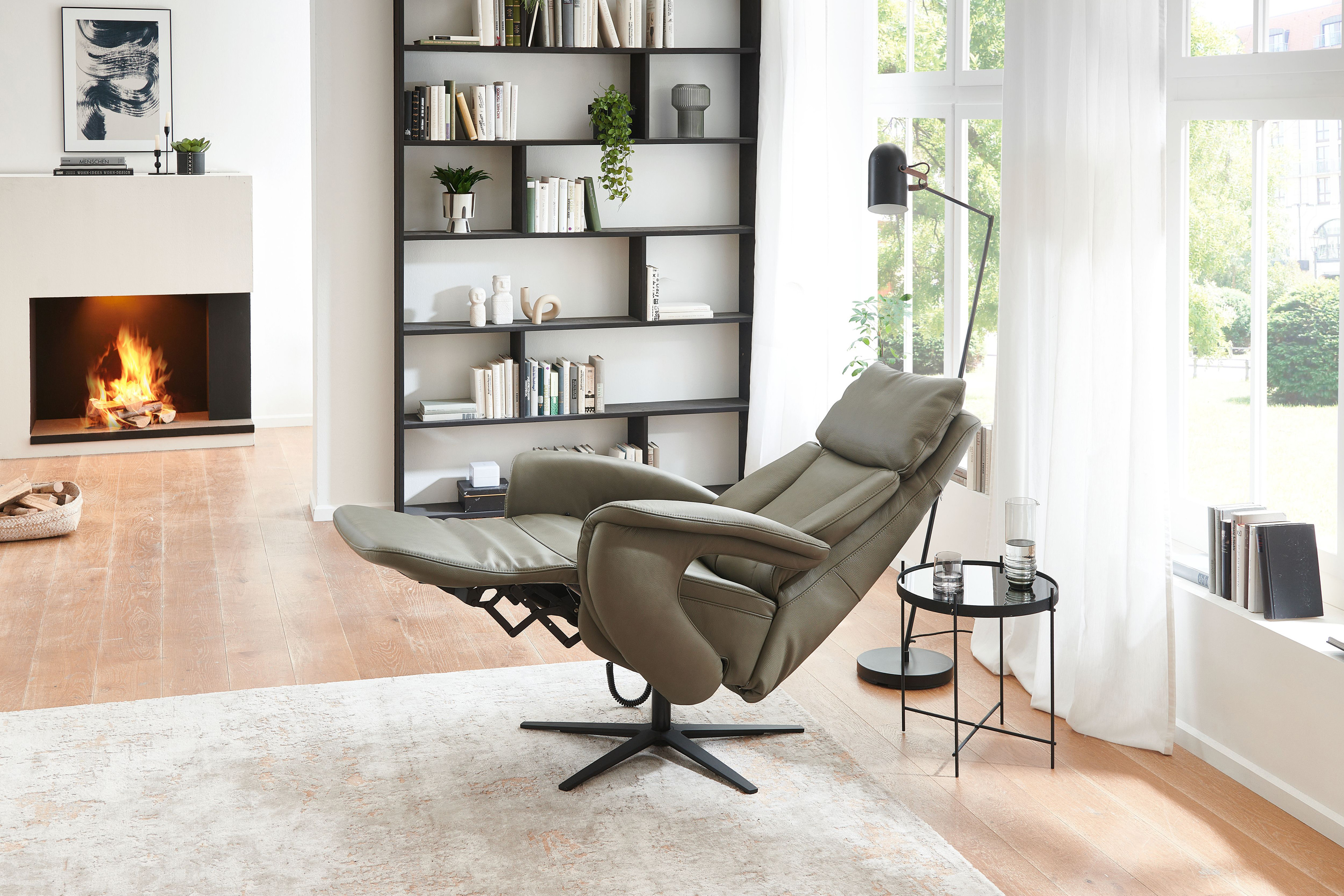 Holen Sie sich mit diesem Hukla Ruhesessel ein Möbelstück in Ihr Zuhause, welches schon beim ersten Anblick Geborgenheit vermittelt, zum Wohlfühlen einlädt und mit einem attraktiven Design jeden Raum zum Leuchten bringt - Modell HU-EC22138. In diesem Angebot präsentiert sich der Relaxsessel in einem Lederoutfit in der Farbe „olive“ sowie stehend auf einem schwarzen Metallsternfuß, wodurch ein besonders elegantes Erscheinungsbild entsteht, welches alle Blicke auf sich zieht. Schon beim ersten Platznehmen spüren Sie ein außergewöhnliches Sitzgefühl, ausgelöst von einer hochwertigen Polsterung aus einem Formkaltschaum auf stützenden Stahlwellenfedern. Dank dieses bezaubernden Komforts wird der Solist garantiert zu Ihrem neuen Lieblingsplatz, an dem Sie sich entspannt zurücklehnen, dem ganzen Alltagsstress entfliehen und in einem spannenden Roman eintauchen können. In der Grundversion ist das Polstermöbel mit einer manuellen Verstellung der Fußstütze, Rückenlehne sowie des Kopfteils ausgestattet, sodass Sie die Möglichkeit bekommen, jeden Moment im Liegen zu genießen. Auf Wunsch lässt sich HU-EC22138 mit einer 1-, 2- oder 3-motorigen Funktion ausrüsten, wodurch Sie Ihre Lieblingsposition mittels eines Handschalters finden. Diese können Sie über unsere Zusatzoptionen hinzubuchen, wo Sie ebenfalls zwischen weiteren Fußausführungen, Armlehnen, Sitzhärten und Ergonomiegrößen entscheiden können. Zudem erhalten Sie mit einem Klick auf den Button "Farbe ändern" eine umfangreiche Stoff- sowie Lederkollektion mit tollen, verschiedenen Farbnuancen. So können Sie das Bezugskleid ganz nach Ihren Vorstellungen und Ihrem Einrichtungsstil anpassen. Verleihen Sie Ihrem Wohnraum mit dem Sessel HU-EC22138 von Hukla ein stilvolles Upgrade und erleben Sie zukünftig ruhige sowie erholsame Augenblicke.