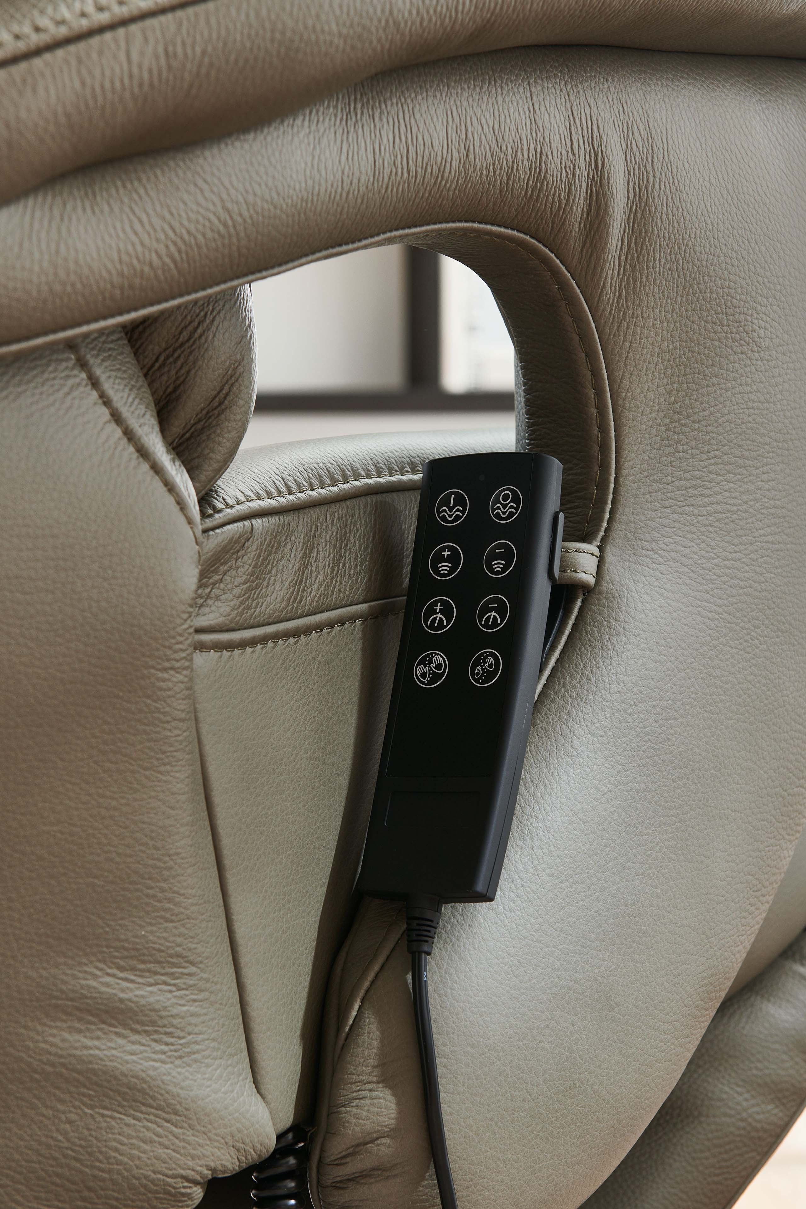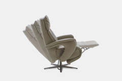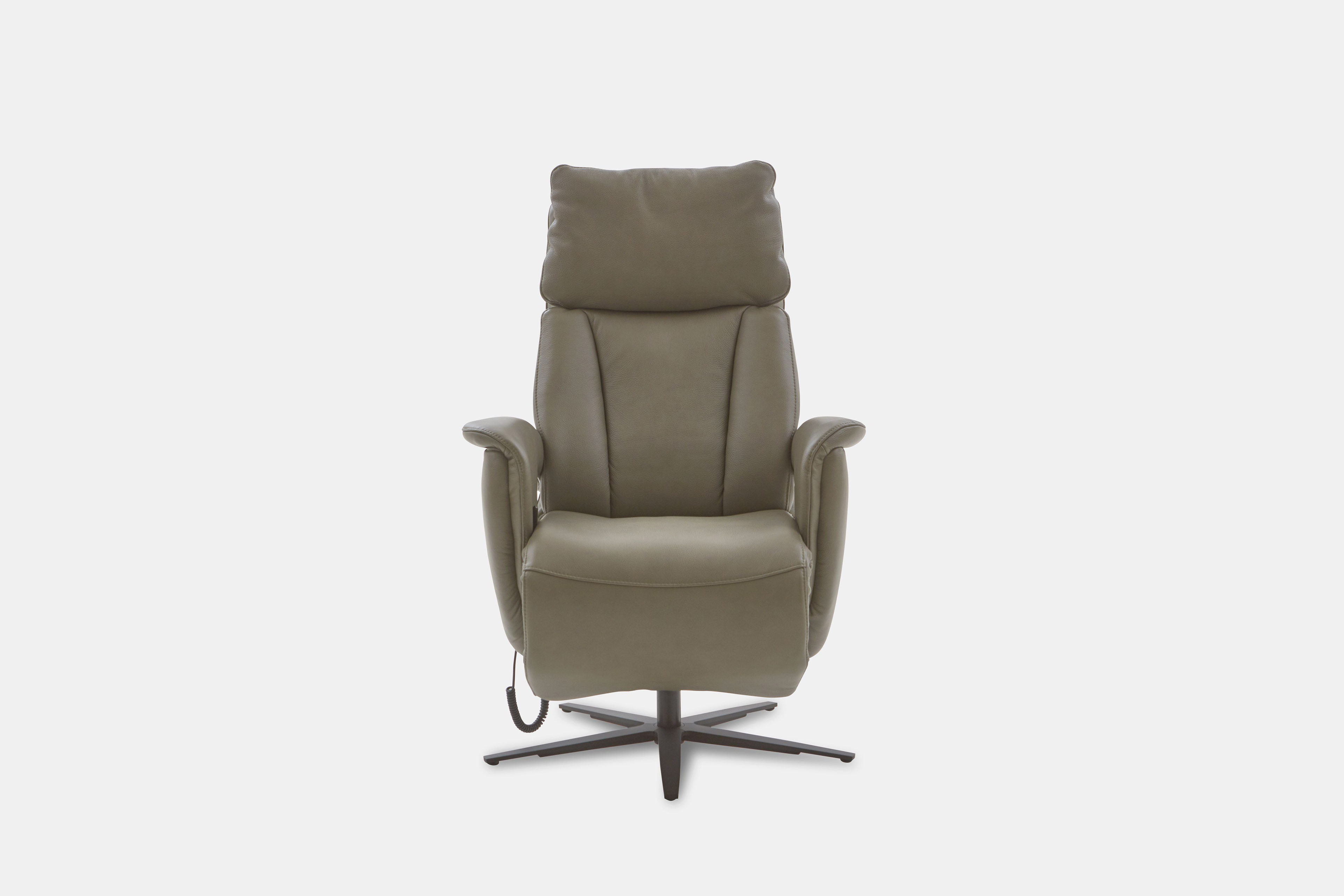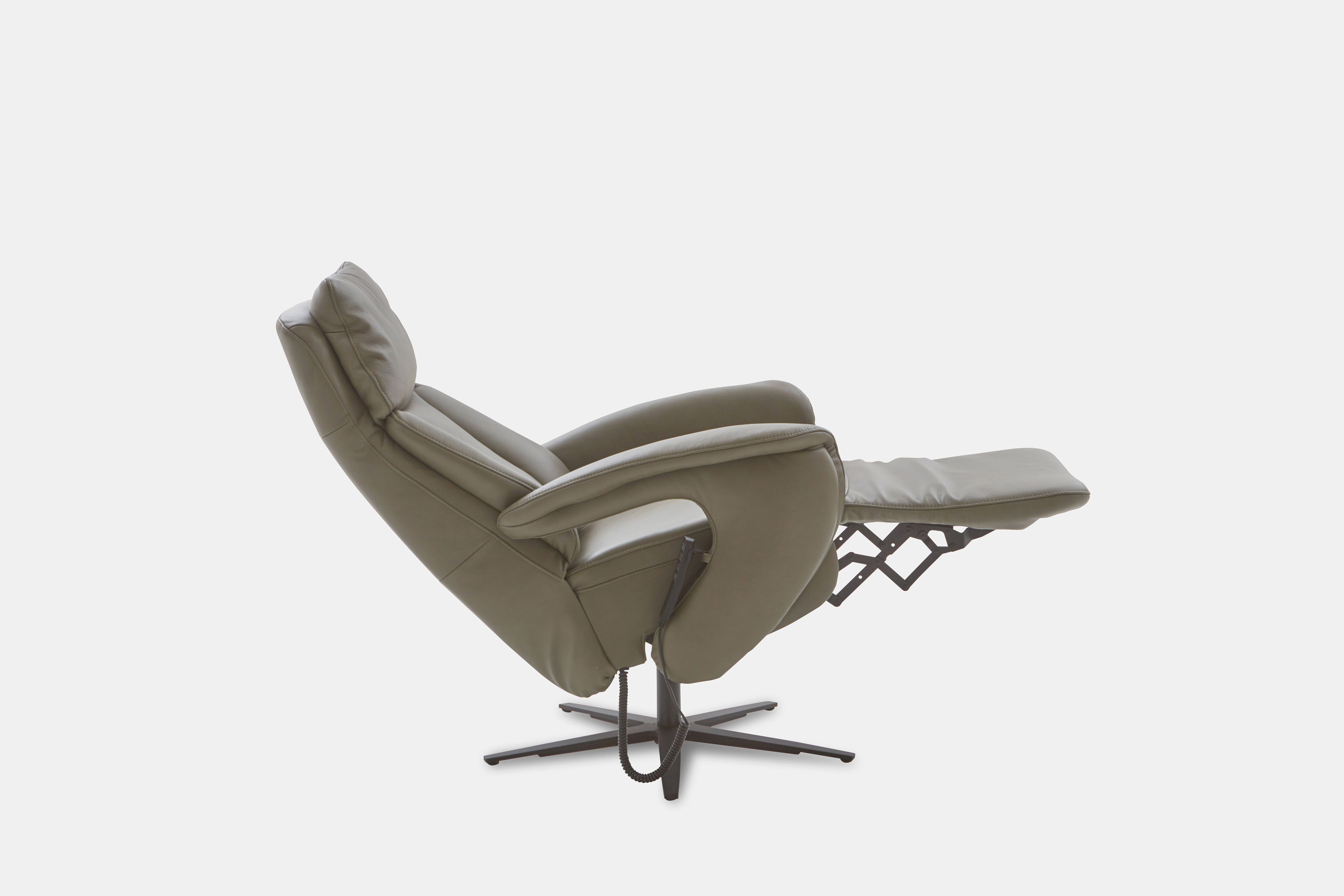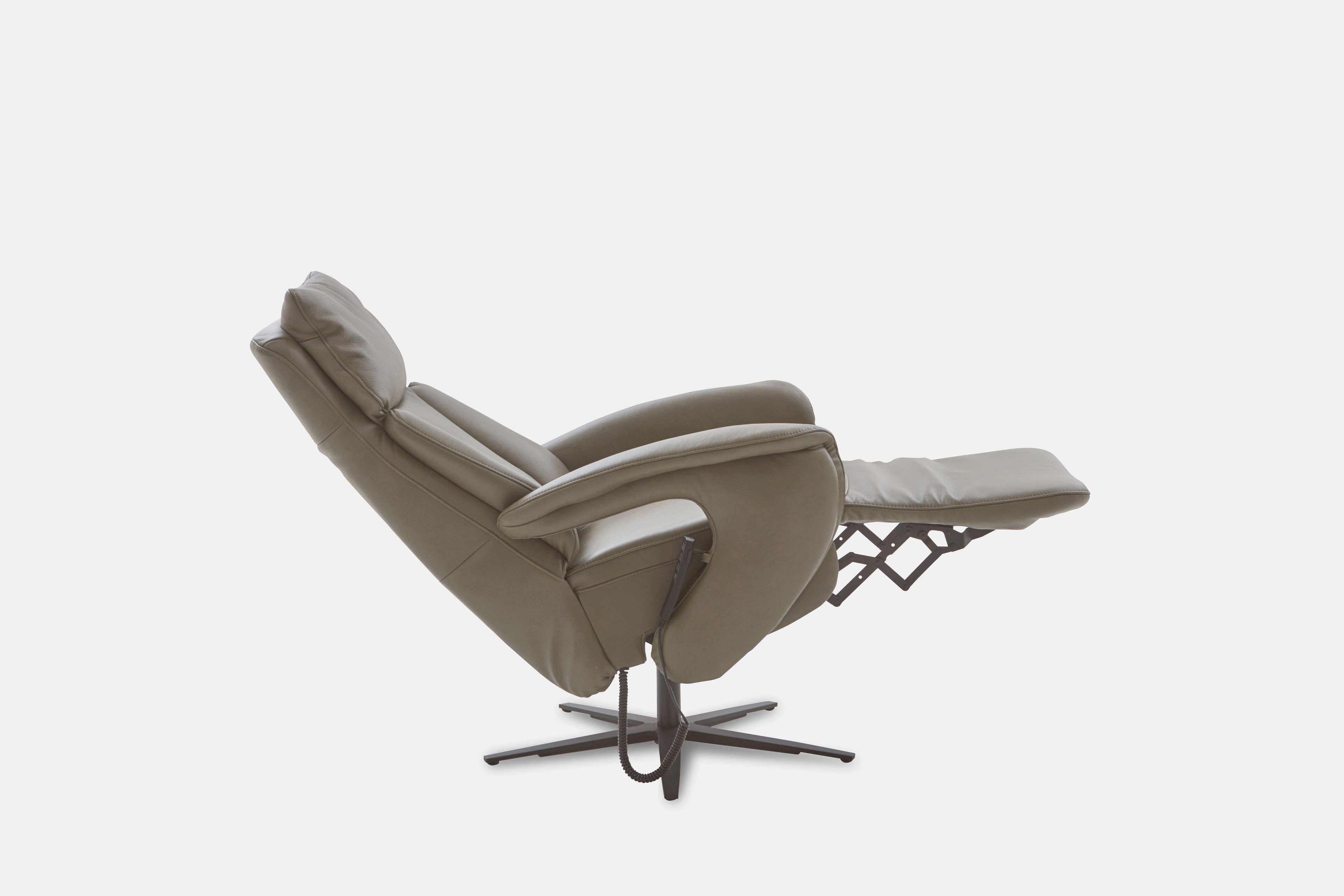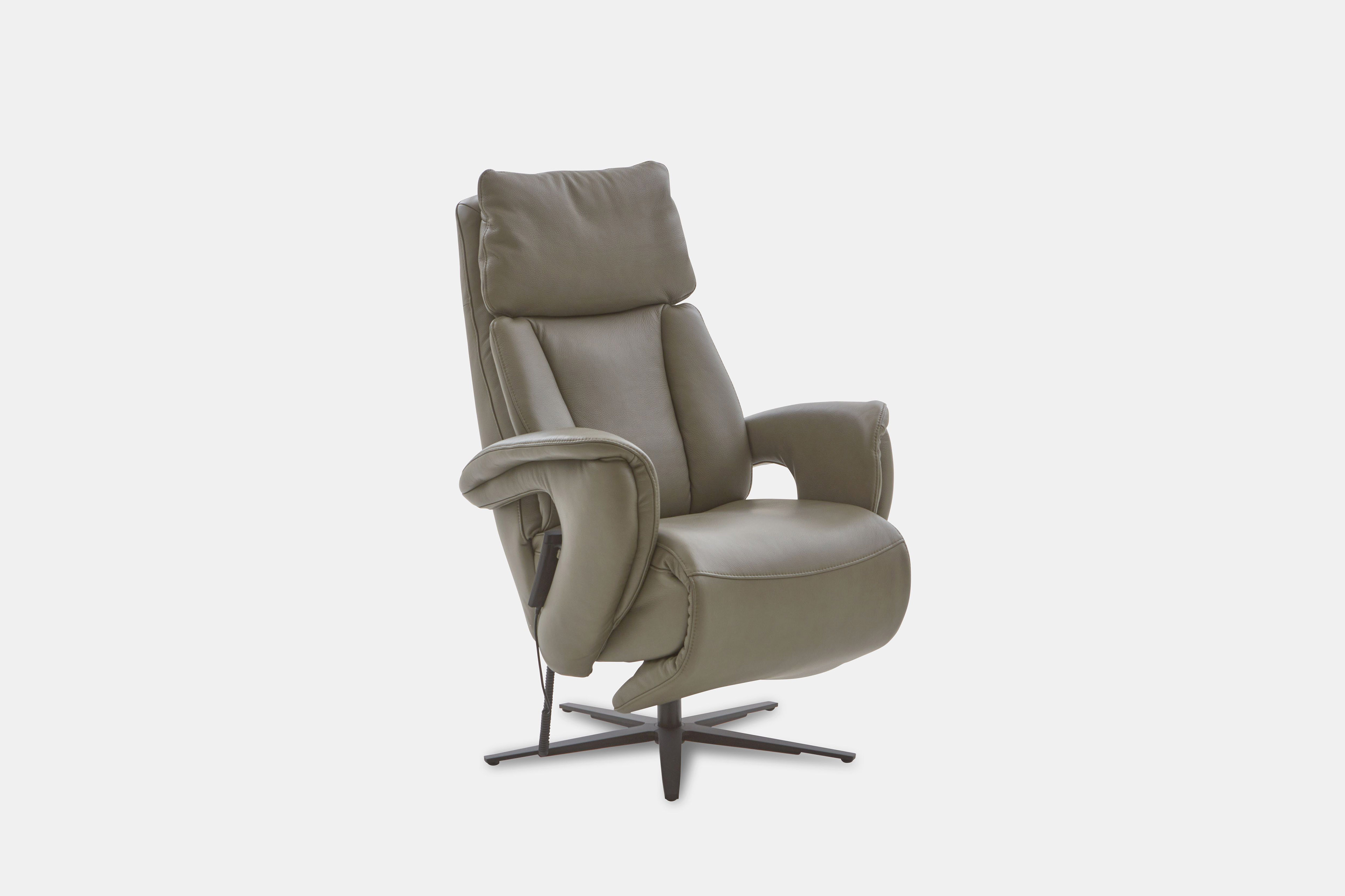 Synchrone Verstellung der Beinauflage und Rückenlehne durch ein Elektro-Motor ohne Relaxposition, inklusive Aufstehhilfe.