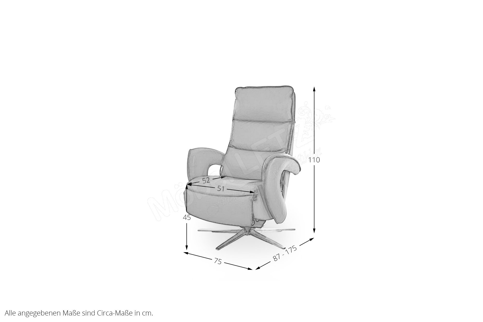 Alle eingebauten Elektromotoren entsprechen den DIN- und VDE Vorschriften. Wir empfehlen trotzdem den Trägern von Herzschrittmachern, Ihren Arzt zu befragen, um eventuellen Problemen vorzubeugen. Eine besonders legere Polsterung zeichnet sich durch eine superweiche / softige Oberfläche aus. Die Bezüge zeigen im Neuzustand ein ausgeprägtes Wellenbild, das design- und konstruktionsbedingt gewollt ist. Einige Bezüge (Velours, Microfaser) weisen starke Schattierungen auf und changieren je nach Blickrichtung. Das heißt, bei unterschiedlichen Beleuchtungs- sowie Blickwinkeln kommt es zu einem Farbwechsel bzw. zu einer farblichen Veränderung des Bezuges. Diese Eigenschaften sind warentypisch und stellen daher keinen Reklamationsgrund dar. Die maximale Belastbarkeit beträgt 120 kg.