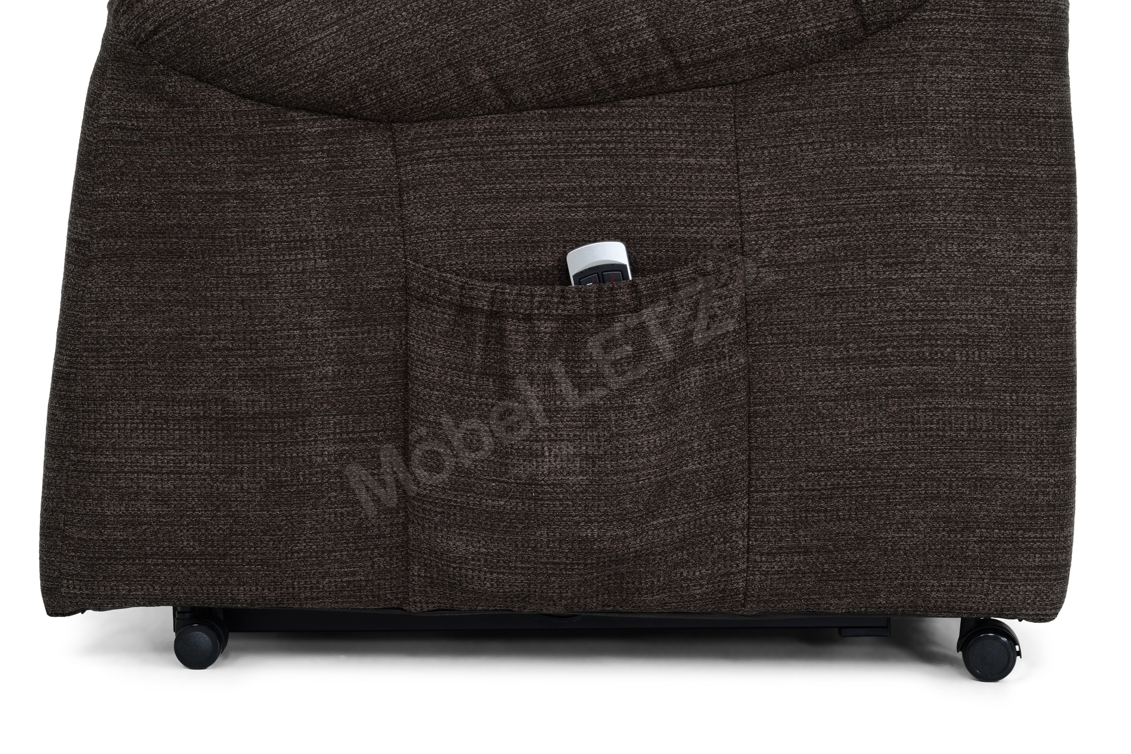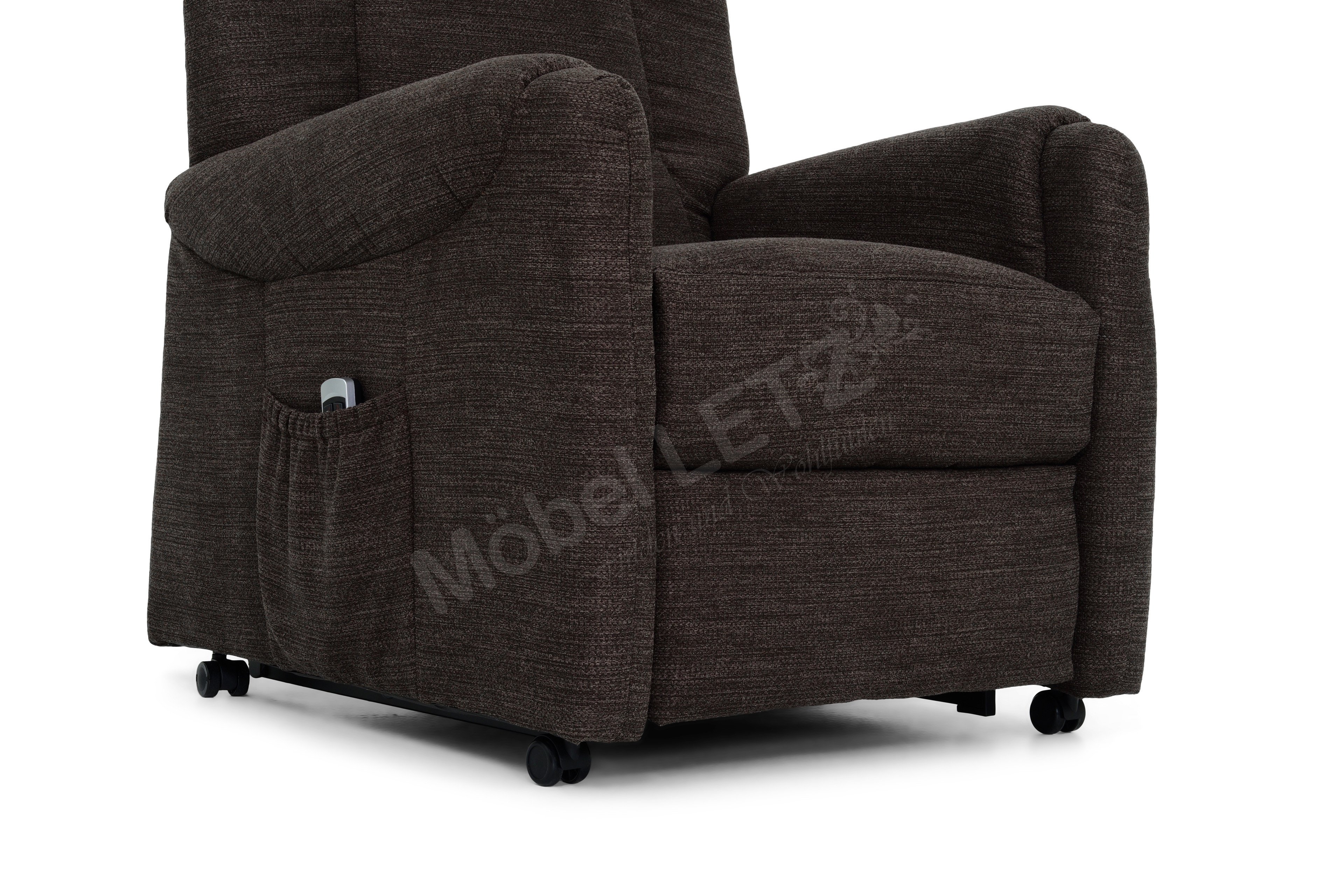 Francie aus der Kollektion Letz - ein wohlgeformtes Schmuckstück für Ihre Wohnung. Mit einer motorischen Rücken- und Fußteilverstellung ausgestattet, überzeugt der Sessel nicht nur mit seinem kultigen Erscheinungsbild, sondern auch mit einer weiteren, komfortablen Funktion. Mit Hilfe der Fernbedienung, welche sich in der praktischen Tasche an der Außenseite der Armlehne Griffbereit verstauen lässt, können Sie sich problemlos in eine angenehme Position bringen und so Ihre wohlverdiente Auszeit in vollen Zügen genießen. Für noch mehr Luxus ist Francie obendrein mit einer Aufstehhilfe ausgestattet. Durch betätigen der Funktionstaste hebt sich die Sitzfläche insgesamt an und erleichtert so das Erheben nach einer erquickenden Pause enorm. Bezogen in einem unempfindlichen Chenille-Flachgewebe, welches sich in einem wunderschönen Braunton zeigt, bringt der Relaxsessel Harmonie und natürlichen Charme in Ihr Zuhause. Ob als Solist in der Lese-Ecke oder als Ergänzung zu einer Polstergarnitur – Francie aus der Kollektion Letz macht überall eine gute Figur.
