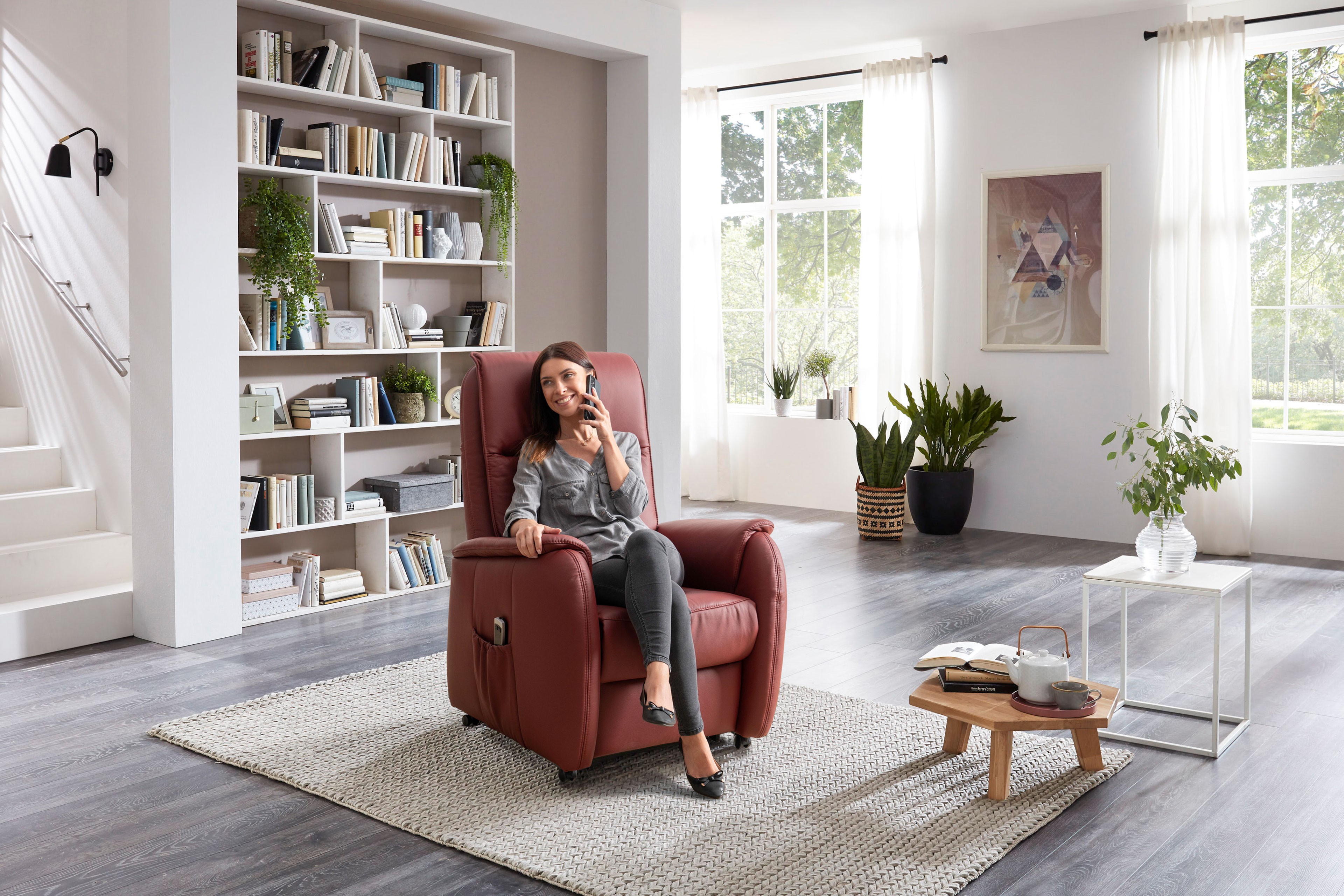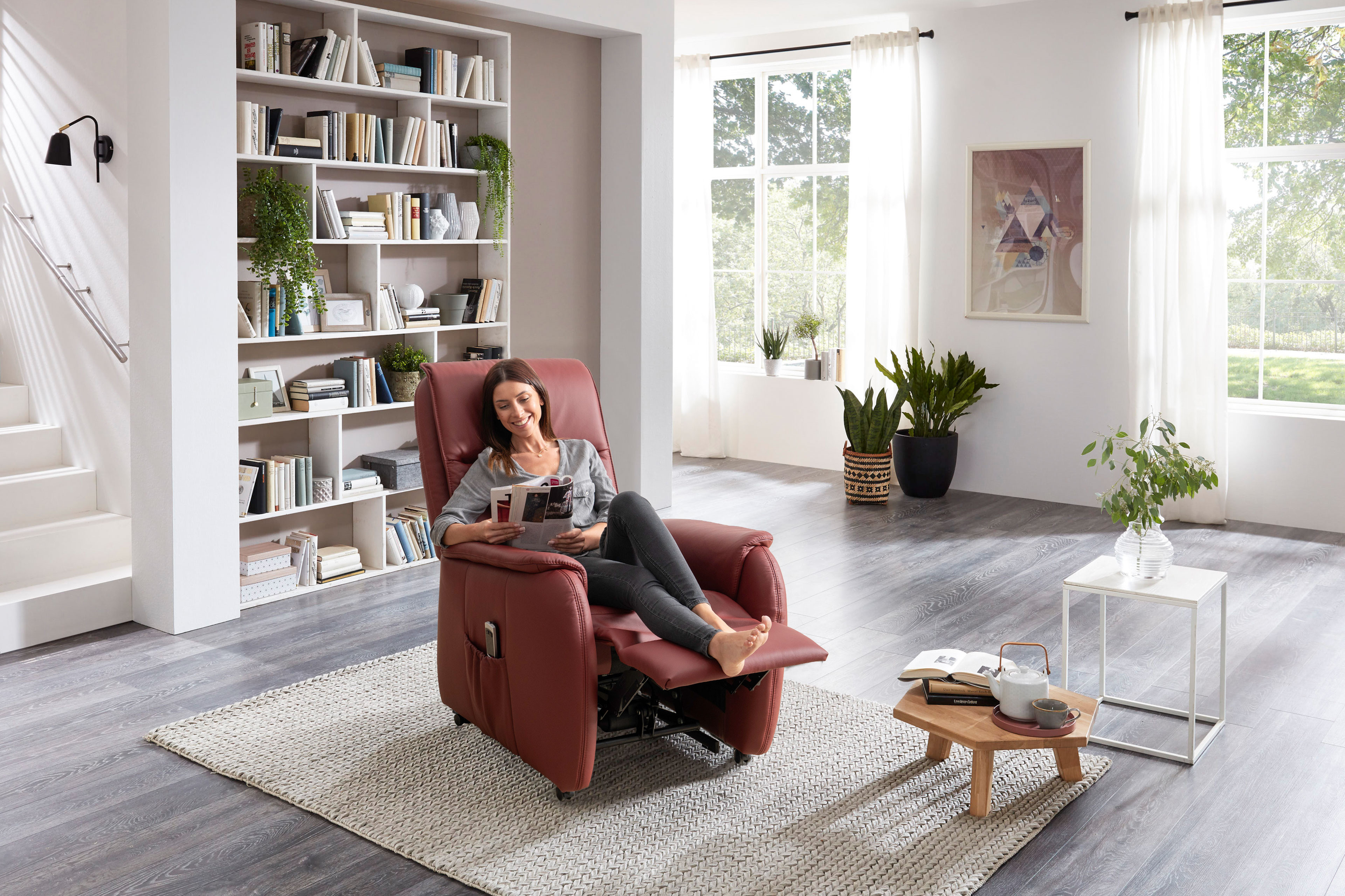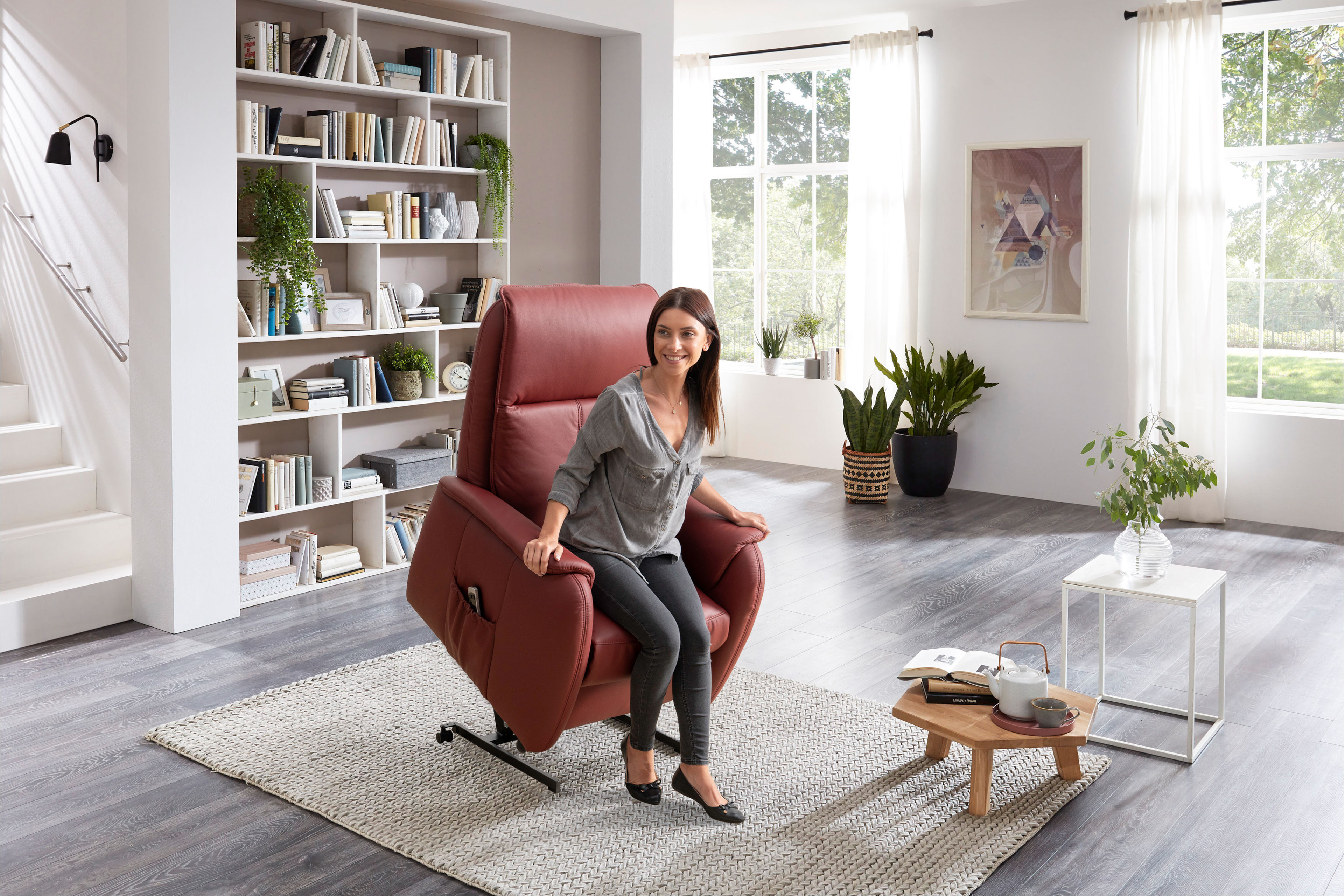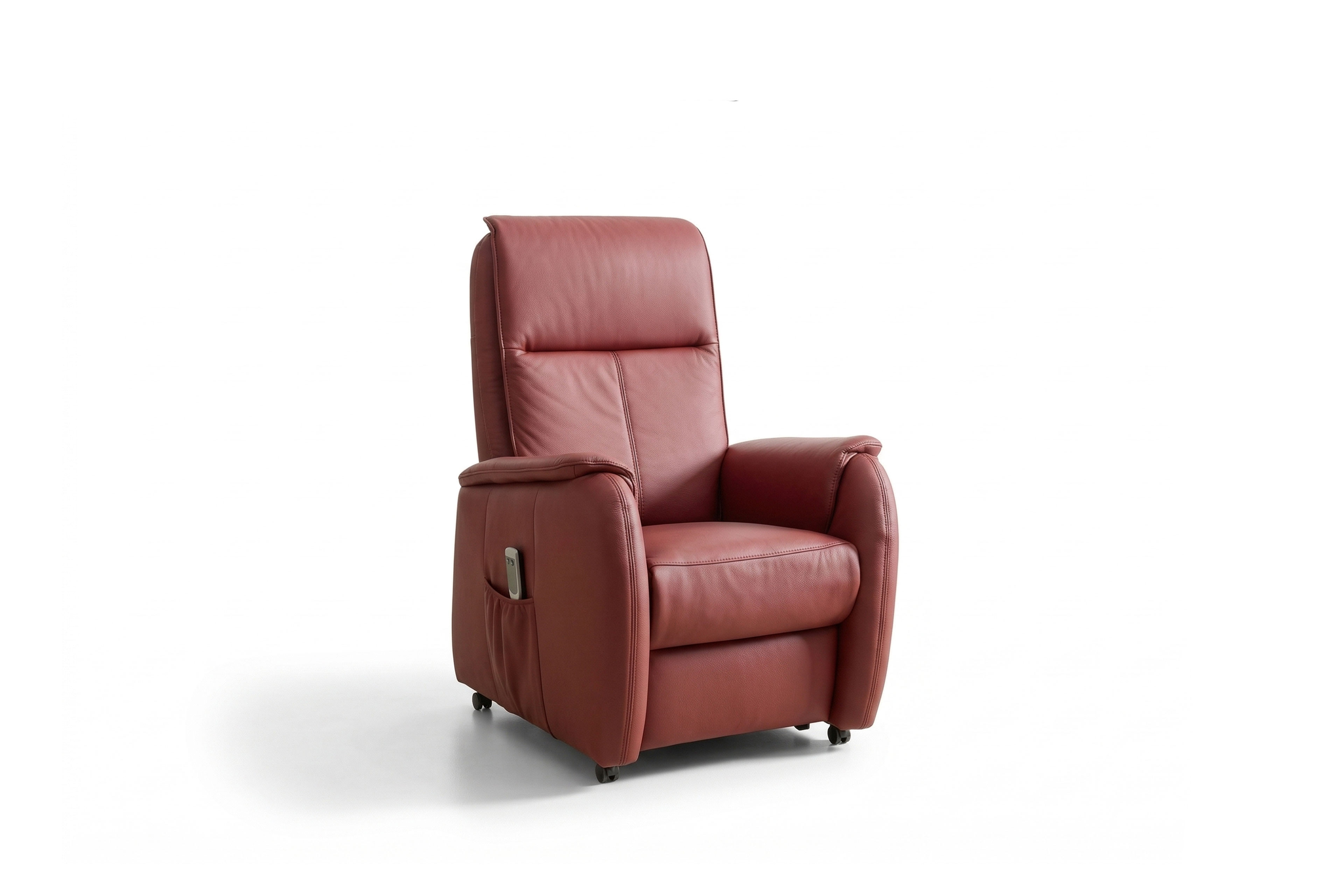 Verwandeln Sie Ihr Wohnzimmer in eine wahre Oase der Ruhe mit dem Relaxsessel Frederik Basic von Polsteria, einem zeitlosen Möbelstück, welches Design und kompromisslosen Komfort vereint. Gehüllt in einen eleganten roten Glatt-Lederbezug strahlt dieser TV-Sessel eine organische Wärme sowie tiefe Geborgenheit aus, die sich harmonisch in jedes moderne Interieur einfügt. Schon beim ersten Platznehmen spüren Sie die hochwertige Qualität der mit Polyätherschaum umantelten Federkern-Polsterung, die sich Ihrem Körper perfekt anschmiegt und zum Träumen einlädt. Ob Sie die klassische Variante wählen, bei der die Rückenlehne sowie die Fußstütze manuell verstellt werden, oder sich für den luxuriösen Komfort der ein- oder zweimotorisierten Steuerung entscheiden - Sie finden per Knopfdruck steht Ihre ideale Balance. Für zusätzliche Leichtigkeit im Alltag sorgt die optionale Aufstehhilfe, die Sie sicher und sanft beim Erheben unterstützt, während die dezenten schwarzen Doppelrollen es Ihnen ermöglichen, Ihren neuen Lieblingsplatz ganz ohne Kraftaufwand immer dort zu positionieren, wo das Leben gerade stattfindet. Mit seiner modernen Optik wird der Polsteria Relaxsessel zum natürlichen Herzstück Ihres Zuhauses, in dem Sie nach einem langen Tag bei einer Tasse Kaffee und einer kuscheligen Decke pure Regeneration genießen können. Entscheiden Sie sich mit Frederik Basic von Polsteria für eine exklusive Verbindung aus Funktionalität sowie Ästhetik und gönnen Sie sich diesen Luxus in seiner schönsten Form.