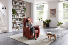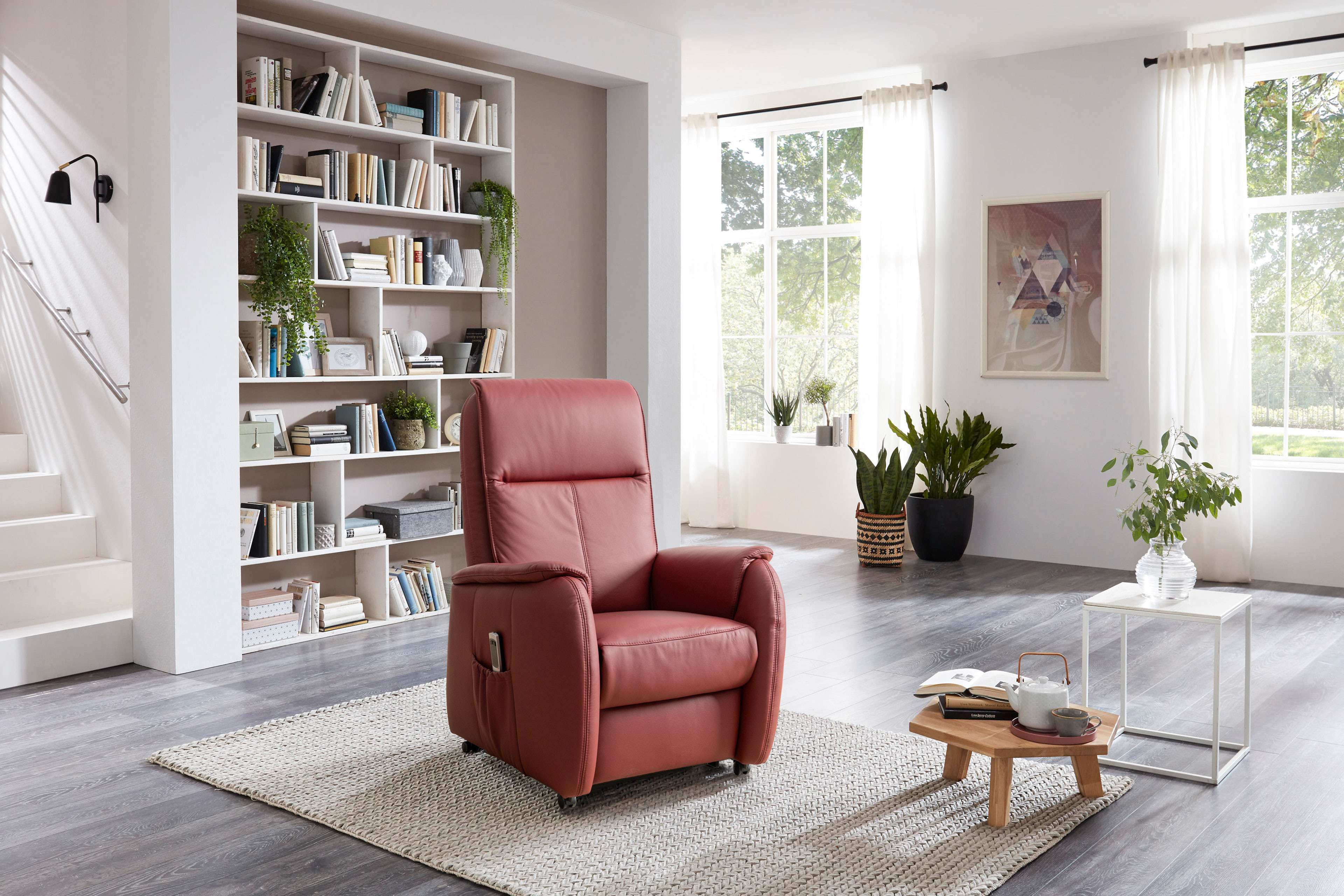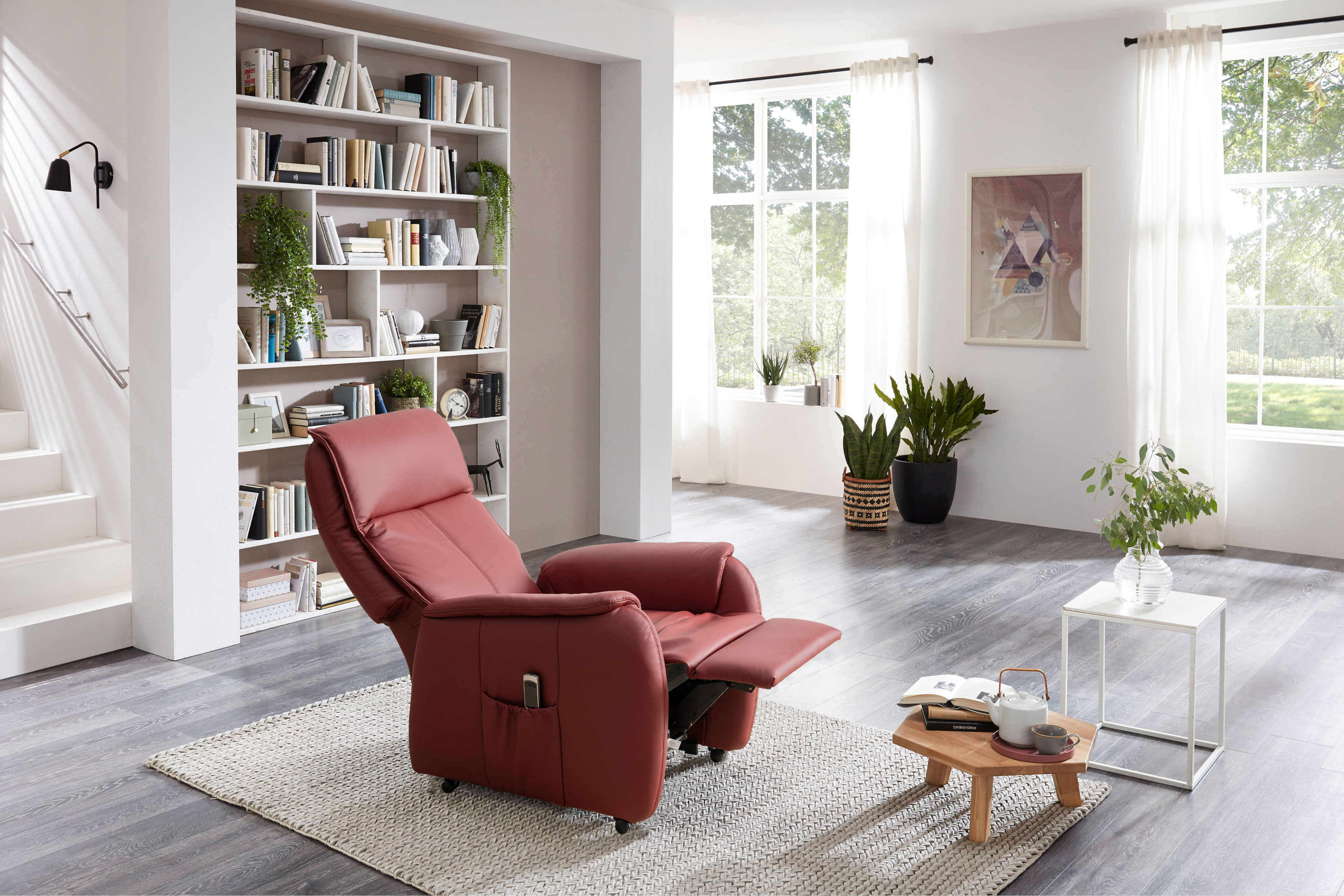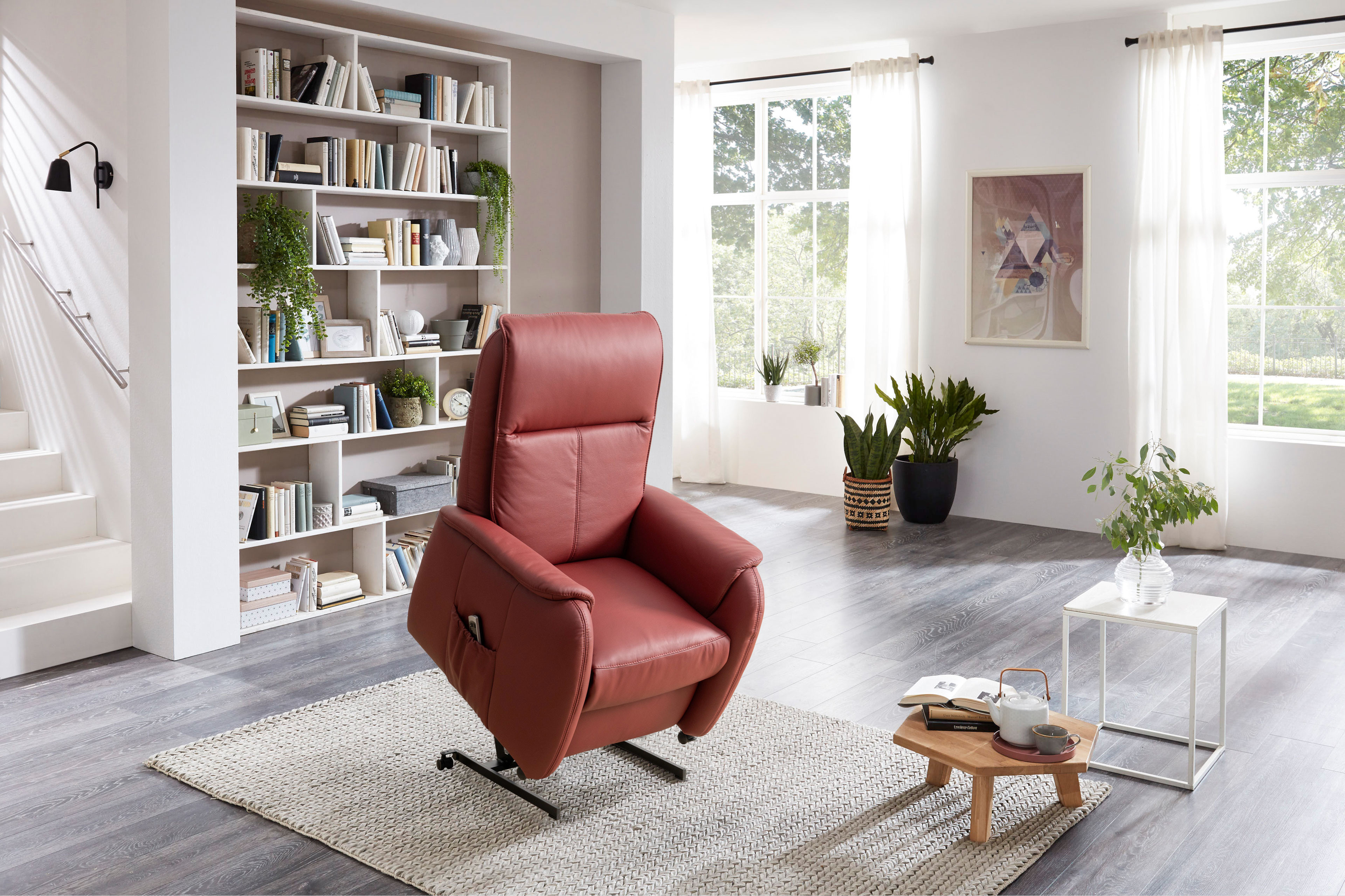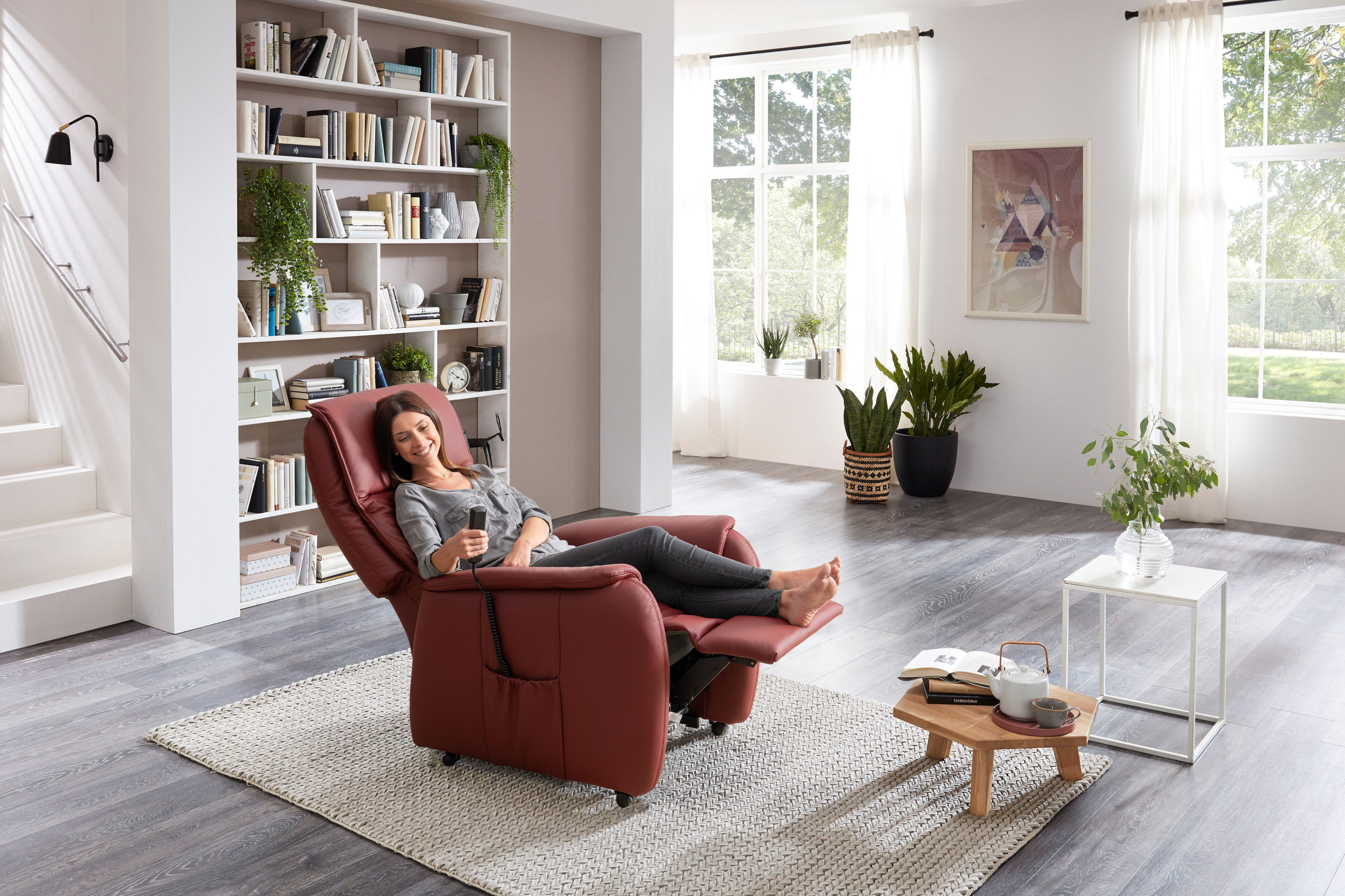 Verwandeln Sie Ihr Wohnzimmer in eine wahre Oase der Ruhe mit dem Relaxsessel Frederik Basic von Polsteria, einem zeitlosen Möbelstück, welches Design und kompromisslosen Komfort vereint. Gehüllt in einen eleganten roten Glatt-Lederbezug strahlt dieser TV-Sessel eine organische Wärme sowie tiefe Geborgenheit aus, die sich harmonisch in jedes moderne Interieur einfügt. Schon beim ersten Platznehmen spüren Sie die hochwertige Qualität der mit Polyätherschaum umantelten Federkern-Polsterung, die sich Ihrem Körper perfekt anschmiegt und zum Träumen einlädt. Ob Sie die klassische Variante wählen, bei der die Rückenlehne sowie die Fußstütze manuell verstellt werden, oder sich für den luxuriösen Komfort der ein- oder zweimotorisierten Steuerung entscheiden - Sie finden per Knopfdruck steht Ihre ideale Balance. Für zusätzliche Leichtigkeit im Alltag sorgt die optionale Aufstehhilfe, die Sie sicher und sanft beim Erheben unterstützt, während die dezenten schwarzen Doppelrollen es Ihnen ermöglichen, Ihren neuen Lieblingsplatz ganz ohne Kraftaufwand immer dort zu positionieren, wo das Leben gerade stattfindet. Mit seiner modernen Optik wird der Polsteria Relaxsessel zum natürlichen Herzstück Ihres Zuhauses, in dem Sie nach einem langen Tag bei einer Tasse Kaffee und einer kuscheligen Decke pure Regeneration genießen können. Entscheiden Sie sich mit Frederik Basic von Polsteria für eine exklusive Verbindung aus Funktionalität sowie Ästhetik und gönnen Sie sich diesen Luxus in seiner schönsten Form.