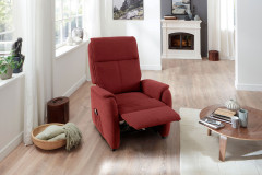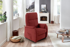 Ankommen, zurücklehnen, aufatmen - das können Sie schon bald mit dem Polsteria Relaxsessel Frederik Plus Basic. Mit seinem ausdruckstarken roten Stoffbezug setzt dieser TV-Sessel nicht nur ein stilvolles Statement, sondern schafft zugleich eine warme und einladende Wohlfühlatmosphäre in Ihrem Zuhause. Im Inneren überzeugt er durch eine hochwertige Federkern-Polsterung, die von Polyätherschaum ummantelt ist und von robusten Stahlwellenfedern getragen wird. Das Ergebnis: ein Sitzkomfort, der sich Ihrem Körper optimal anpasst und auch langfristig begeistert. Die inklusive, 1-motorige Relaxfunktion ermöglicht eine synchrone Verstellung von Rücken sowie Fußteil und befördert Sie per Kopfdruck in eine angenehme Liegeposition. Stellen Sie sich vor, wie Sie mit einer warmen Tasse wohlschmeckendem Kakao und Ihrem Lieblingsroman, eingekuschelt in einer warmen Decke, vor dem lodernden Kaminfeuer sitzen. Genau diesen Ort der Stille und Gemütlichkeit zaubert Ihnen dieser Polsteria Polstersessel. Lassen Sie es sich nicht nur gut gehen, sondern schalten Sie auch mal ab und laden Sie Ihre "Batterien" für den nächsten Tag wieder auf. Weiterhin erweist sich die integrierte Aufstehhilfe als unverzichtbares Detail, welches Sie schon bald nicht mehr missen möchten. Per Knopfdruck hebt sich die Sitzfläche an und neigt sich leicht nach vorn. So wird Ihnen eine optimale Grundlage zum mühelosen Aufstehen gewährleistet. Frederik Plus Basic von Polsteria frei nach dem Motto „Wie man sich polstert, so entspannt man", also nicht länger zögern, sondern direkt zuschlagen.