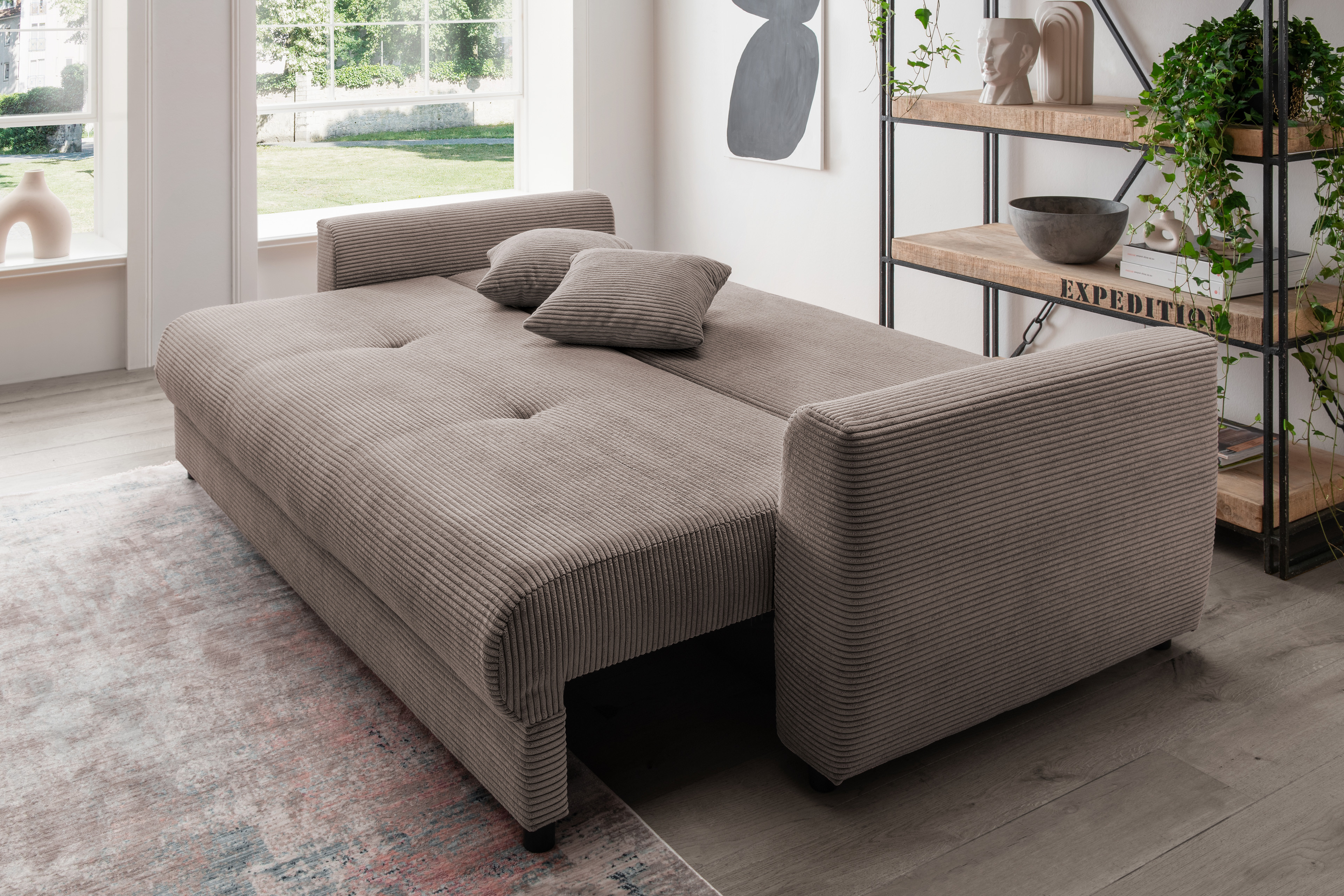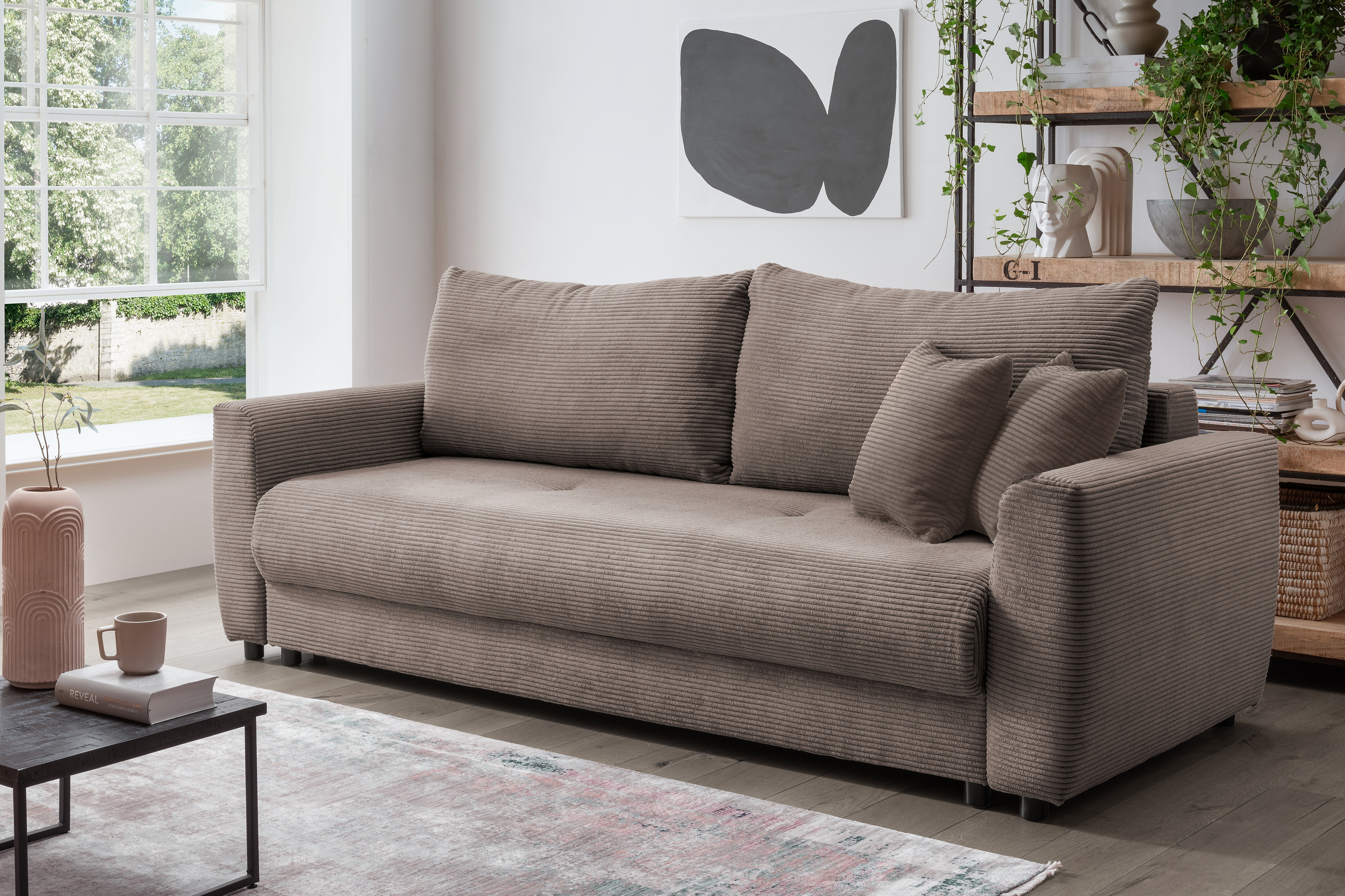 Auf der Suche nach einem bequemen und stilvollen Schlafgemach für Ihre Gäste? Das Schlafsofa Elia aus dem Hause Benformato könnte genau das sein, was Sie brauchen! Stellen Sie sich vor, Ihre Freunde verbringen nach einem langen und fröhlichen Spieleabend eine entspannte Nacht bei Ihnen und genießen am nächsten Morgen das Frühstück in vollen Zügen. Das Schlafsofa besticht nicht nur durch seinen schmeichelhaften grau-braunen Cordbezug, der Gemütlichkeit und Eleganz ausstrahlt, sondern auch durch seine komfortable Liegefläche von ca. 193 x 148 cm – ideal für zwei Personen. Die bereits enthaltenen Zierkissen sorgen dafür, dass Kopf- und Nackenbereich optimal unterstützt werden und Ihre Gäste in einen tiefen, erholsamen Schlaf sinken können. Ein zusätzliches Highlight ist der großzügige Bettkasten, in dem Sie Decken und Kissen sicher verstauen können. So bleibt Ihr Gästezimmer stets aufgeräumt und einladend. Bereichern Sie Ihr Zuhause mit dem traumhaften Verwandlungskünstler Elia von Benformato und schaffen Sie einen Ort voller Komfort und Stil, wo sich Ihre Gäste rundum wohlfühlen!