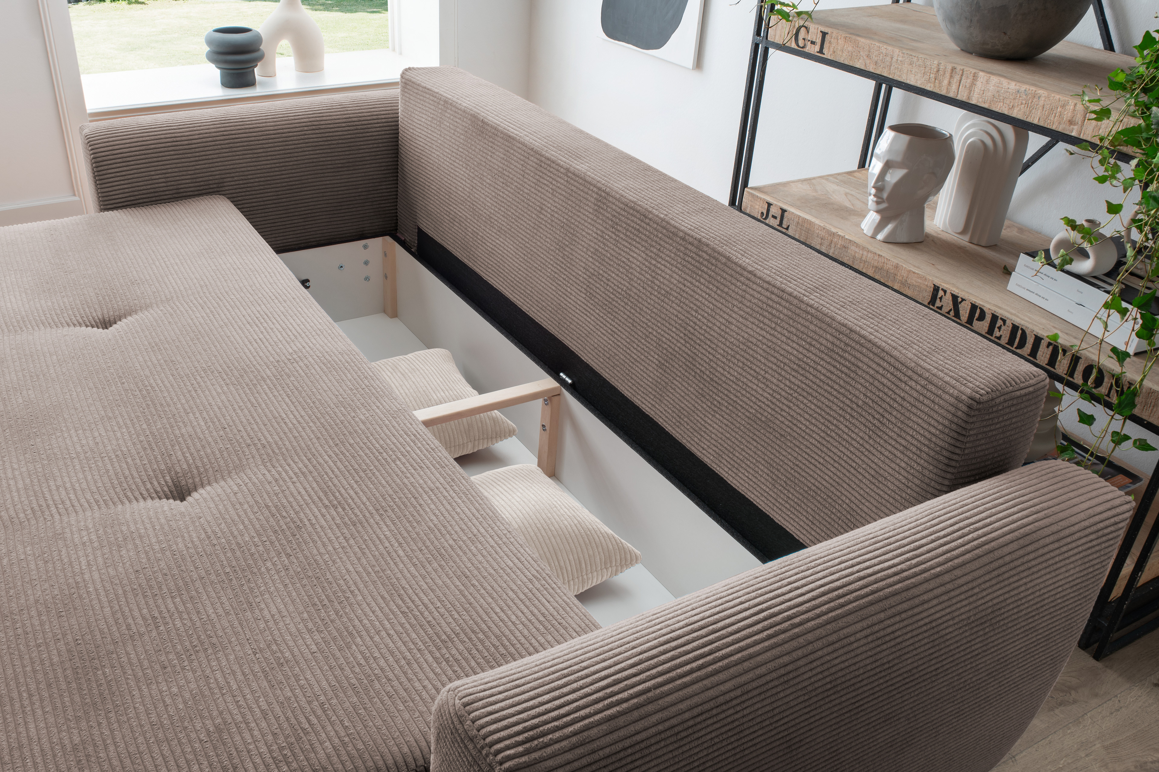 - Funktion: 3-Sitzer mit Schlaffunktion und Bettkasten