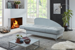 Das scheinbar endlose Meer, das leise Wellenrauschen und das unvergleichbare Freiheitsgefühl, welches man erhält, wenn die Blicke ungestört bis zum Himmelsgewölbe wandern, all das wirkt auf uns Menschen sehr beruhigend. Wollen Sie diese wohltuende Wirkung in Ihren vier Wänden Tag für Tag verspüren? Dann nehmen Sie sich einen Augenblick Zeit und schenken Sie Ihre volle Aufmerksamkeit dem wunderschönen Schlafsofa Greta von Nehl. Dieses bezaubernde Möbelstück lässt Sie in Tagträumereien schwelgen, wirkt durch seine hellblaue Farbe unaufdringlich und verleiht auch einem kleinen Raum Weite. Zudem ist Greta mit den hochwertigen Materialien, der ausgefeilten Polsterung und der 8-fach abklappbaren Armlehne, welche als Kopfteil dient, ein perfekter Rückzugsort, um ein Nickerchen zu machen oder einfach mit einem Buch zu entspannen. Dieses Sofa von Nehl ist ein wahres Multifunktionstalent, mühelos und raumsparend verstaut Greta all Ihre Kuscheldecken in dem geräumigen, innenbelüfteten Bettkasten, wodurch das Schlafsofa für jeden geeignet ist, der mit einem Minimum an Platz optimal ausgestattet sein möchte. Lassen Sie sich von der ruhigen Wirkung von Greta, dem Schlafsofa von Nehl, überzeugen.