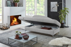 Das scheinbar endlose Meer, das leise Wellenrauschen und das unvergleichbare Freiheitsgefühl, welches man erhält, wenn die Blicke ungestört bis zum Himmelsgewölbe wandern, all das wirkt auf uns Menschen sehr beruhigend. Wollen Sie diese wohltuende Wirkung in Ihren vier Wänden Tag für Tag verspüren? Dann nehmen Sie sich einen Augenblick Zeit und schenken Sie Ihre volle Aufmerksamkeit dem wunderschönen Schlafsofa Greta von Nehl. Dieses bezaubernde Möbelstück lässt Sie in Tagträumereien schwelgen, wirkt durch seine silbergraue Farbe unaufdringlich und verleiht auch einem kleinen Raum Weite. Zudem ist Greta mit den hochwertigen Materialien, der ausgefeilten Polsterung und der 8-fach abklappbaren Armlehne, welche als Kopfteil dient, ein perfekter Rückzugsort, um ein Nickerchen zu machen oder einfach mit einem Buch zu entspannen. Dieses Sofa von Nehl ist ein wahres Multifunktionstalent, mühelos und raumsparend verstaut Greta all Ihre Kuscheldecken in dem geräumigen, innenbelüfteten Bettkasten, wodurch das Schlafsofa für jeden geeignet ist, der mit einem Minimum an Platz optimal ausgestattet sein möchte. Lassen Sie sich von der ruhigen Wirkung von Greta, dem Schlafsofa von Nehl, überzeugen.