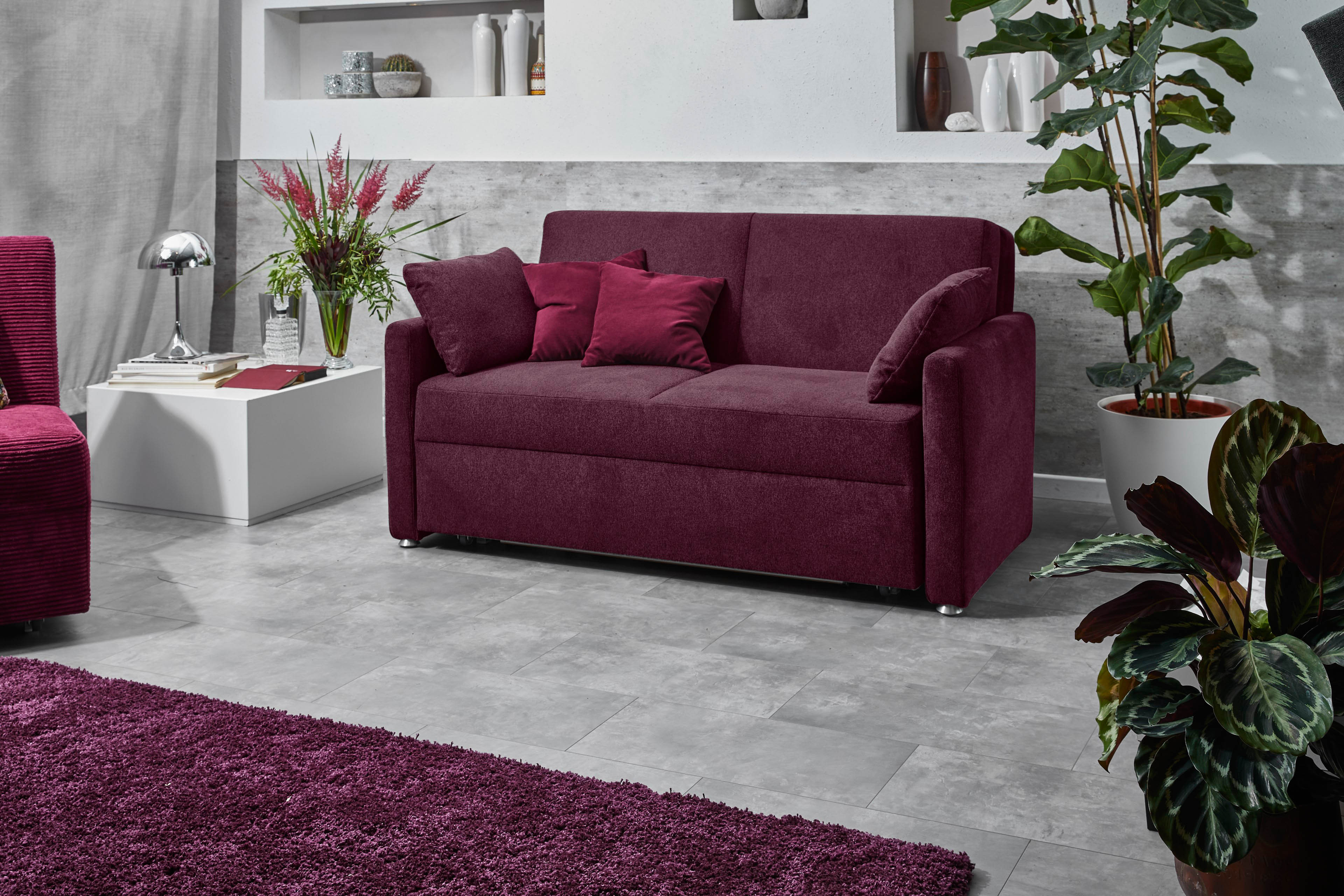 Schlafsofa aubergine von Nehl Wohnideen - Modell Ohio ...mit einem Handgriff vom Sofa zum Bett